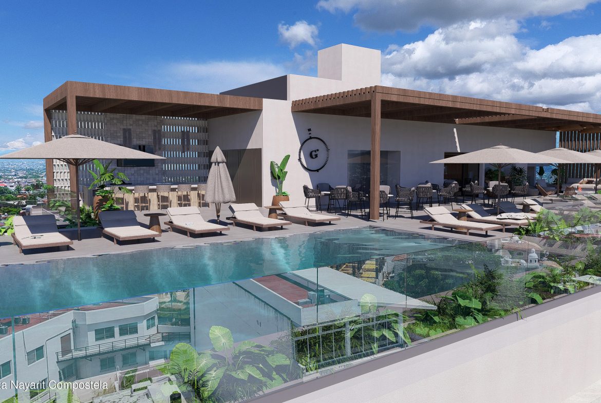 English below. Ubicado en la colonia Aralias de Puerto Vallarta, 105 Midtown ofrece departamentos de 82 a 159 m en una torre de ocho niveles con 33 unidades de una y dos recamaras. Destacan por su amplitud, luz natural y balcones amplios. Amenidades: rooftop con alberca infinita, gimnasio, ludoteca, coworking y pet friendly. PREGUNTA POR NUESTROS DESCUENTOS Y PLANES DE PAGOLocated in Puerto Vallarta’s Aralias neighborhood, 105 Midtown features 33 one- and two-bedroom condos ranging from 82 to 159 m. The eight-story tower offers spacious, bright units with large balconies and top amenities: infinity pool rooftop, gym, kids’ playroom, coworking area, and pet-friendly spaces. ASK ABOUT OUR DISCOUNTS AND PAYMENT PLANS