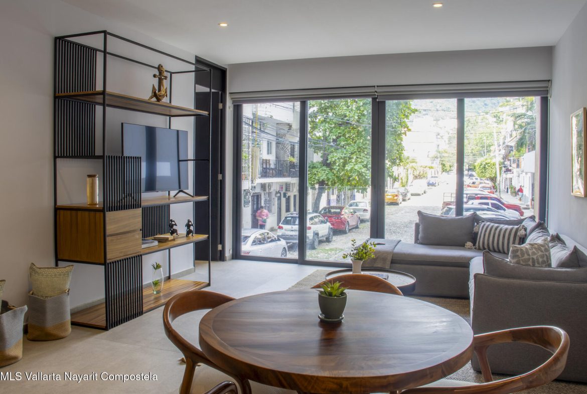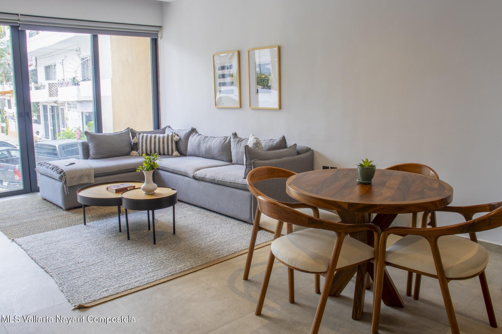 Descubra la Unidad 701 en el Condominio 105 Sail View, una residencia completamente amueblada de 2 recamaras y 2 banos que ofrece una combinacion inigualable de estilo, comodidad y conveniencia. Lista para mudarse y disenada con sofisticacion en mente, esta impresionante unidad tiene acceso directo al elevador, una caracteristica excepcional y valiosa que garantiza mayor privacidad, accesibilidad y comodidad, especialmente para personas con movilidad reducida o que simplemente valoran el lujo de una entrada privada.Ubicada en el vibrante corazon de la Zona Romantica, a solo unos pasos del iconico Muelle de Los Muertos, esta propiedad lo ubica a pasos de las mejores playas, restaurantes, tiendas, galerias de arte y vida nocturna de Puerto Vallarta. Con dos entradas exclusivas,