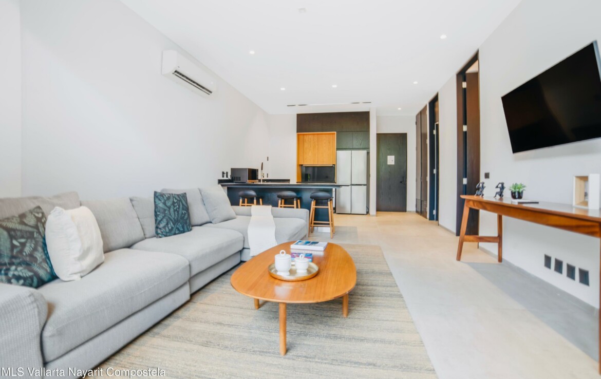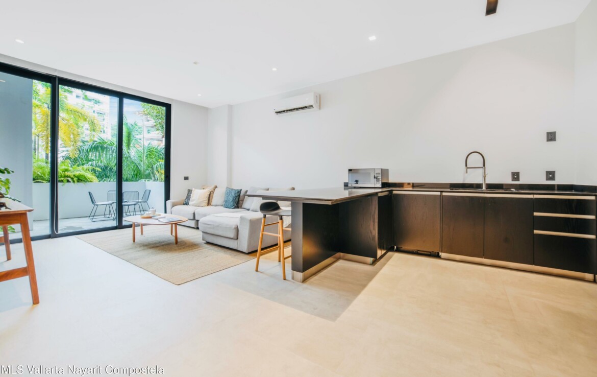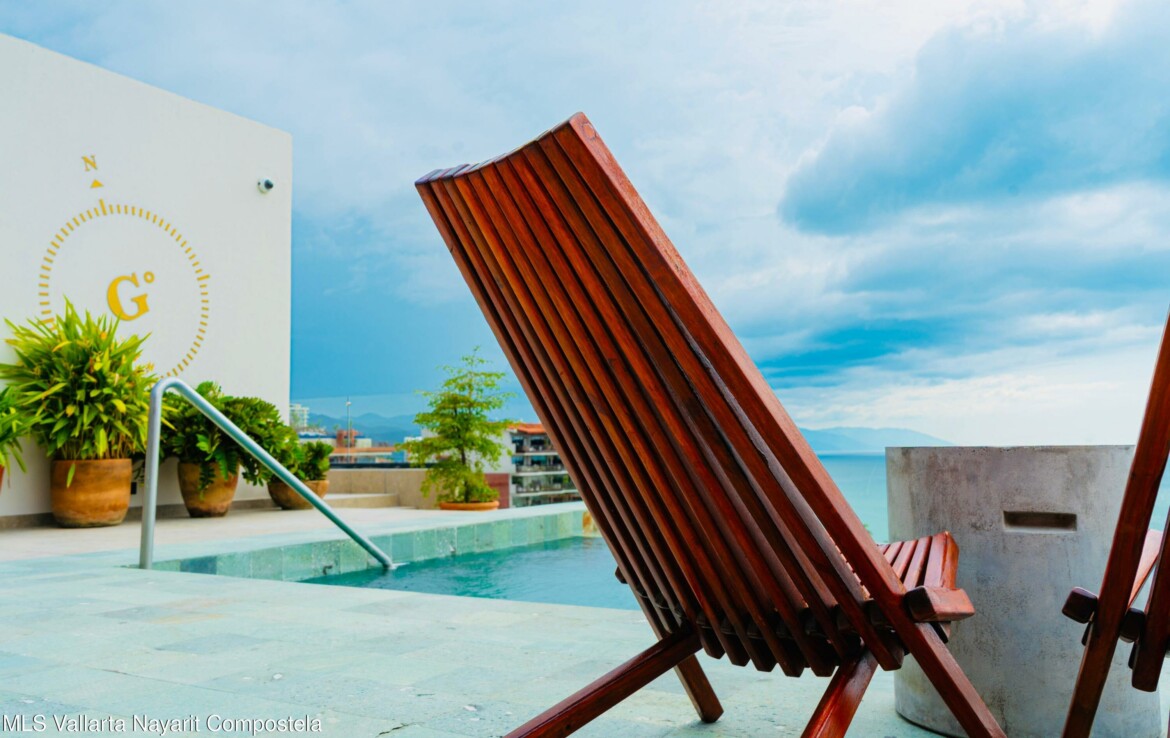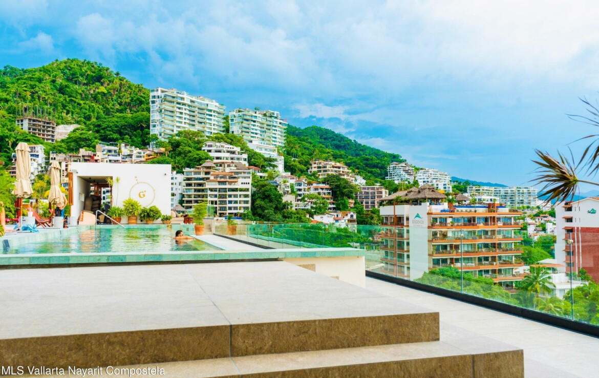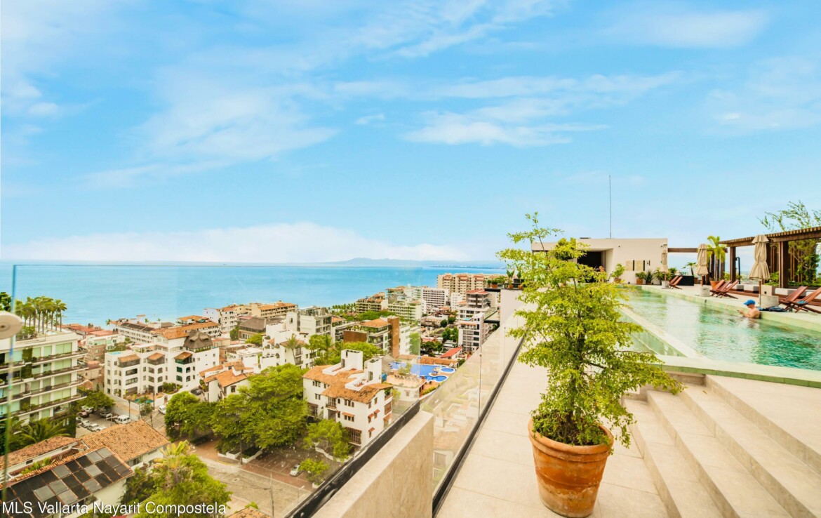 Bienvenido a Sail View 105, donde el diseno contemporaneo se fusiona con el encanto de la Zona Romantica de Puerto Vallarta.Este condominio de 1 recamara y 1 bano, listo para usar, ofrece 84.66 m de espacio habitable cuidadosamente planificado. Su diseno abierto incluye una cocina totalmente equipada con barra de desayuno, una amplia sala de estar, area de lavado y una amplia terraza, perfecta para disfrutar del estilo de vida tropical.Lo que realmente distingue a esta residencia son sus espectaculares vistas panoramicas, desde las brillantes luces de la ciudad, las montanas y hasta el infinito horizonte del Oceano Pacifico.Ubicado a solo unos pasos de restaurantes de clase mundial, galerias de arte, playas doradas y la