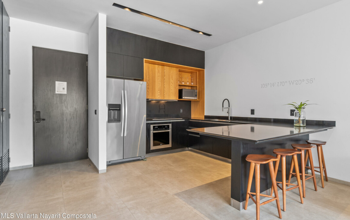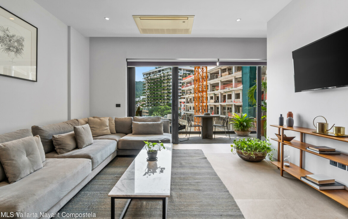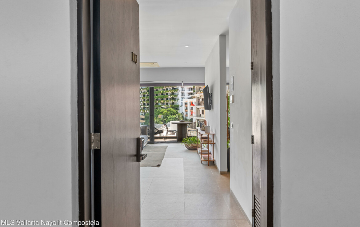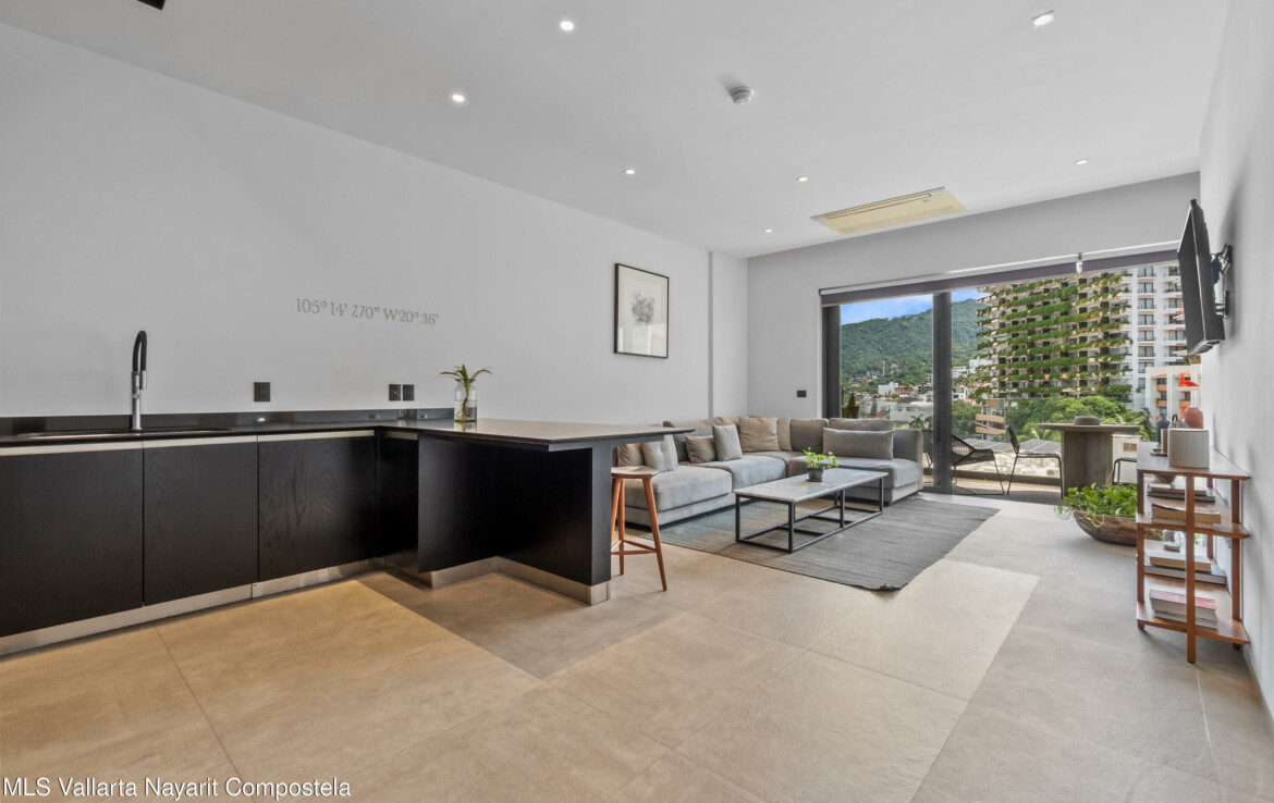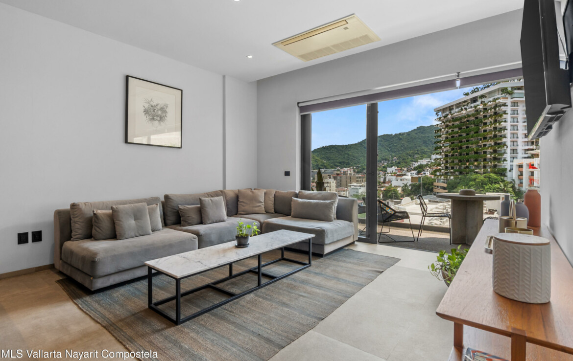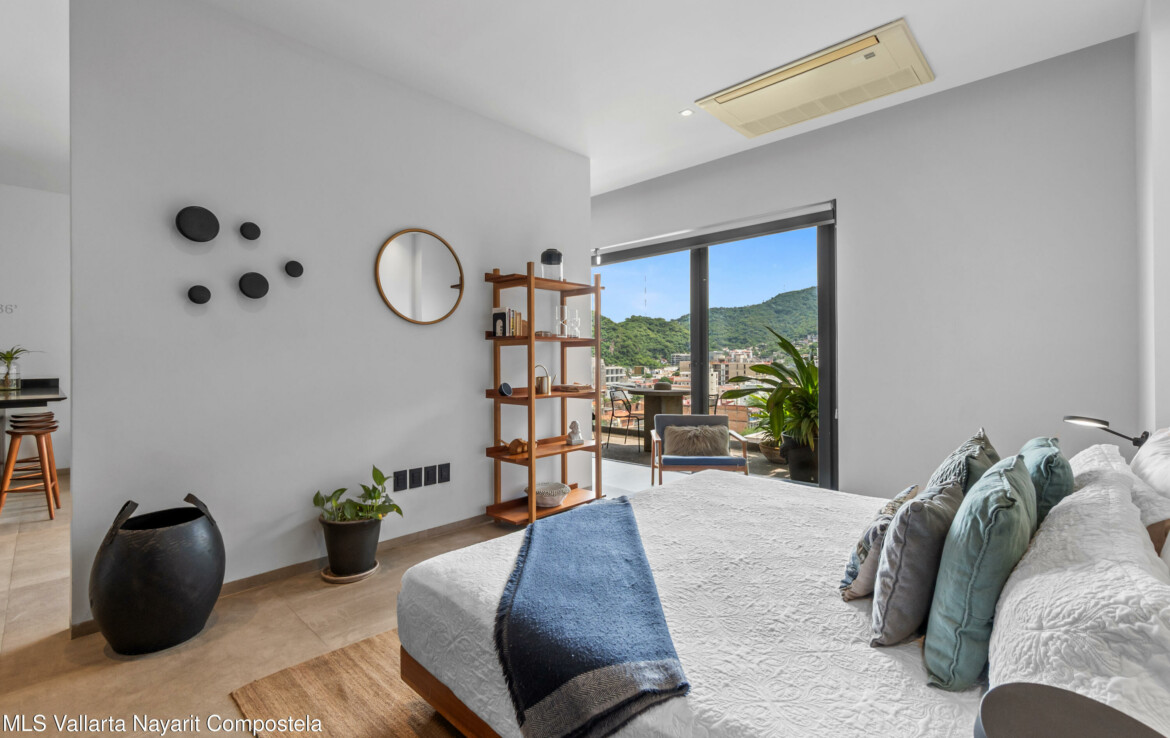 Tucked right in the heart of the Zona Romantica, this building is one of the most in-demand addresses in the area. Its unique dual entrances makes walking to all the best restaurants, cafes, and shops an absolute breeze.Unit 108 it’s flooded with natural light, spacious spaces and has gorgeous mountains and city views. The 360-degree view from the rooftop is insane; you can see the ocean, the mountains, and the city.They really paid attention to the details here. You’ll find these beautiful, handcrafted Mexican touches and designer materials throughout the hallways and common areas–it has that authentic Vallarta feel but with a sleek, modern twist. It’s no wonder this building is so popular. You really have to see it for yourself.