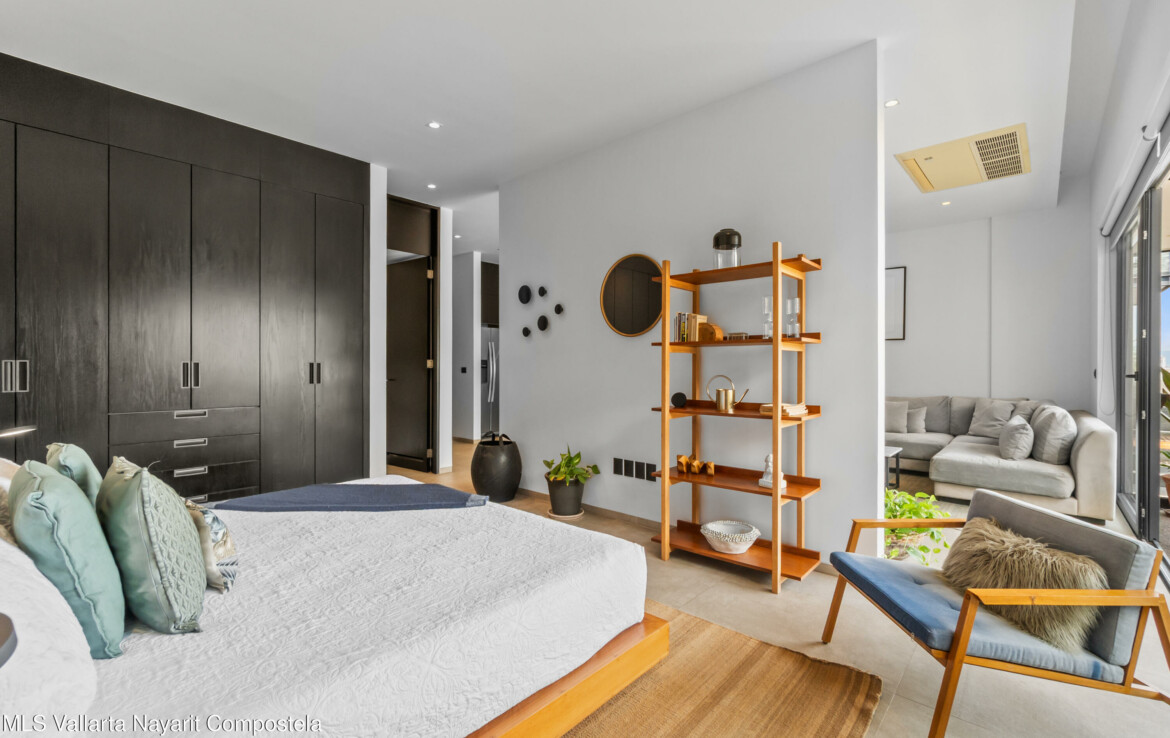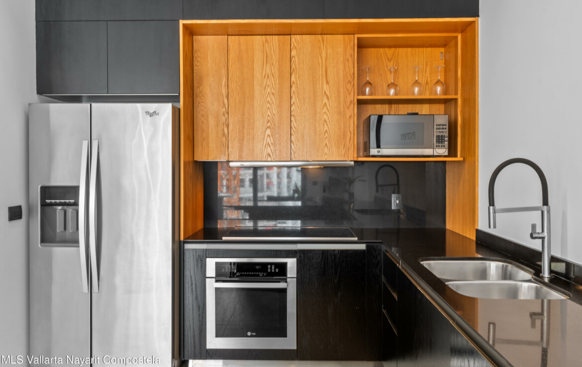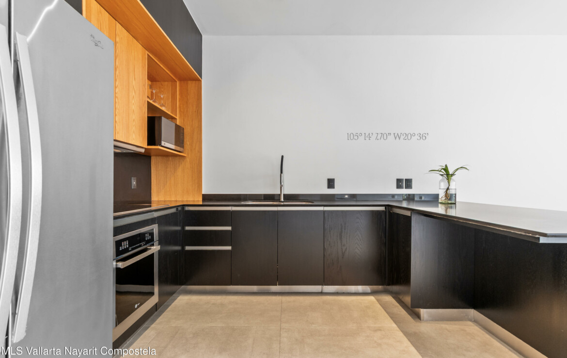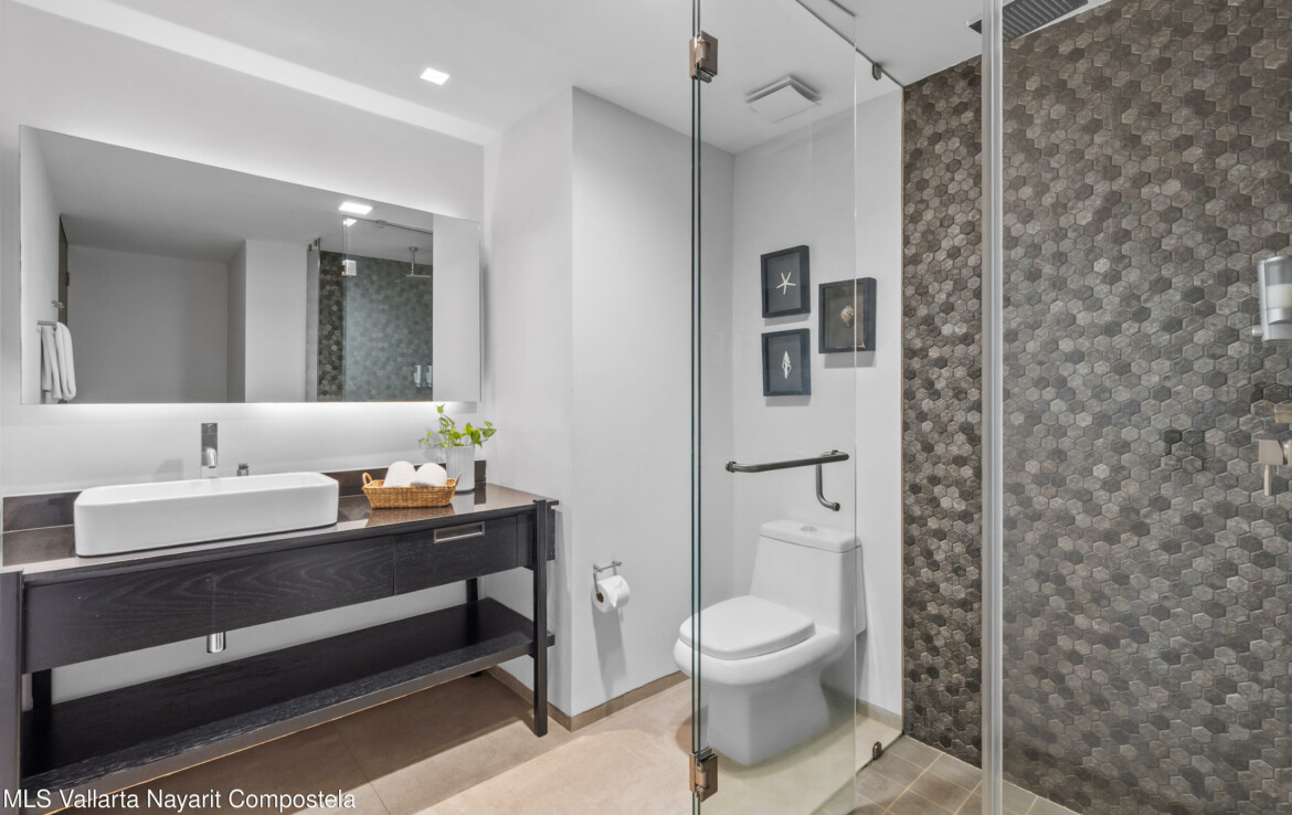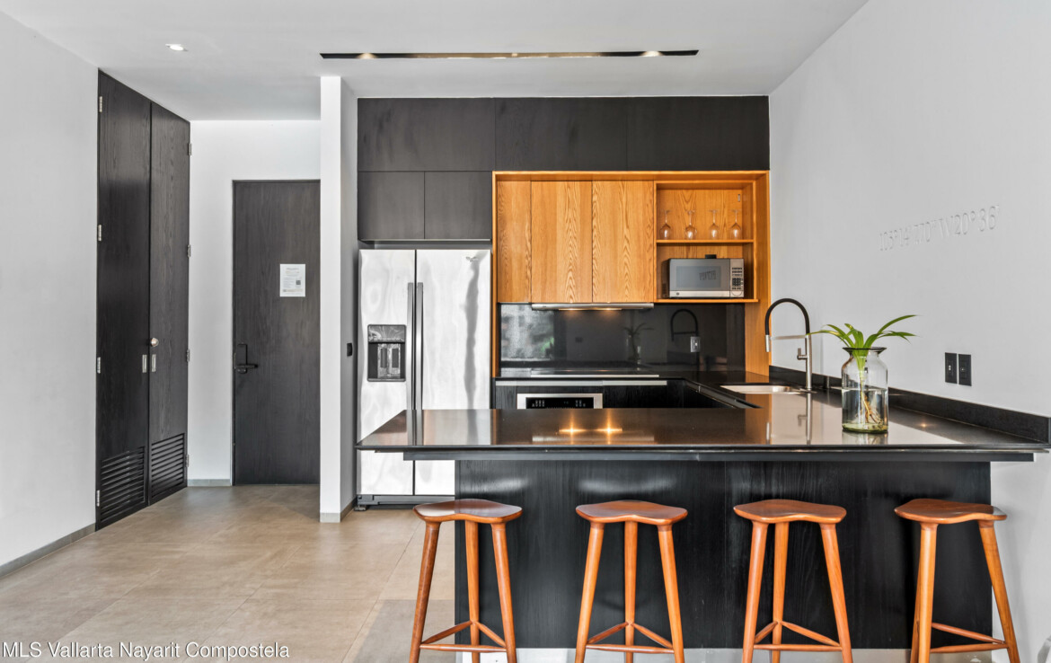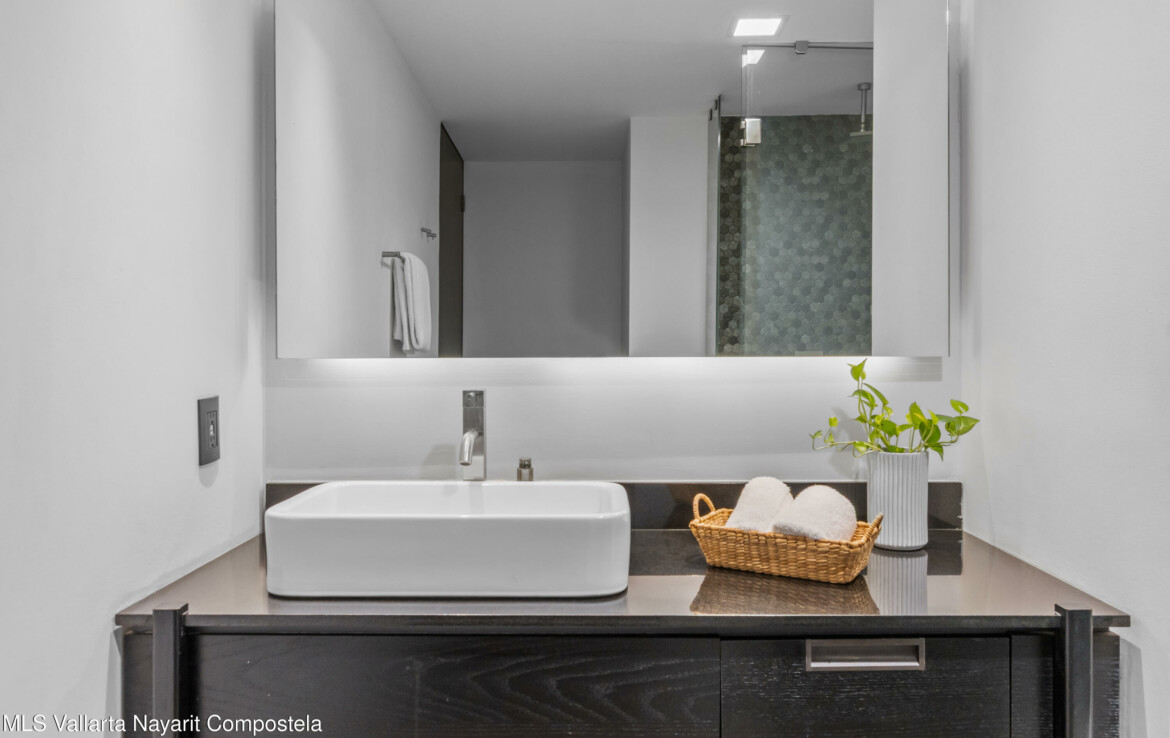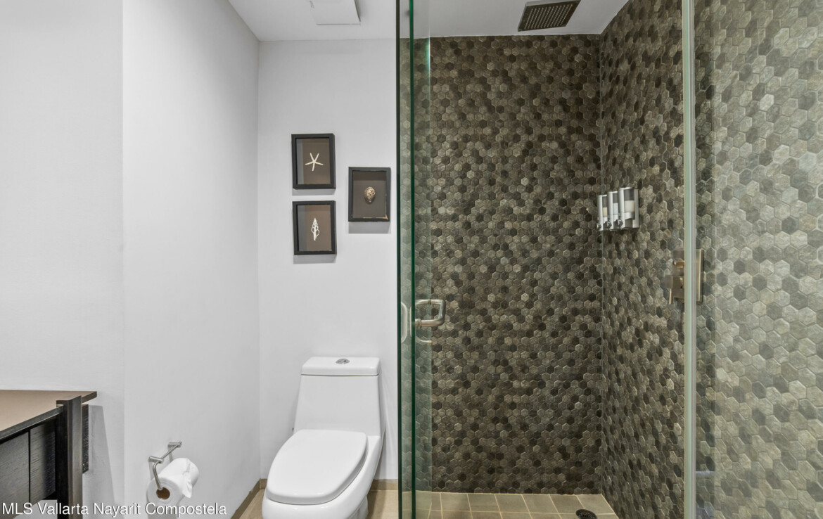 Tucked right in the heart of the Zona Romantica, this building is one of the most in-demand addresses in the area. Its unique dual entrances makes walking to all the best restaurants, cafes, and shops an absolute breeze.Unit 108 it’s flooded with natural light, spacious spaces and has gorgeous mountains and city views. The 360-degree view from the rooftop is insane; you can see the ocean, the mountains, and the city.They really paid attention to the details here. You’ll find these beautiful, handcrafted Mexican touches and designer materials throughout the hallways and common areas–it has that authentic Vallarta feel but with a sleek, modern twist. It’s no wonder this building is so popular. You really have to see it for yourself.