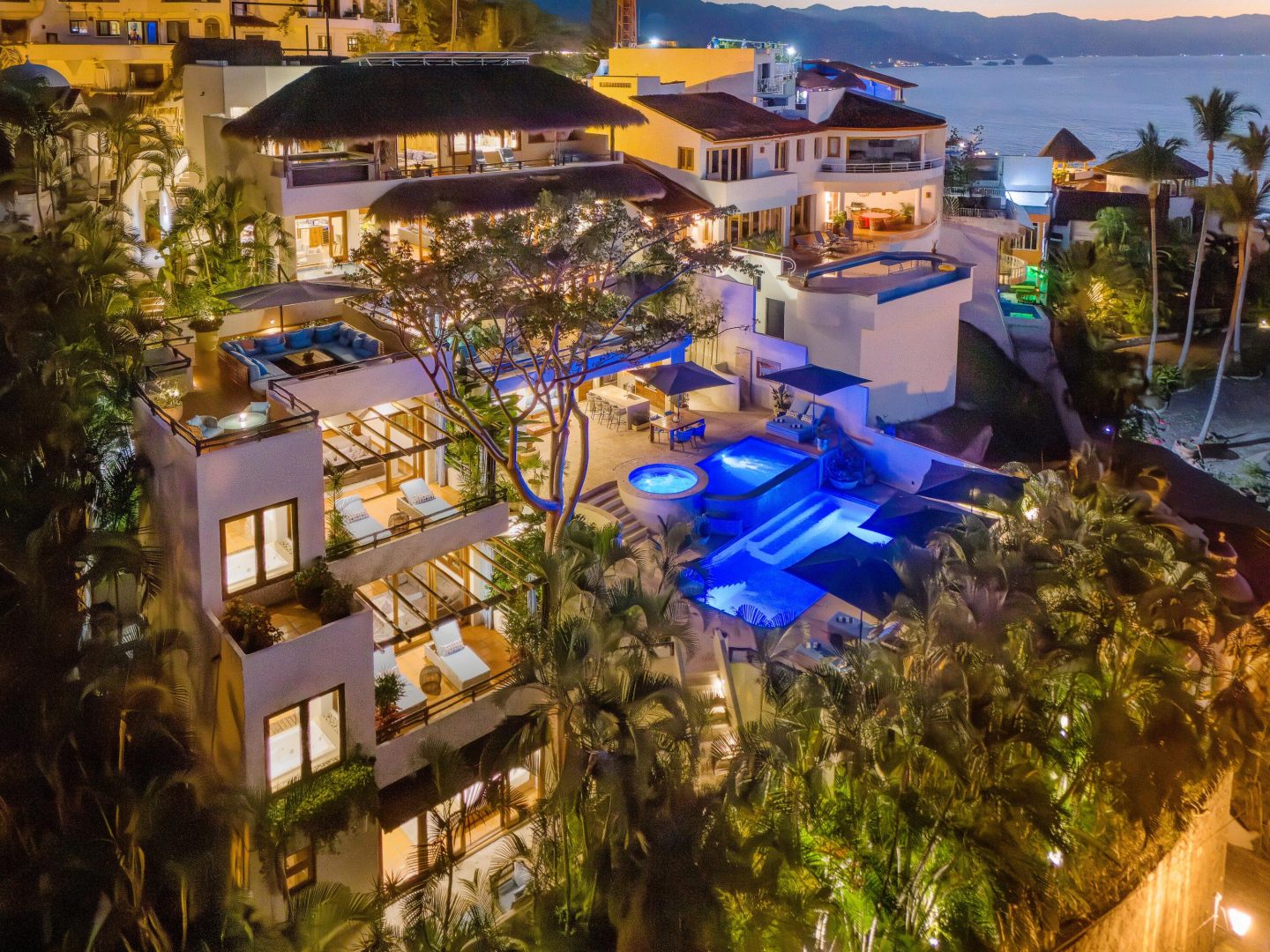 Esta villa majestuosamente hermosa en Conchas Chinas se encuentra a poca distancia de la playa y la Zona Romantica. Vistas amplias y panoramicas del oceano, la ciudad y la jungla lo saludan desde todos los niveles, incluido el jacuzzi de agua salada de tres niveles, las piscinas de inmersion y de natacion. Su discreta entrada esconde una joya rara mas alla de sus hermosas puertas que ofrece 7 dormitorios, 8 banos y 2 tocadores, todos completamente remodelados y redecorados. Cada suite tiene una terraza privada para tomar un cafe por la manana o relajarse con los sonidos de la naturaleza. Imagine su resort de 5 estrellas favorito y vaya un paso mas alla y eso es lo que experimentara mientras viva en esta villa.Toda la propiedad fue mejorada en los ultimos 12 meses a los estanda