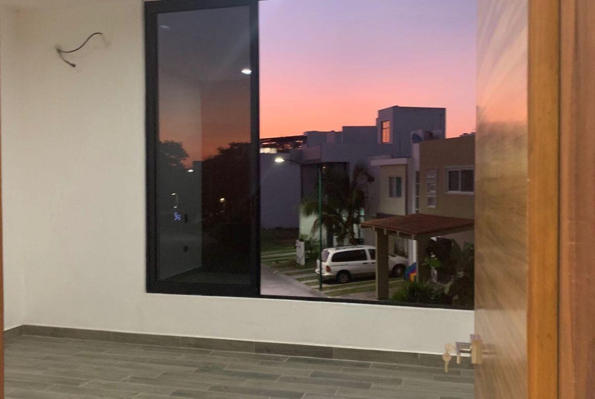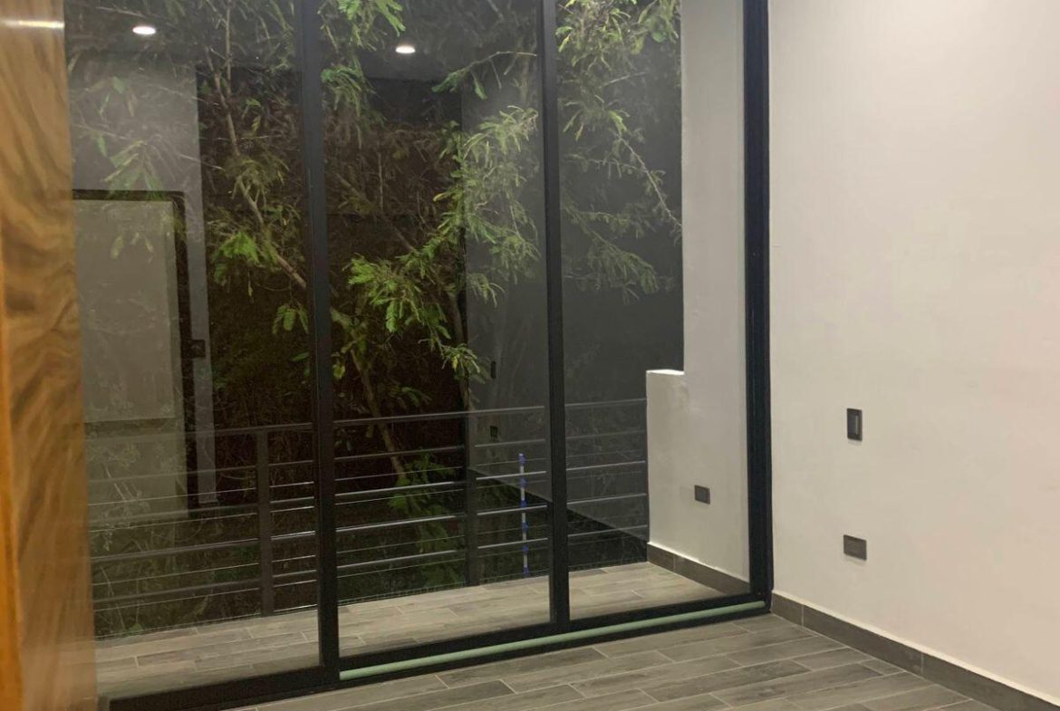 La Fronda Residencial Hermosa casa de dos pisos mas Roof Garden, con acabado de primera calidad que hacen de este espacio un lugar unico, comodo y elegante.Cuenta en planta baja con Amplia sala, comedor, cocina con barra de granito, isla con parrilla de 6 quemadores, campana y alacena, asi como un bano completo con puertas de cristal templado.En planta alta cuenta con 3 recamaras con closet c/u, 2 banos completos con puertas de cristal templado en regaderas y 1 estudio o cuarto de tv. En el tercer nivel cuenta con Espectacular Roof Garden con barra de servicio e impresionante vista panoramica, ademas de un amplio cuarto de lavado.Se entrega con aires acondicionados, pisos de porcelanato, carpinteria de parota, cisterna con hidroneumatico, tinaco con bomba, tanque de gas.