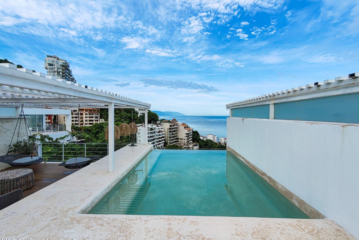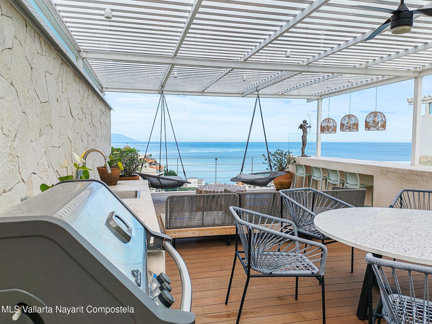 Located in the exclusive Amapas I condominium, in one of the most privileged areas of Puerto Vallarta, Casa Camaleon is a five-level residence with a total area of 510 m, designed for those who seek comfort, style, and breathtaking views.It features three bedrooms with en-suite bathrooms, a dedicated office, and two spacious terraces with stunning scenery. The rooftop garden offers a private pool, bar, grill, and outdoor dining area — the perfect setting to enjoy unforgettable sunsets.The gourmet kitchen is fully equipped with high-end finishes, and the condo’s shared amenities include a gym, pool, and barbecue area. It also offers a private elevator and covered parking for two vehicles.Just steps away from the beach, shops, and restaurants of the Romantic Zone.