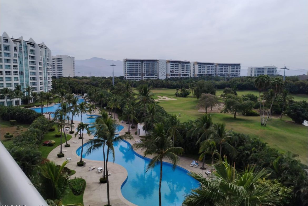 Hermoso condominio amueblado totalmente equipado, ubicado en uno de los mejores desarrollos del Gran Mayan en el campo de GolfCuenta con sala comedor con vista hacia la terraza, cocina equipada con barra desayunador con granito, 2 recamaras, 2 banos completos, la principal con balcon con vista hacia las albercas y campo de golf. Agradable terraza para disfrutar bellos atardeceres con vista hacia albercas, campo de golf Bellas areas verdes.Elevador, aires acondicionados y ventiladores, estacionamiento techado para un auto y con bodega, seguridad las 24horas.