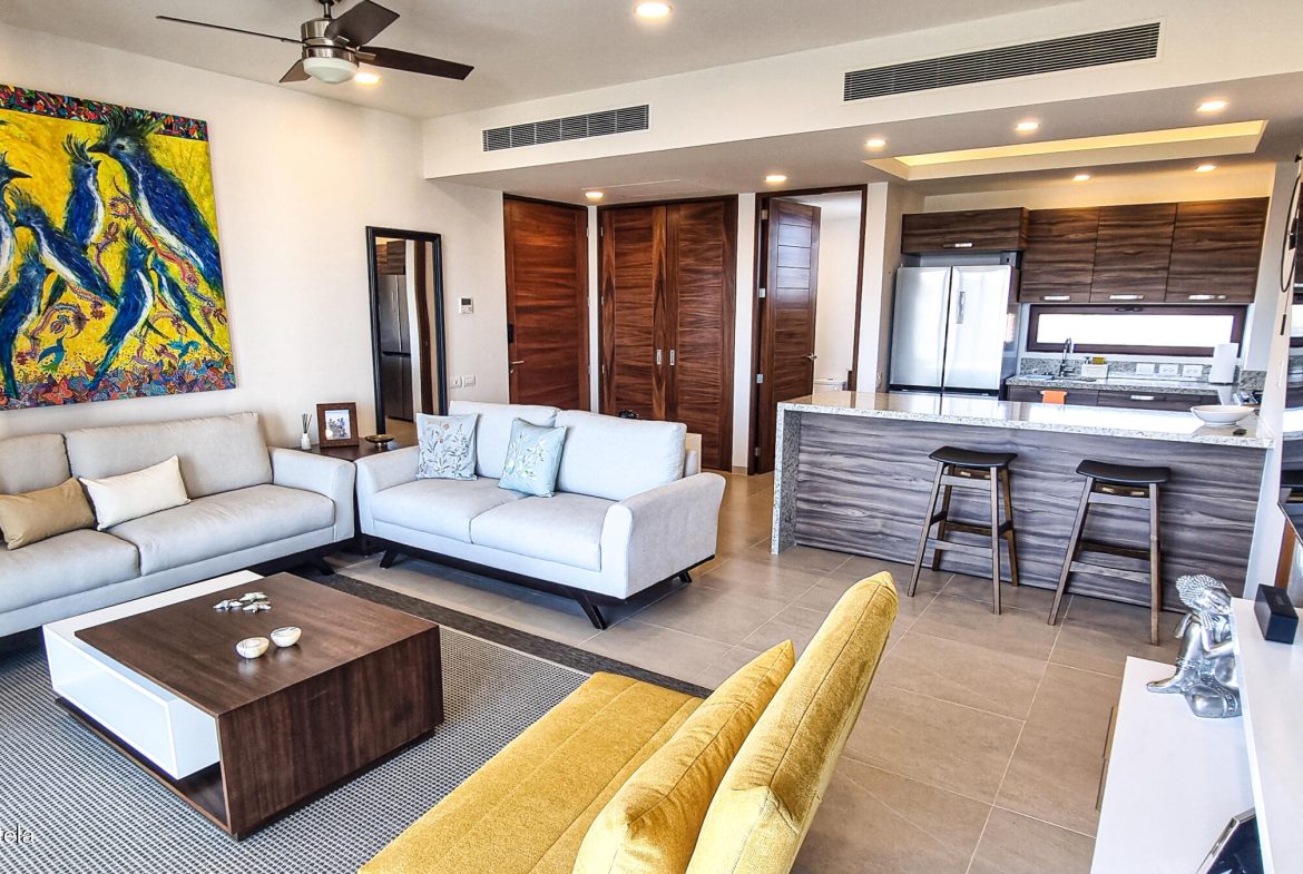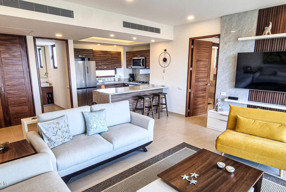 Elegante departamento de 98.5 m en el exclusivo desarrollo Alamar, totalmente amueblado y con vista al mar desde el 5to piso. Cuenta con 1 recamara amplia, 2 banos completos, cocina integral de lujo, sala-comedor con excelente iluminacion natural y terraza privada. Ideal como inversion o segunda residencia.Located in the exclusive Alamar development, this 98.5 m 5th-floor condo offers a rare blend of luxury, comfort, and nature. It features one spacious bedroom, two full bathrooms, an elegant open-concept kitchen, a living-dining area with natural light, and a private ocean-view terrace. Fully furnished and move-in ready.Perfect as a second home or vacation rental investment.