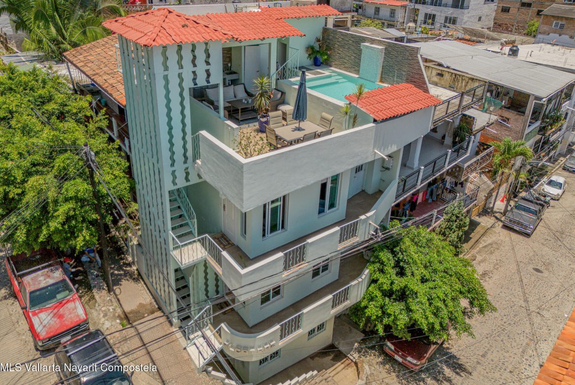 Welcome to Alcatraz, an extraordinary brand new- 3-level rental tower designed for serious investors and lifestyle seekers alike. Located in the vibrant heart of Centro Puerto Vallarta, this versatile income-generating property features three beautifully modern finished 1- bedroom, 1-bathroom units -one per floor – each offering comfort, privacy, and high rental appeal. Crowning the building is a stunning rooftop terrace with a private pool, where you and your guests can soak in panoramic views of Banderas Bay’s legendary sunsets. Whether you are relaxing poolside, entertaining, or marketing your short-term rentals, the rooftop will be your strongest selling point.