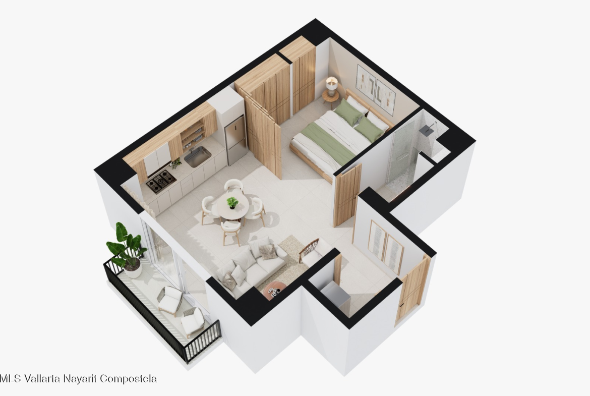 Condo #101 at ALERO offers the quiet charm of being set within the interior of the building, overlooking the serene garden courtyard. Designed to maximize natural light and airflow, the layout provides comfort, privacy, and a unique sense of retreat. Secure it now with pre-construction discounts starting at 12% with multiple payment plan options available.ALERO, a boutique six-level development in 5 de Diciembre just two blocks from the beach, features 26 condos blending style, functionality, and investment potential. Choose from studios, 1- and 2-bedroom layouts with private terraces and smart interiors. Amenities include a rooftop infinity pool with ocean views, gym, grill area, a welcoming lobby, and interior garden, steps from the Malecon, cafes, markets, and restaurants.