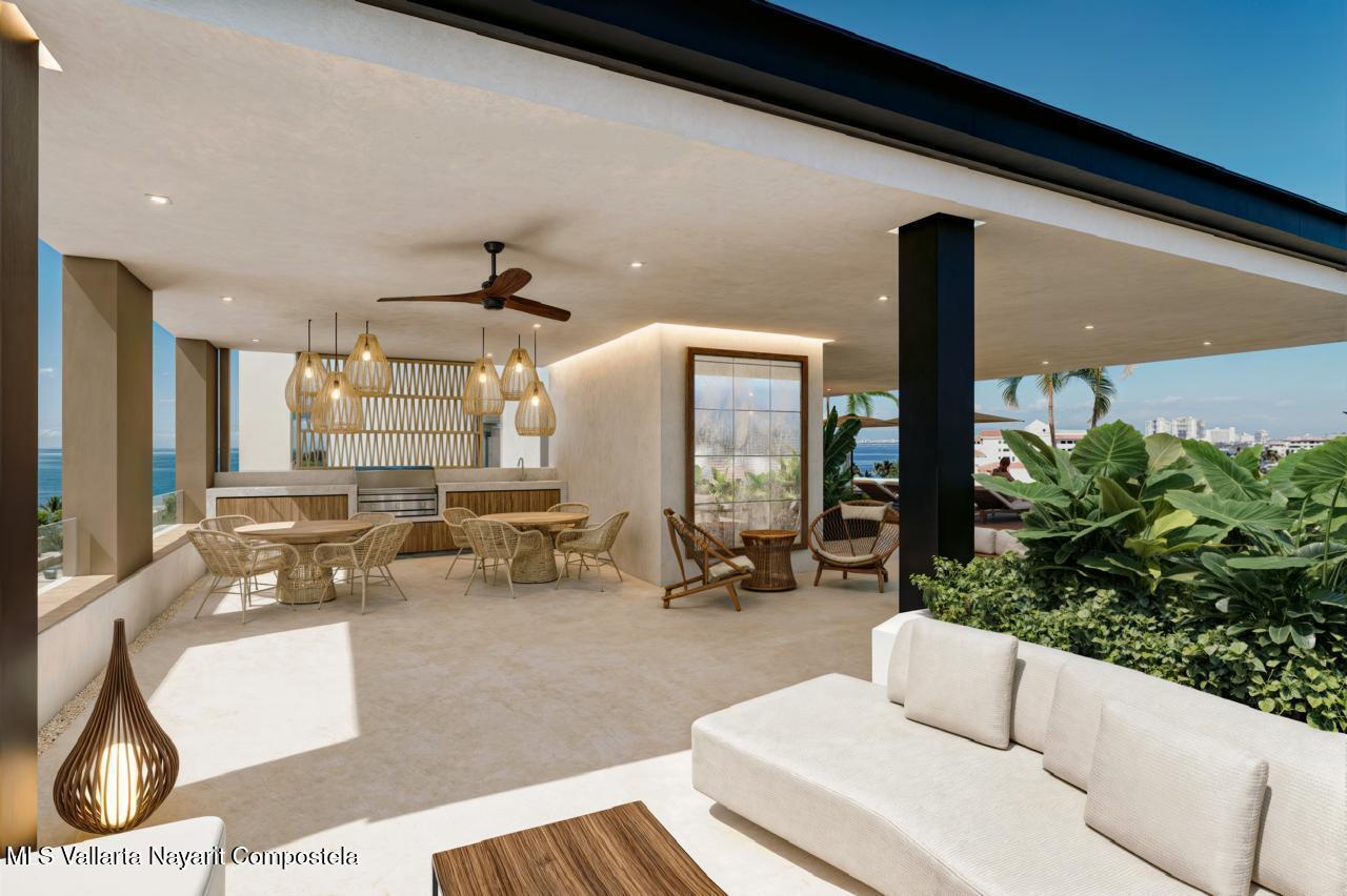 Condo 104 is a 2-bedroom, 2-bath condominium located on the corner of the building, featuring a spacious wraparound terrace along Honduras and Colombia Streets. Just two blocks from the beach, its well-planned layout combines functionality and comfort for everyday living. Alero is a boutique pre-construction development in the 5 de Diciembre neighborhood, with only 26 condominiums across six levels, offering studios, one- and two-bedroom layouts. Amenities include a welcoming lobby, an interior garden inspired by Vallarta’s traditional architecture, and a rooftop with infinity pool, gym, lounge, BBQ area, and 360 panoramic views. Secure it now with pre-construction discounts starting at 12% with multiple payment plan options available.