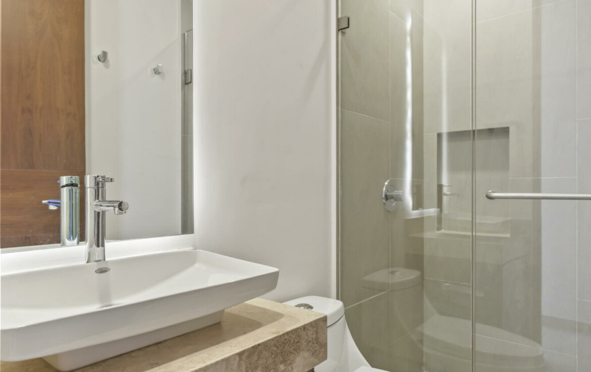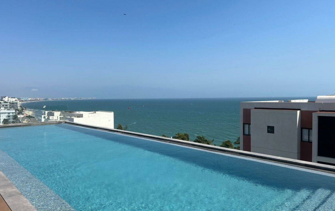 Allegra is an exclusive development of 40 luxury apartments just a few steps from the sea. It combines architectural excellence with an extraordinary location. All units are 2 bedroom 2 bathroom apartments with views over the city and partial ocean views. Amenities include a rooftop pool, jacuzzi, gym, zen garden, co-working space, lobby, underground parking, and elevator. Allegra es un exclusivo desarrollo de departamentos de lujo a unos pasos del mar. Combina la excelencia arquitectonica con una ubicacion extraordinaria. Todas las unidades son apartamentos de 2 dormitorios y 2 banos con vistas a la ciudad y vistas parciales al mar. Amenidades cuenta con alberca y jacuzzi en la azotea, gimnasio, jardin zen, espacio coworking, lobby, estacionamiento subterraneo y elevador.