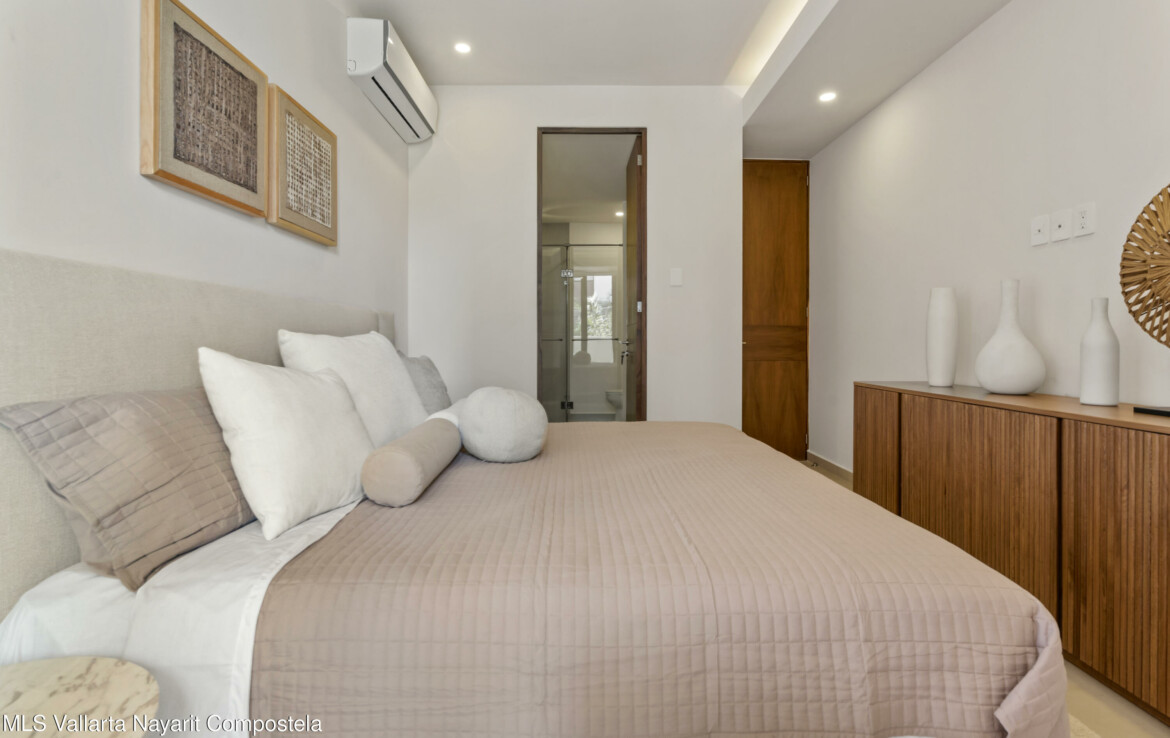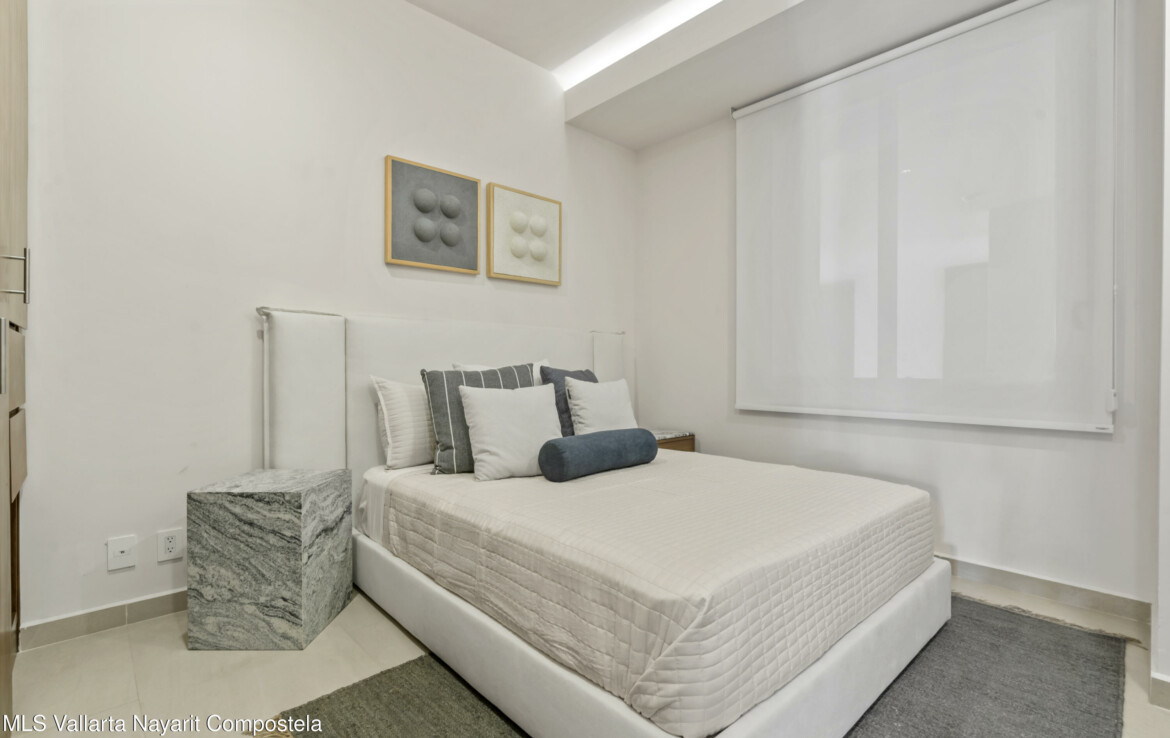 Allegra is an exclusive development of 40 luxury apartments just a few steps from the sea. It combines architectural excellence with an extraordinary location. All units are 2 bedroom 2 bathroom apartments with views over the city and partial ocean views. Amenities include a rooftop pool, jacuzzi, gym, zen garden, co-working space, lobby, underground parking, and elevator. Allegra es un exclusivo desarrollo de departamentos de lujo a unos pasos del mar. Combina la excelencia arquitectonica con una ubicacion extraordinaria. Todas las unidades son apartamentos de 2 dormitorios y 2 banos con vistas a la ciudad y vistas parciales al mar. Amenidades cuenta con alberca y jacuzzi en la azotea, gimnasio, jardin zen, espacio coworking, lobby, estacionamiento subterraneo y elevador.
