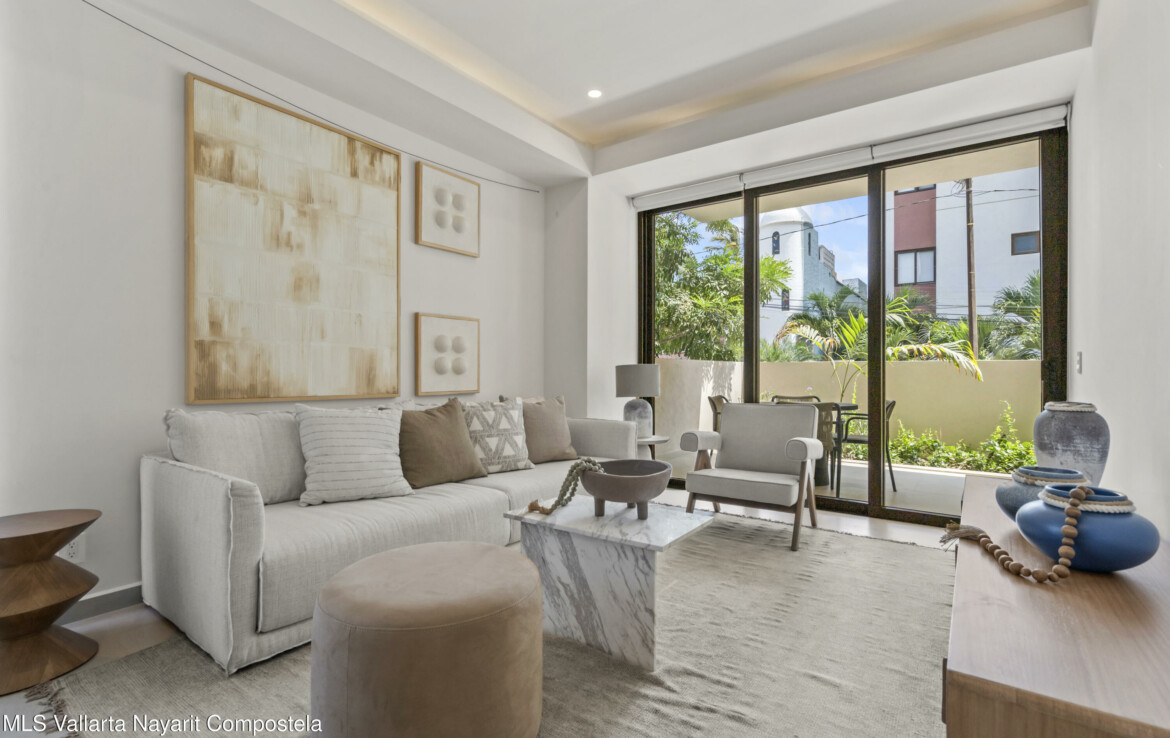 Allegra is an exclusive development of 40 luxury apartments just a few steps from the sea. It combines architectural excellence with an extraordinary location. Unit 201 is located on a ground floor and has a terrace with a garden. Amenities include a rooftop pool, jacuzzi, gym, zen garden, co-working space, lobby with concierge, underground parking and storage space. Allegra es un exclusivo desarrollo de departamentos a unos pasos del mar listos para entrar vivir. Combina la excelencia arquitectonica con una ubicacion extraordinaria. Este unidad tiene 2 dormitorios, 2 banos, sala, cocina – comedor y teraza con jardin. Amenidades cuenta con alberca y jacuzzi en la azotea, gimnasio, jardin zen, espacio coworking, lobby con concierge, estacionamiento subterraneo y bodegas.