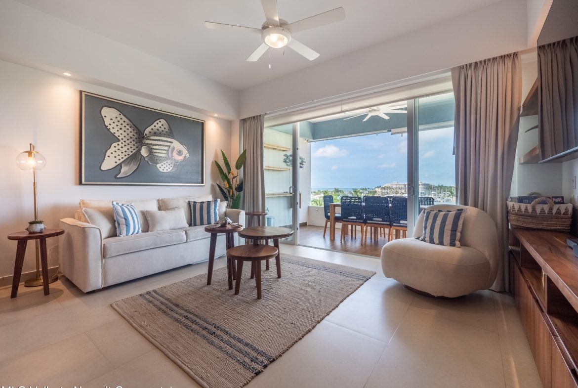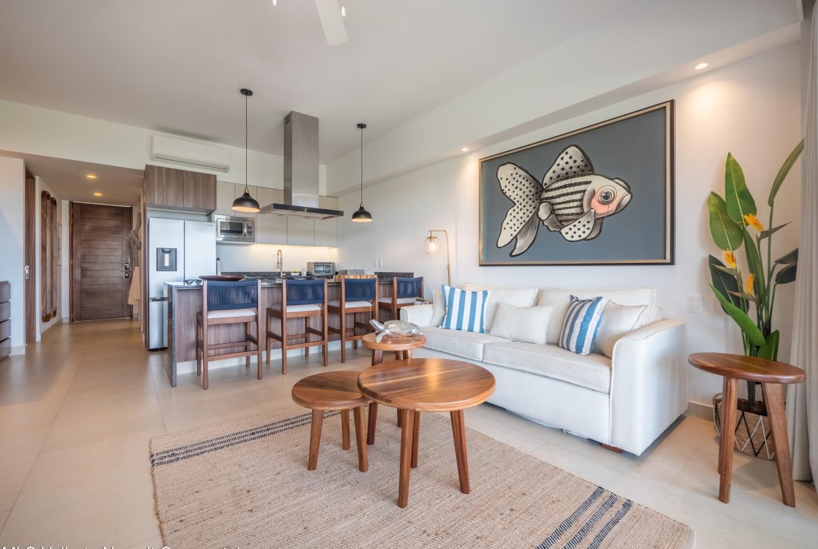 Vive en el corazon de la Marina de Nuevo Vallarta Disfruta de este hermoso departamento completamente amueblado de 2 recamaras y 2 banos, disenado para ofrecer comodidad y estilo en cada rincon.Ubicado en una de las zonas mas exclusivas de la Riviera Nayarit, este hogar cuenta con excelentes amenidades, como alberca, cuarto de lavado y acceso pet friendly, ideal para disfrutar junto a tu familia y mascotas.A pocos pasos de la marina, restaurantes, tiendas y la playa — todo lo que necesitas para vivir el estilo de vida costero que siempre sonaste!
