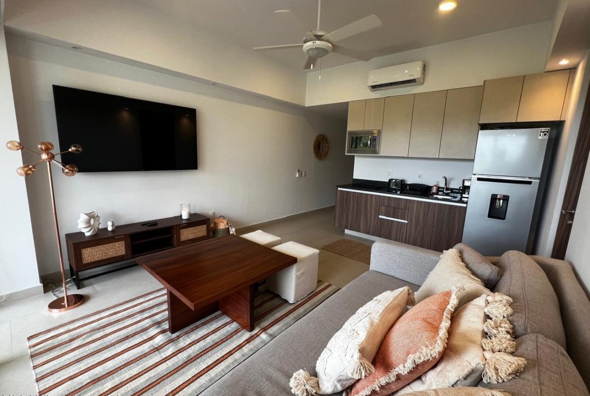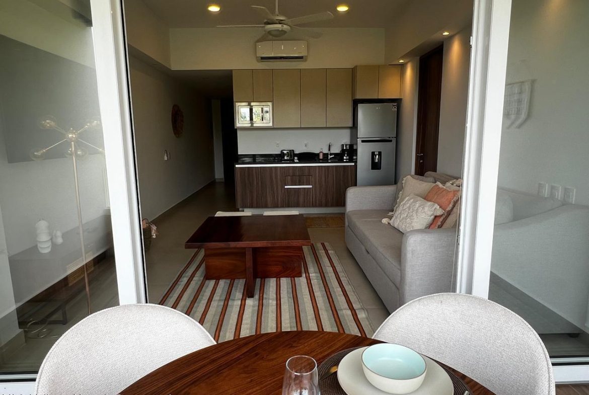 303 Altamar, Nuevo VallartaLocation: Paseo de las Palmas 38 A, Marina Nuevo Vallarta, Nayarit/Jalisco, Mexico. This premium development is situated in the heart of the marina zone, offering a strategic and desirable address.Unit Specifications:*1 Bedroom*1 Full Bathroom*Interior area: 52.8 m*Assigned parking space*Private terraceDevelopment Amenities:*Elegant lobby with reception/administration services.*24-hour security. *Large common area featuring a swimming pool, jacuzzi, children’s wading pool, and extensive sun-terrace/solarium and gardens. *Fully equipped gymnasium/fitness centre. *Commercial area.