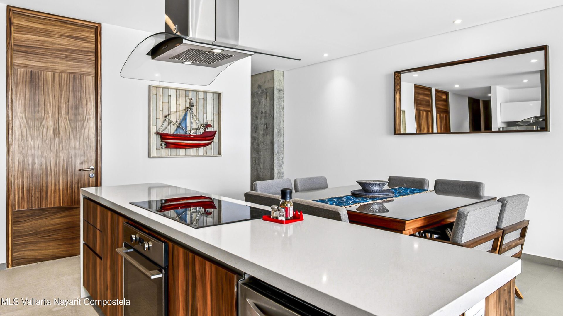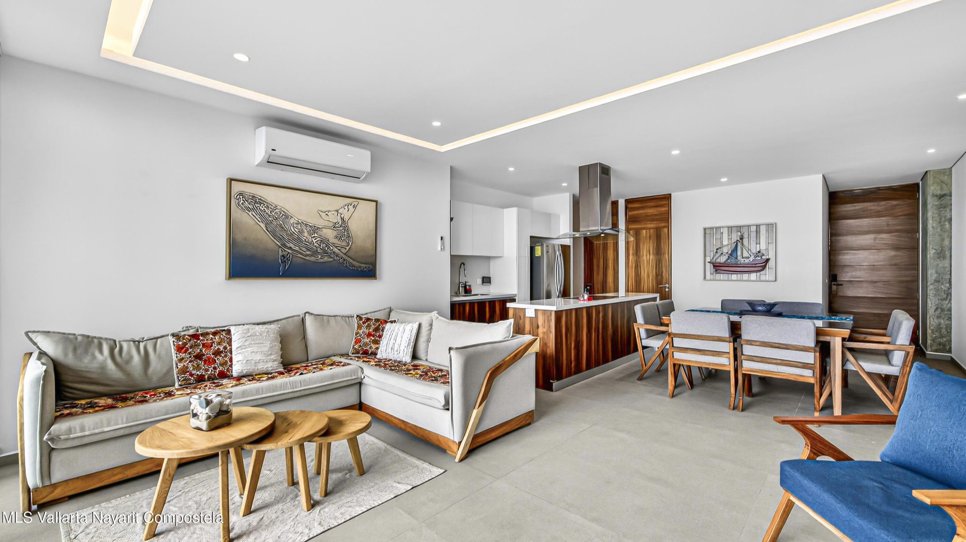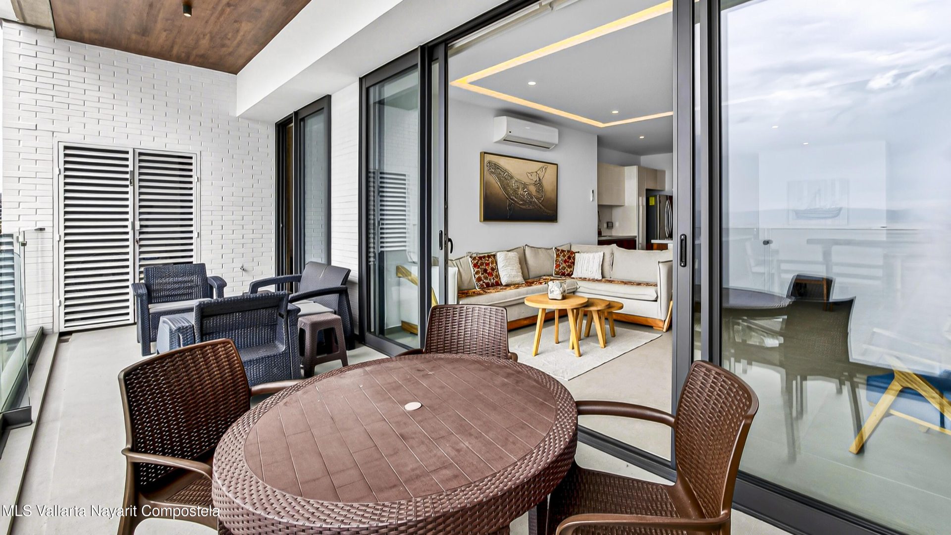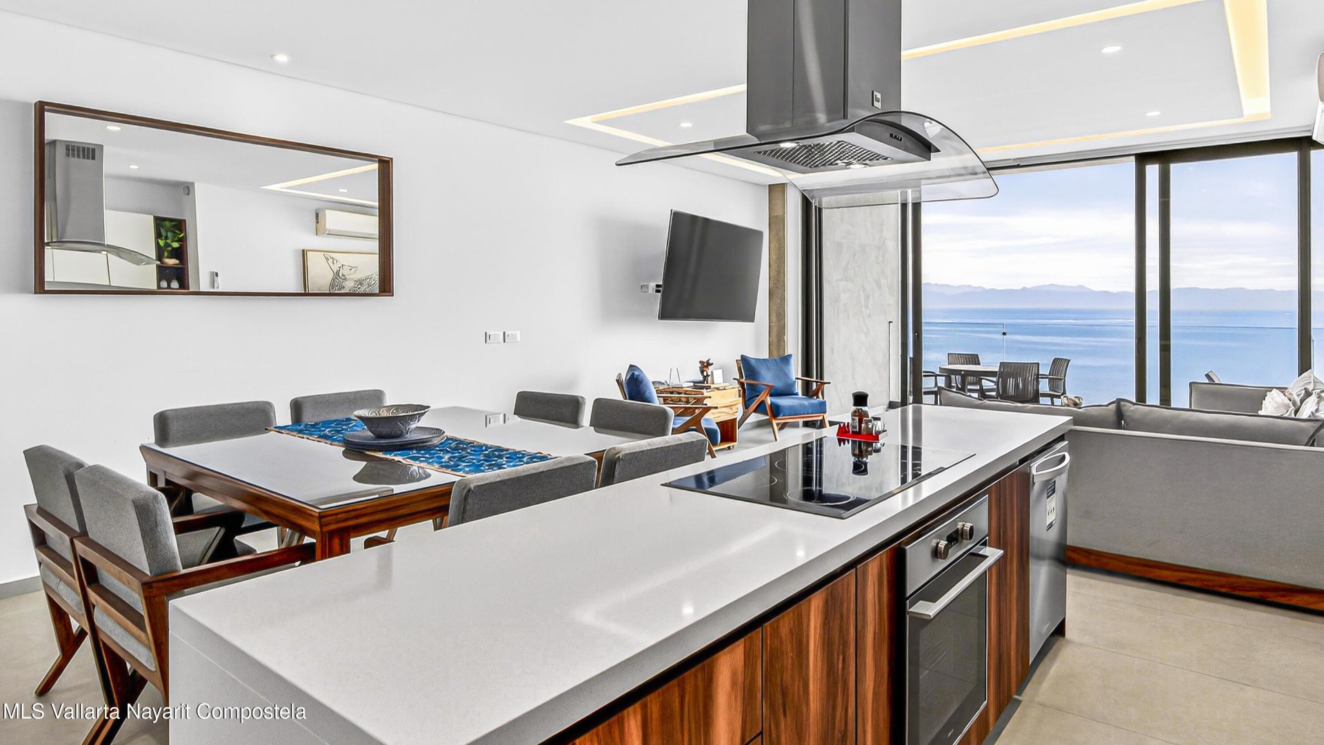 Experience beach front luxury at Arama Bay B505. This 3-bedrrom, 3-bathroom sanctuary features a seamless open-concept design where floor-to-ceiling glass frames breathtaking views of Banderas Bay. The gourment kitchen boast a waterfall-edge island and premium appliances.Retreat to the master suite with custom wood cabinetry or versatile guest rooms twin and bunk beds. Relax in spa-like bathrooms with dual vanities and stone finishes.Step onto your private terrace for whale watching or head to the rooftop terrace. The building offers elite amenities including multiple infinity-edge hot tubs and plush loungers overlooking the sea. Residents will enjoy one-of-a-kind pool with stunning ocean views, a fully equipped gym, and a business center.