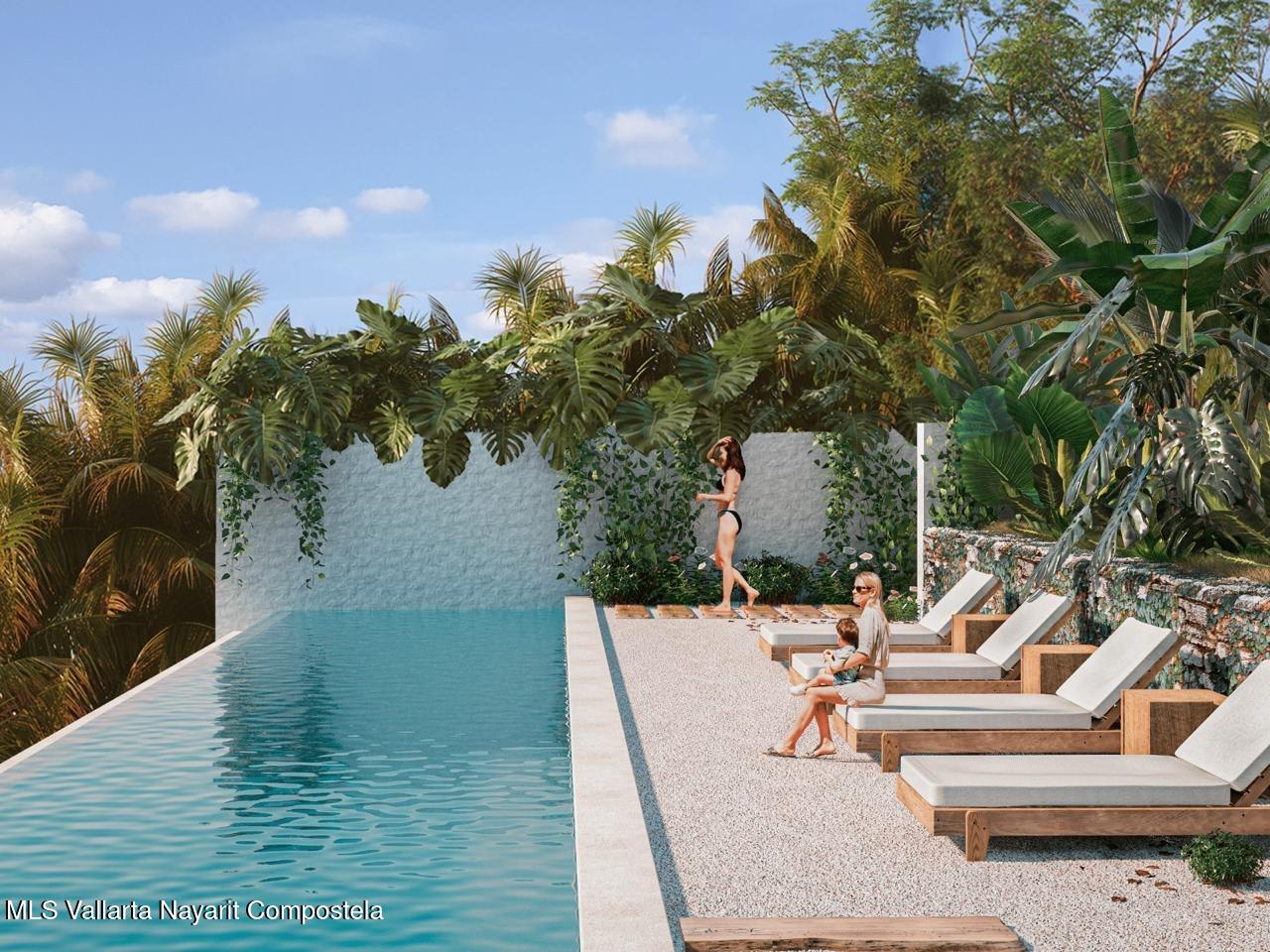 Welcome to Arboleda, an exclusive development of just four stand-alone homes perched atop a serene hill in the charming town of Lo de Marcos. This peaceful enclave offers the perfect balance of privacy and community, located just a block from the beach, where you can enjoy the soothing ocean breezes.This stunning 2-bedroom, 2.5-bathroom home is designed with unique architecture that allows natural sunlight to flood the open living spaces. Surrounded by lush gardens and trees, this tranquil retreat offers breathtaking views of the surrounding mountains, jungle, and ocean, creating a truly picturesque setting.Relax and unwind in the infinity pool, perfectly positioned to overlook the vast ocean. Whether you’re enjoying the beauty of nature or simply soaking up the tranquility, this