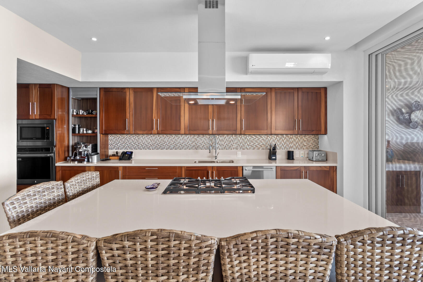 Discover this stunning, modern, and sophisticated full-floor beachfront unit, offering the pinnacle of luxury living within the esteemed community of Sierra del Mar Los Arcos. Enjoy ultimate privacy with a private entrance from the elevator opening immediately into an incredible open floor plan. This seamless space flows out to an ample covered outdoor terrace overlooking the turquoise ocean, beach, pool, and lush tropical gardens. The gorgeous modern kitchen is a chef’s dream, featuring an oversized center island with bar seating, custom solid wood cabinetry, high-end stainless-steel appliances, a large adjacent pantry, and a built-in outdoor barbecue. The amazing master suite offers direct terrace access and showcases a spa-style bathroom with a double-head shower and see more…
