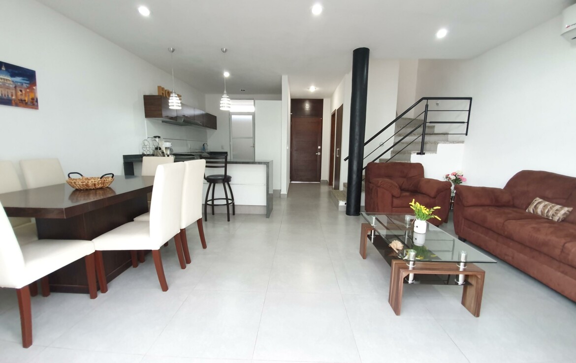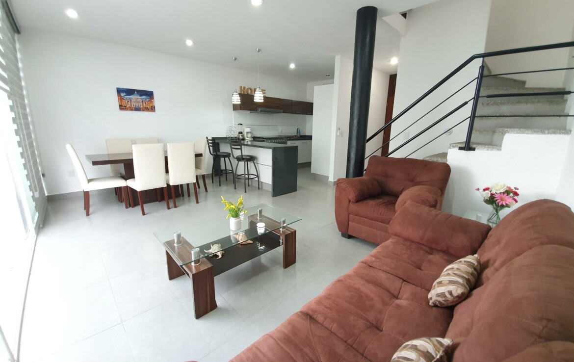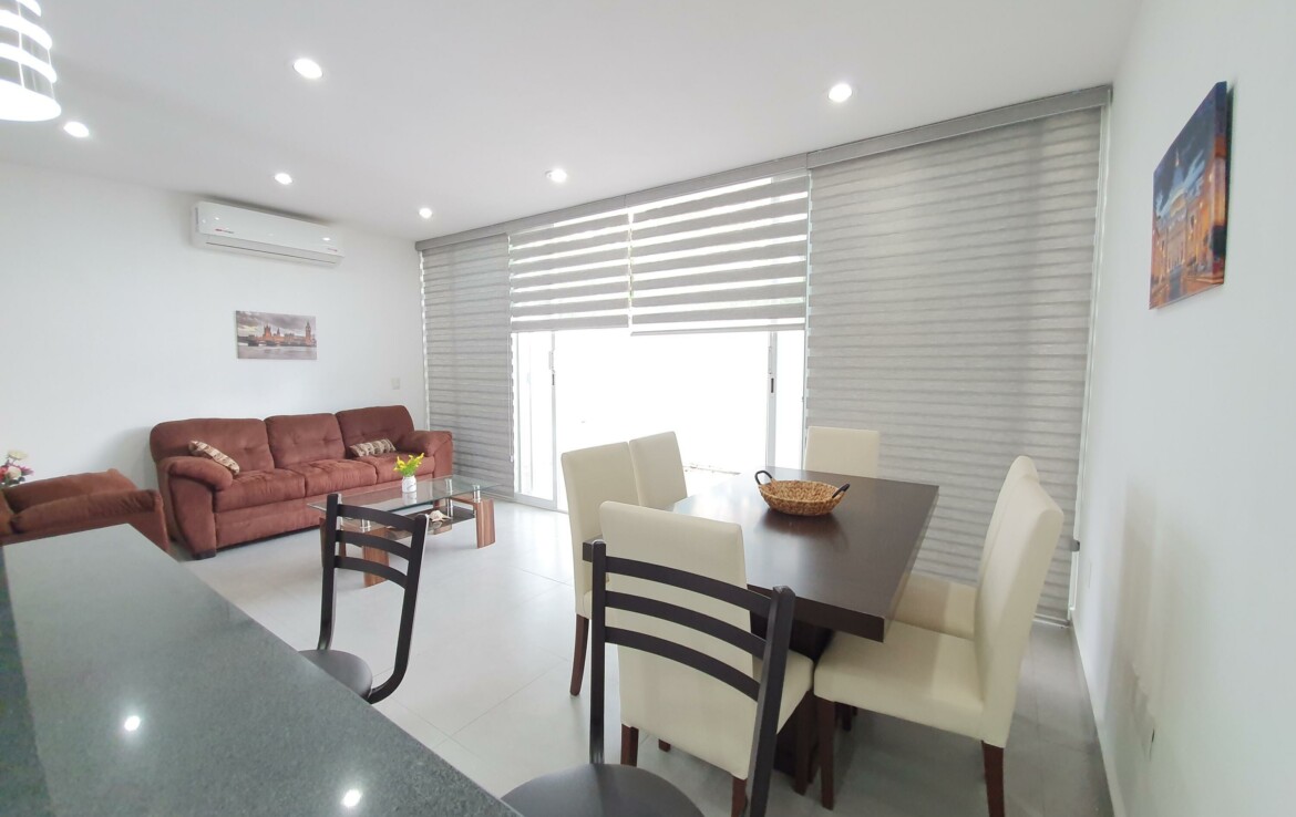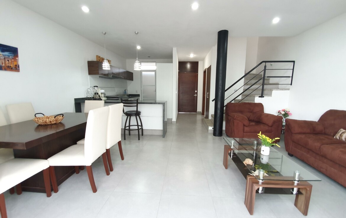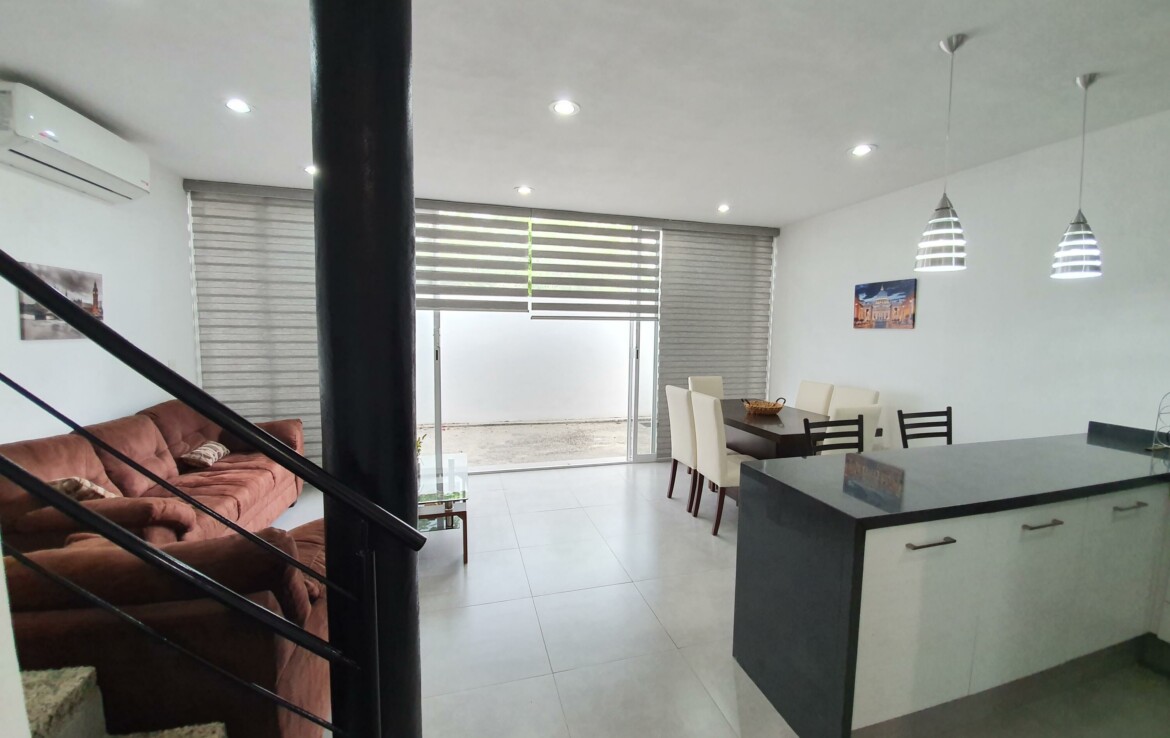 ENGLISH BELOWLa propiedad se encuentra en Coto Arrecifes, a un costado de Rincon del Cielo, dentro de uno de los desarrollos mas tranquilos y completos de la zona, lo que la convierte en una excelente opcion tanto para vivir como para invertir. Esta libre de gravamen y cuenta con tres habitaciones equipadas con closets, ventiladores y aire acondicionado inverter. Se entrega amueblada, incluyendo cama matrimonial, litera matrimonial e individual, sofa cama y television. La distribucion contempla dos banos y medio, sala comoda, comedor para seis personas, cocina totalmente equipada con barra de granito, cuarto de lavado con lavadora y dos cajones de estacionamiento. Ademas, dispone de tanque estacionario de gas. La superficie del terreno es de 91.42 m y la construccion de 110.52 m.