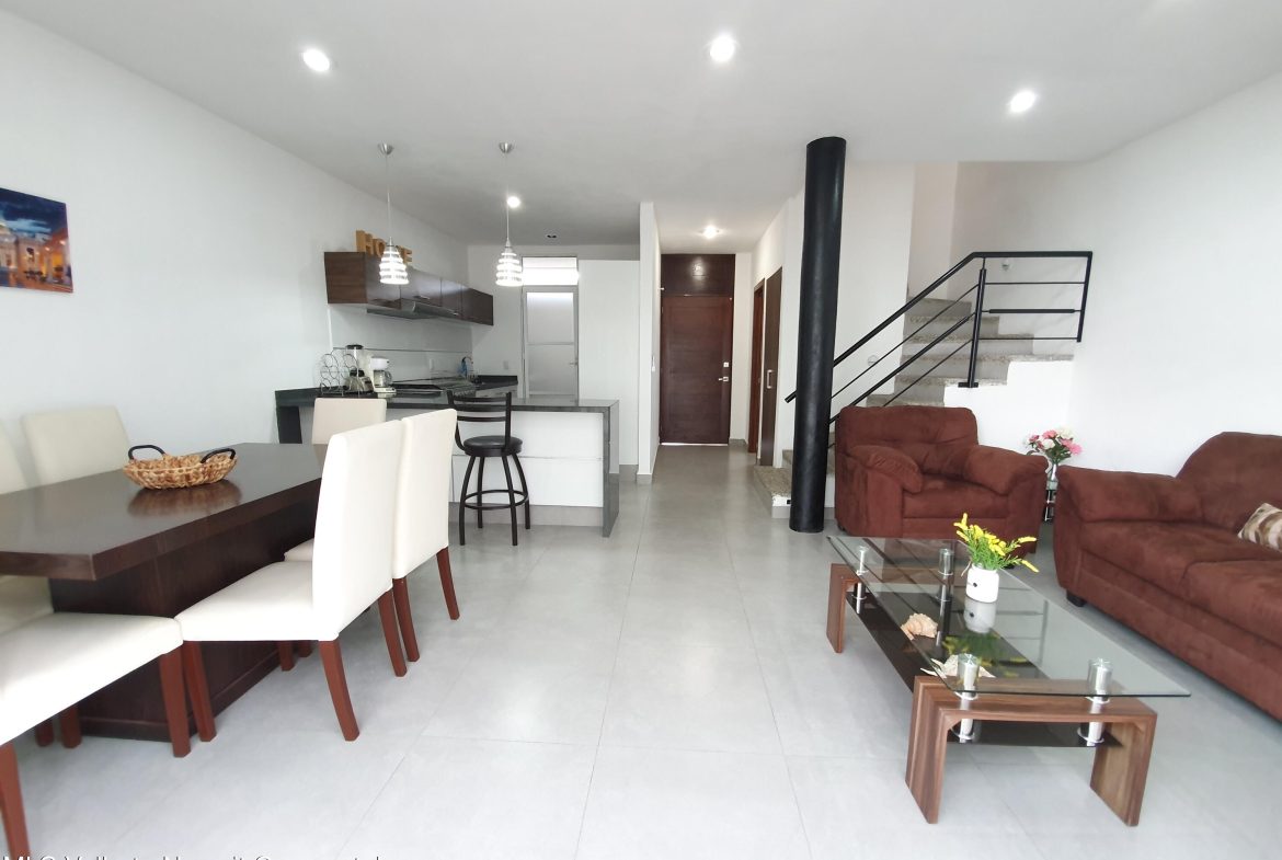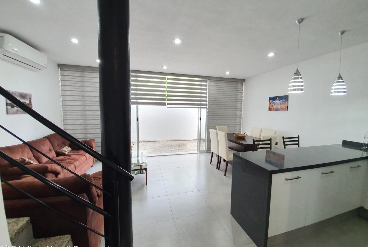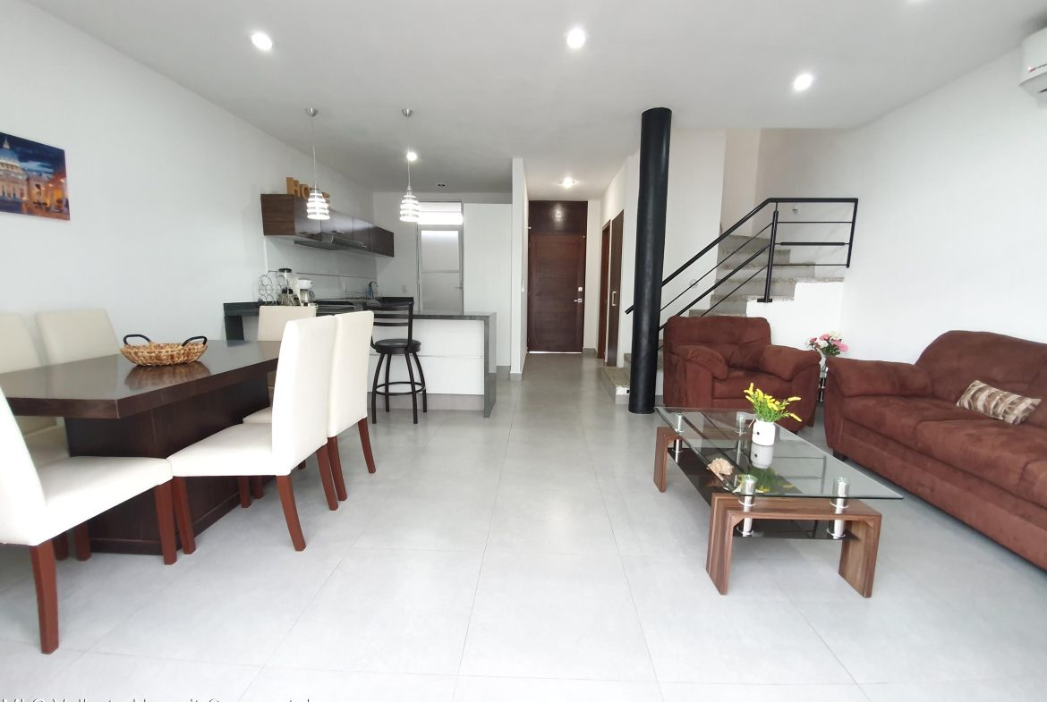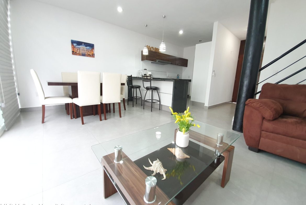 ENGLISH BELOWLa propiedad se encuentra en Coto Arrecifes, a un costado de Rincon del Cielo, dentro de uno de los desarrollos mas tranquilos y completos de la zona. Esta libre de gravamen y cuenta con tres habitaciones equipadas con closets, ventiladores y aire acondicionado inverter. Se entrega amueblada, incluyendo cama matrimonial, litera matrimonial e individual, sofa cama y television. La distribucion contempla dos banos y medio, sala comoda, comedor para seis personas, cocina totalmente equipada con barra de granito, cuarto de lavado con lavadora y dos cajones de estacionamiento. Ademas, dispone de tanque estacionario de gas. La superficie del terreno es de 91.42 m y la construccion de 110.52 m. *Citas con 3 dias minimo de anticipacion*