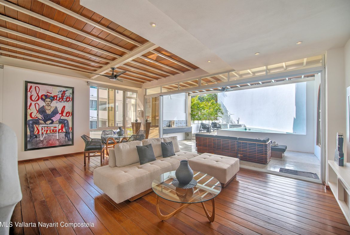 Townhouse living with boutique development amenities in the heart of Puerto Vallarta. Welcome to Ava Casa 19, a spacious three bedroom, three and a half bath home located in the thriving Cinco de Diciembre neighborhood. Spanning three levels, Ava Casa 19 features a two car garage and utility room on the ground level; a generous, open-concept living, dining room and kitchen that opens onto a tropical terrace with plunge pool on the main level. The top floor has a principal en suite bedroom and two additional bedrooms and bathrooms – perfect for hosting friends and family. Ava Casa 19 has 24-hour security, stunning rooftop pool & lounge with panoramic views of the Bay of Banderas; well-equipped gym, co-working space and tropical gardens complete with Koi pond.