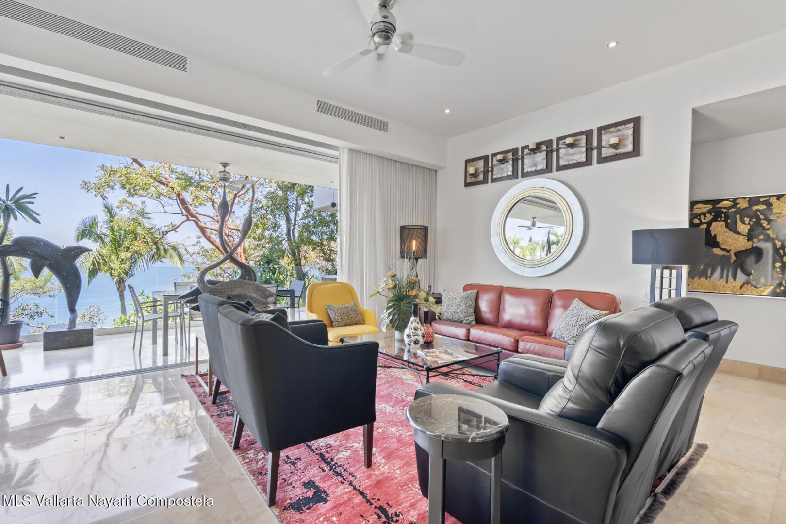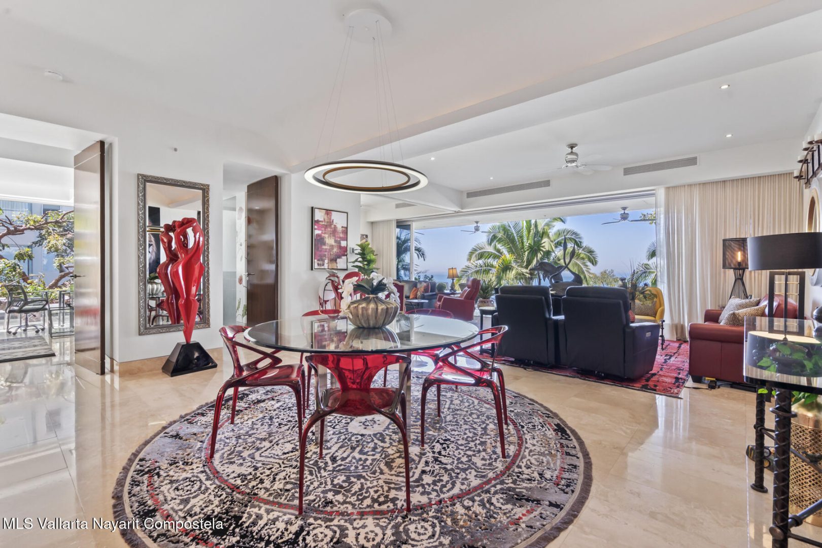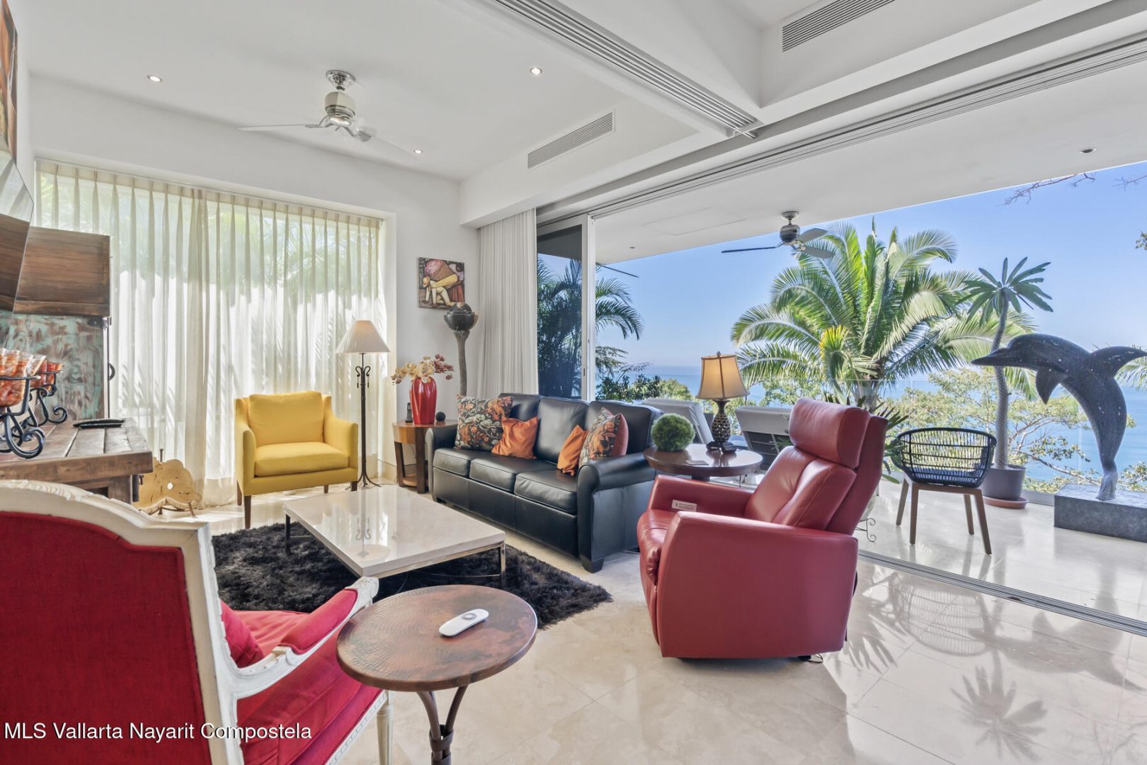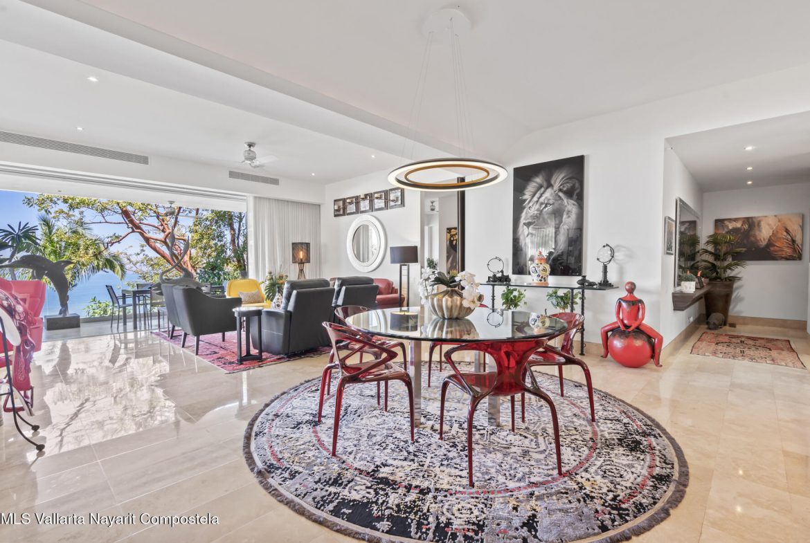 Avalon 205 is a luxurious 2-bedroom, 2.5-bathroom condo in the prestigious hills of Amapas, offering unobstructed views of the Bay of Banderas, the mountains, and Puerto Vallarta’s charming town. This contemporary masterpiece features a red gourmet kitchen with high-end stainless steel appliances, opening to a sleek living and dining area with floor-to-ceiling doors that flow seamlessly to a spacious terrace, perfect for year-round sunsets.The spacious master suite boasts a private terrace with stunning views and a spa-inspired ensuite with a freestanding egg-shaped soaking tub and a large glass shower. The second bedroom also features breathtaking ocean views and a luxurious ensuite. A versatile flex room can serve as an office or guest bedroom.