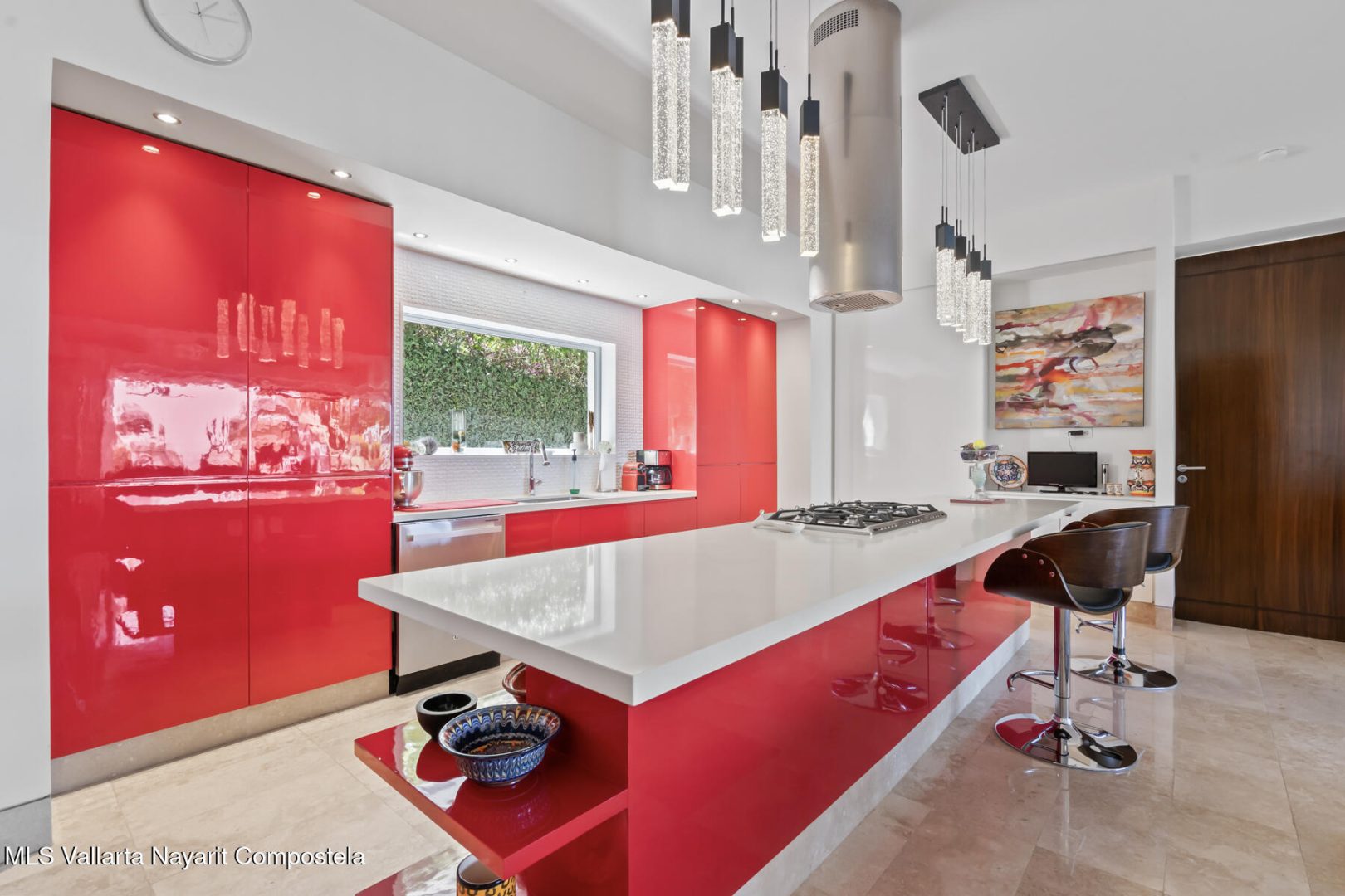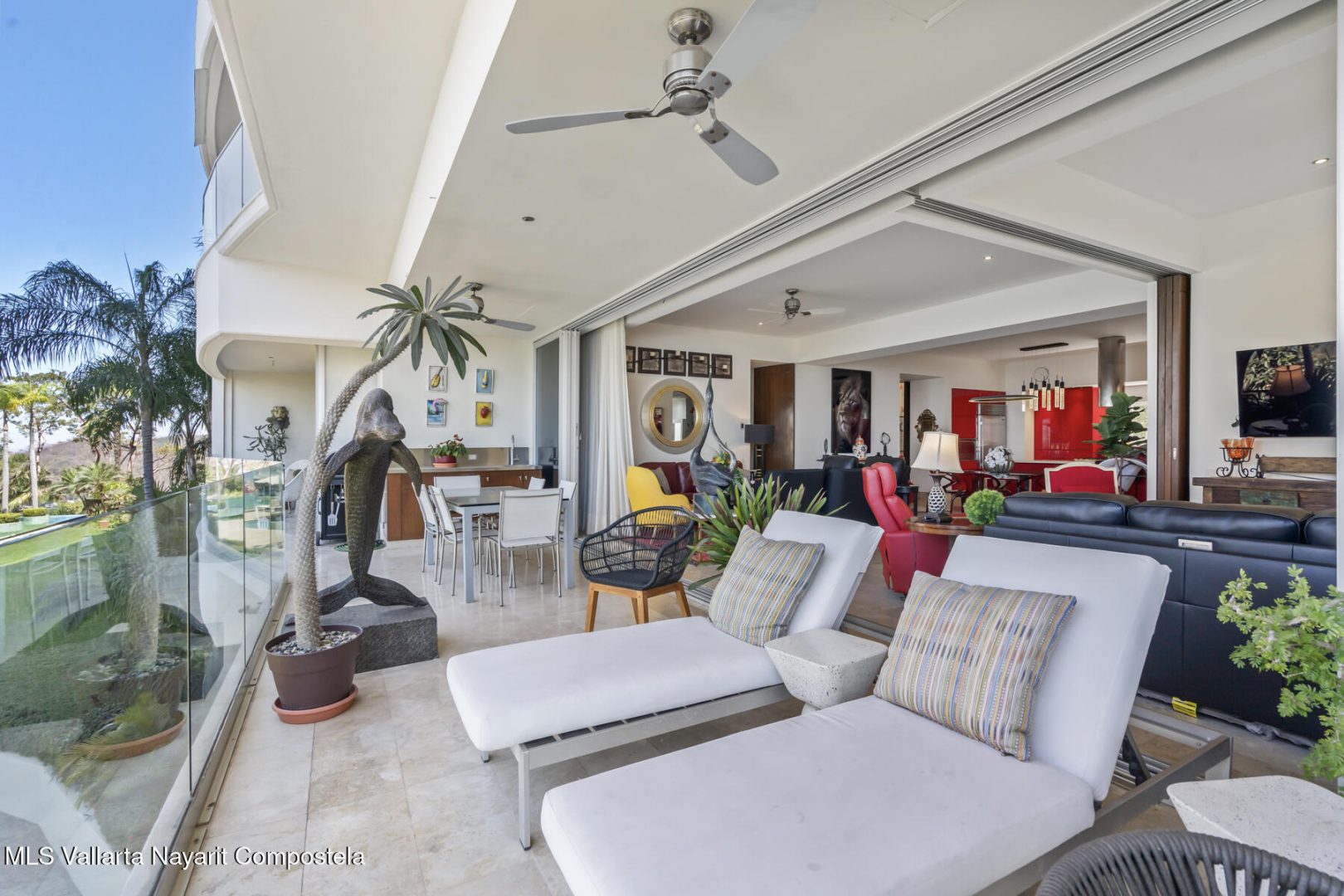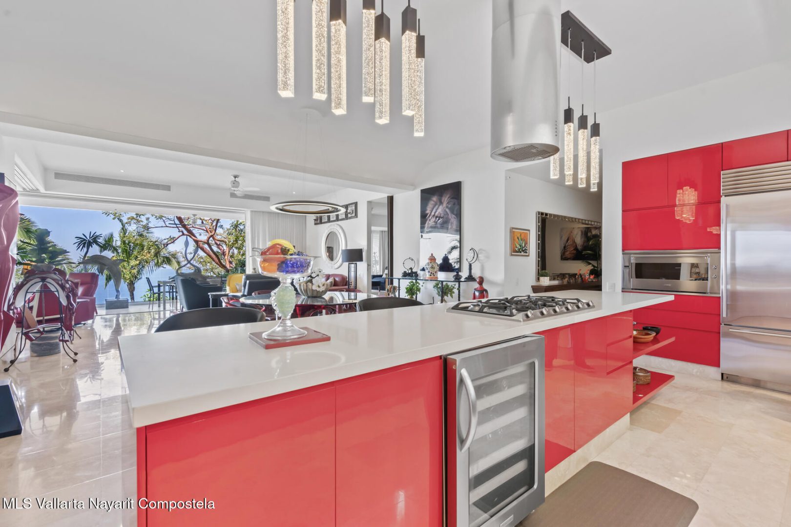 Avalon 205 is a luxurious 2-bedroom, 2.5-bathroom condo in the prestigious hills of Amapas, offering unobstructed views of the Bay of Banderas, the mountains, and Puerto Vallarta’s charming town. This contemporary masterpiece features a red gourmet kitchen with high-end stainless steel appliances, opening to a sleek living and dining area with floor-to-ceiling doors that flow seamlessly to a spacious terrace, perfect for year-round sunsets.The spacious master suite boasts a private terrace with stunning views and a spa-inspired ensuite with a freestanding egg-shaped soaking tub and a large glass shower. The second bedroom also features breathtaking ocean views and a luxurious ensuite. A versatile flex room can serve as an office or guest bedroom.