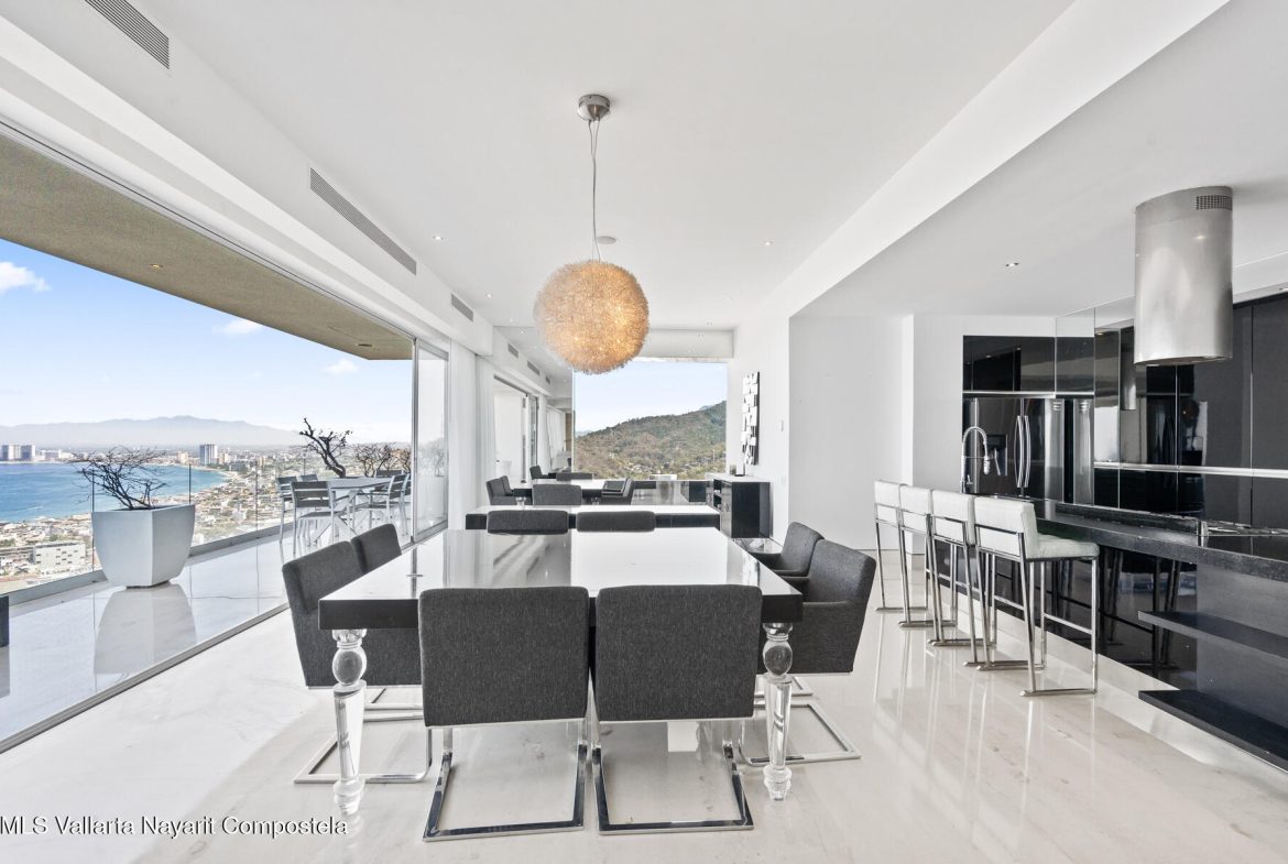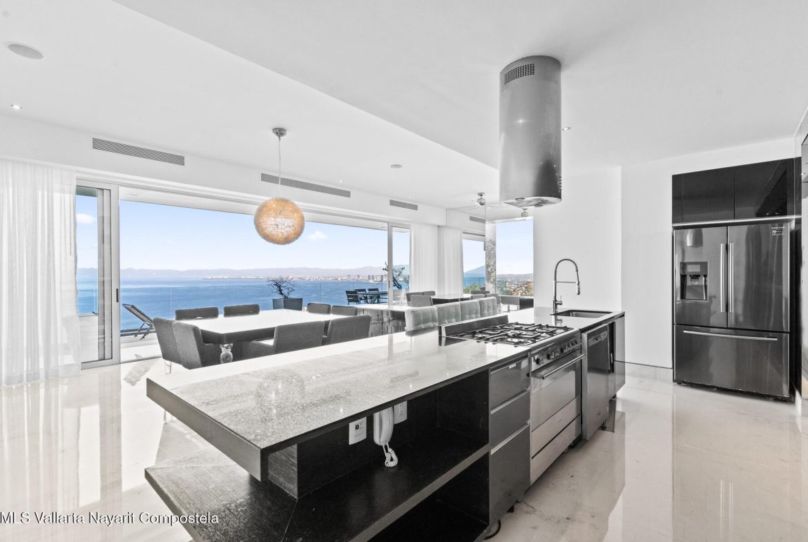 AVALON 507-508 is located in the stunning hills of Amapas on the south shore of Puerto Vallarta. This double unit is located in the main tower of the complex, enjoys incredible views from the lovely landscapes of the city of Vallarta and the bay, to Los Arcos National Marine Park to. The master bedroom has a large space, TV, full bathroom including a bathtub, large closet and a wonderful sea view from all angles. The room 2 and 3 have king bed ,full bathroom ,tv and closet . The area of the living room, dining room and kitchen have an incredible harmonious view which you can enjoy together with your family and guests . There’s also a guest bathroom. A very large laundry area that includes washer, dryer, can be converted into a small studio or office