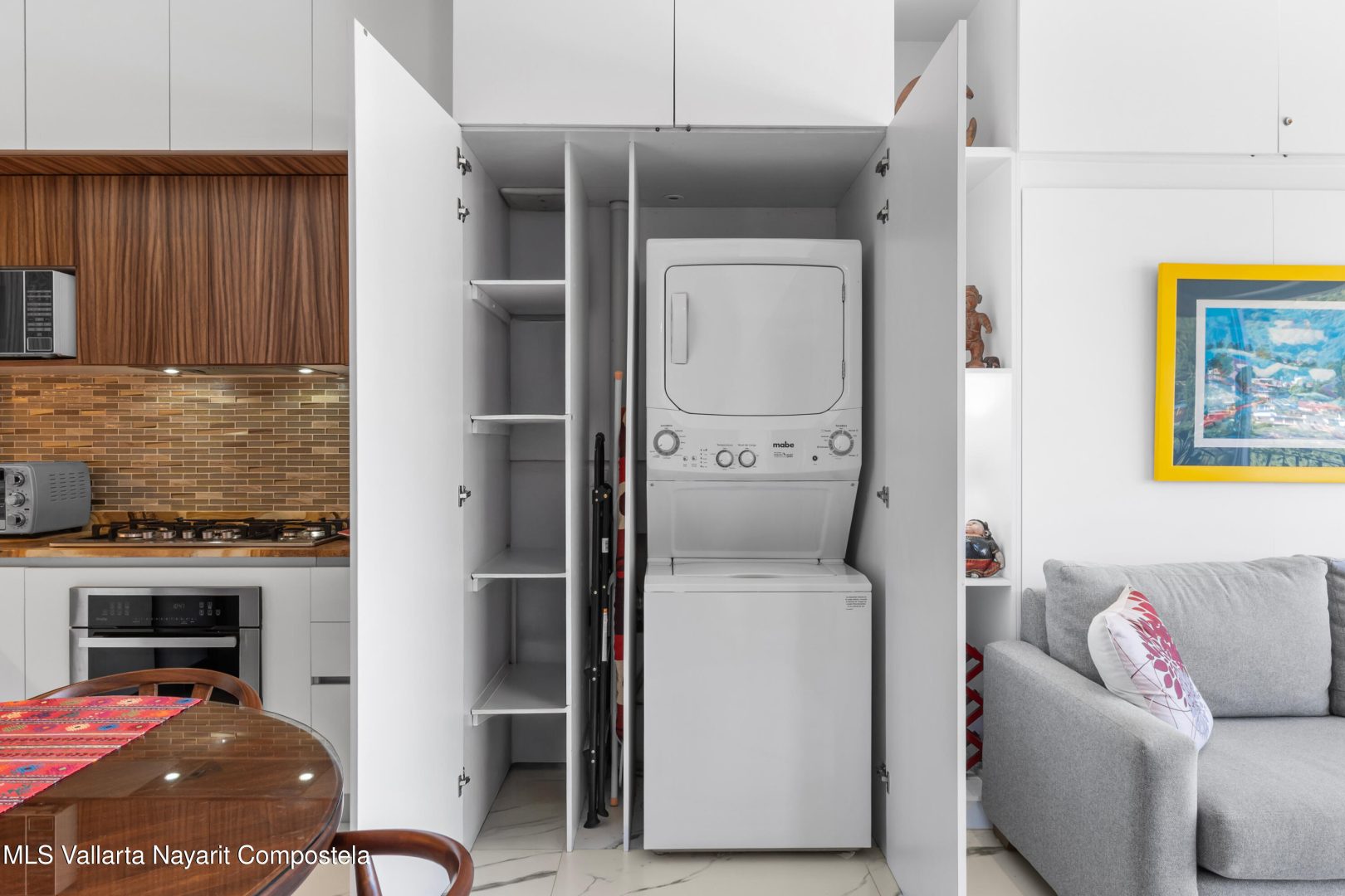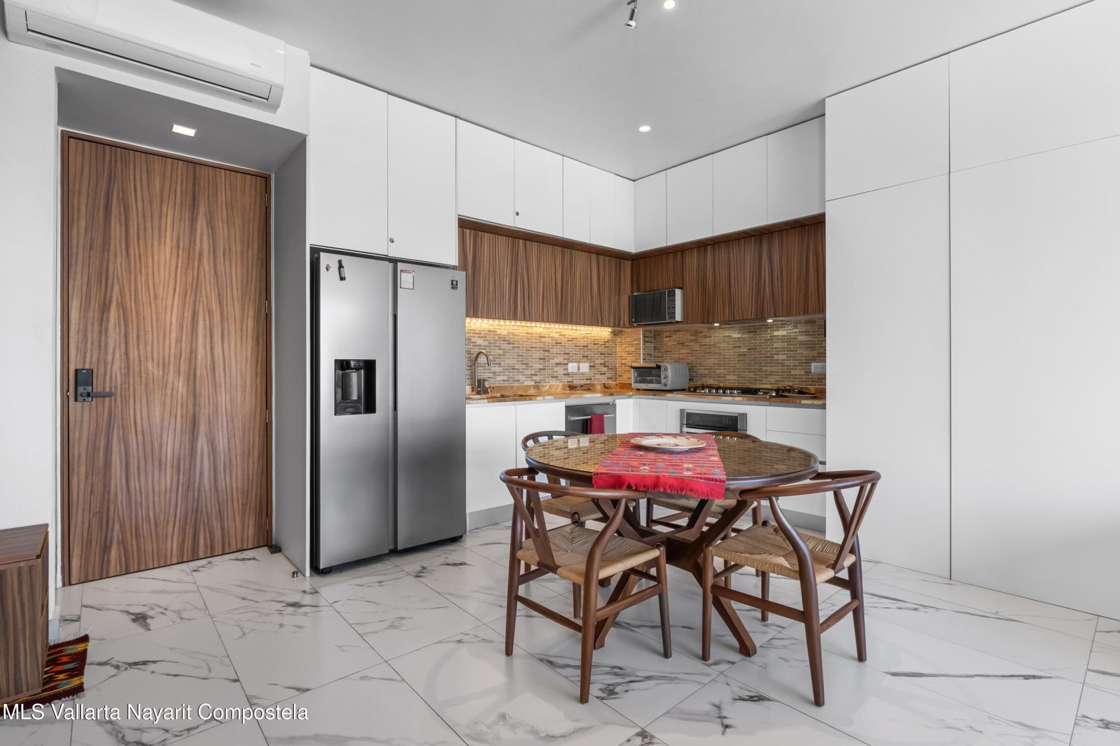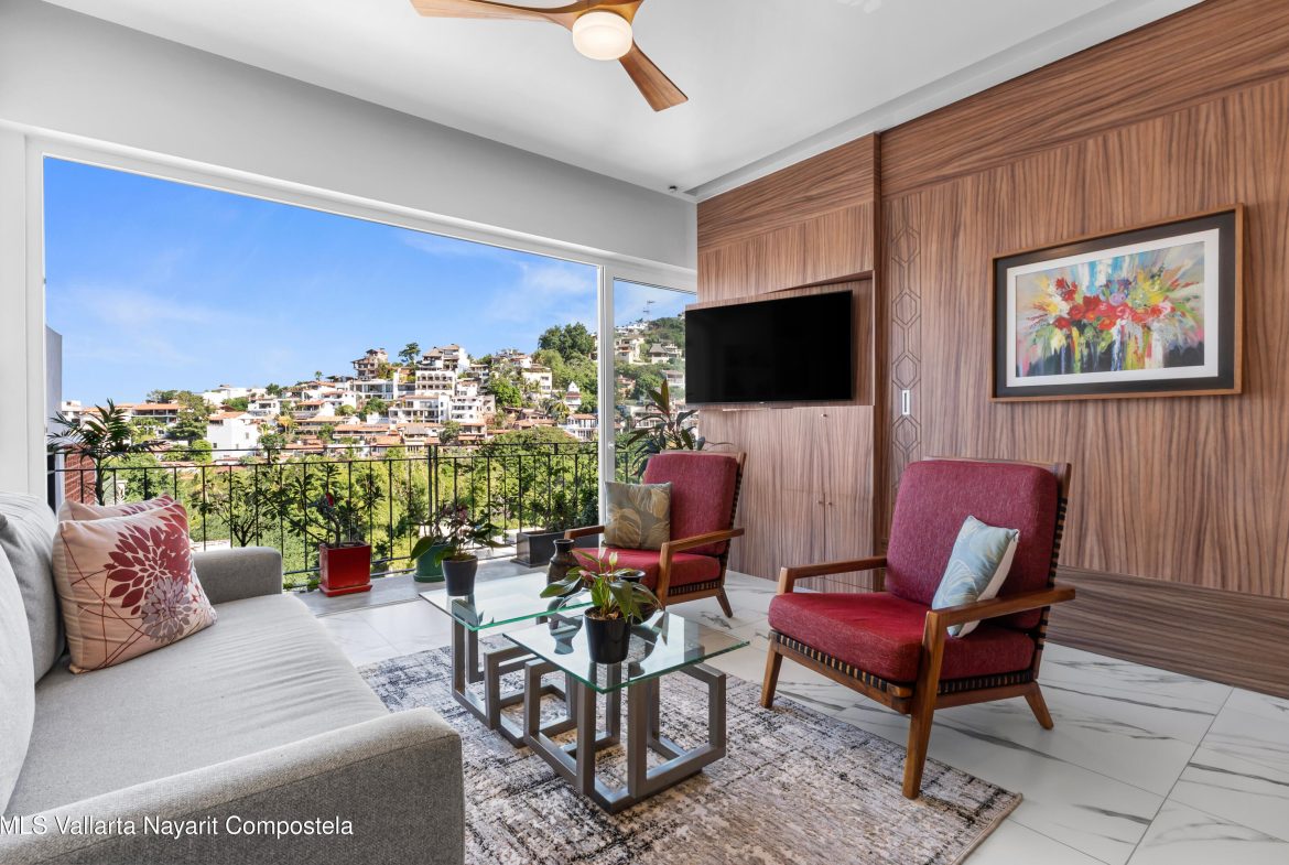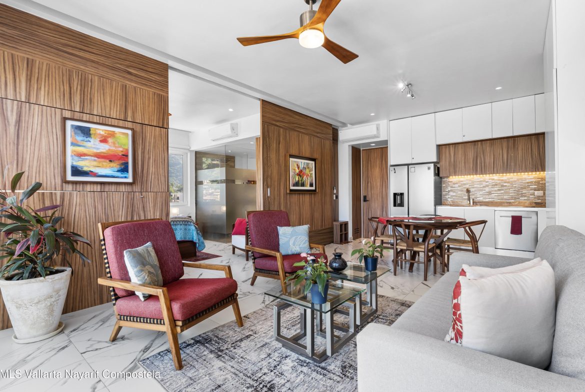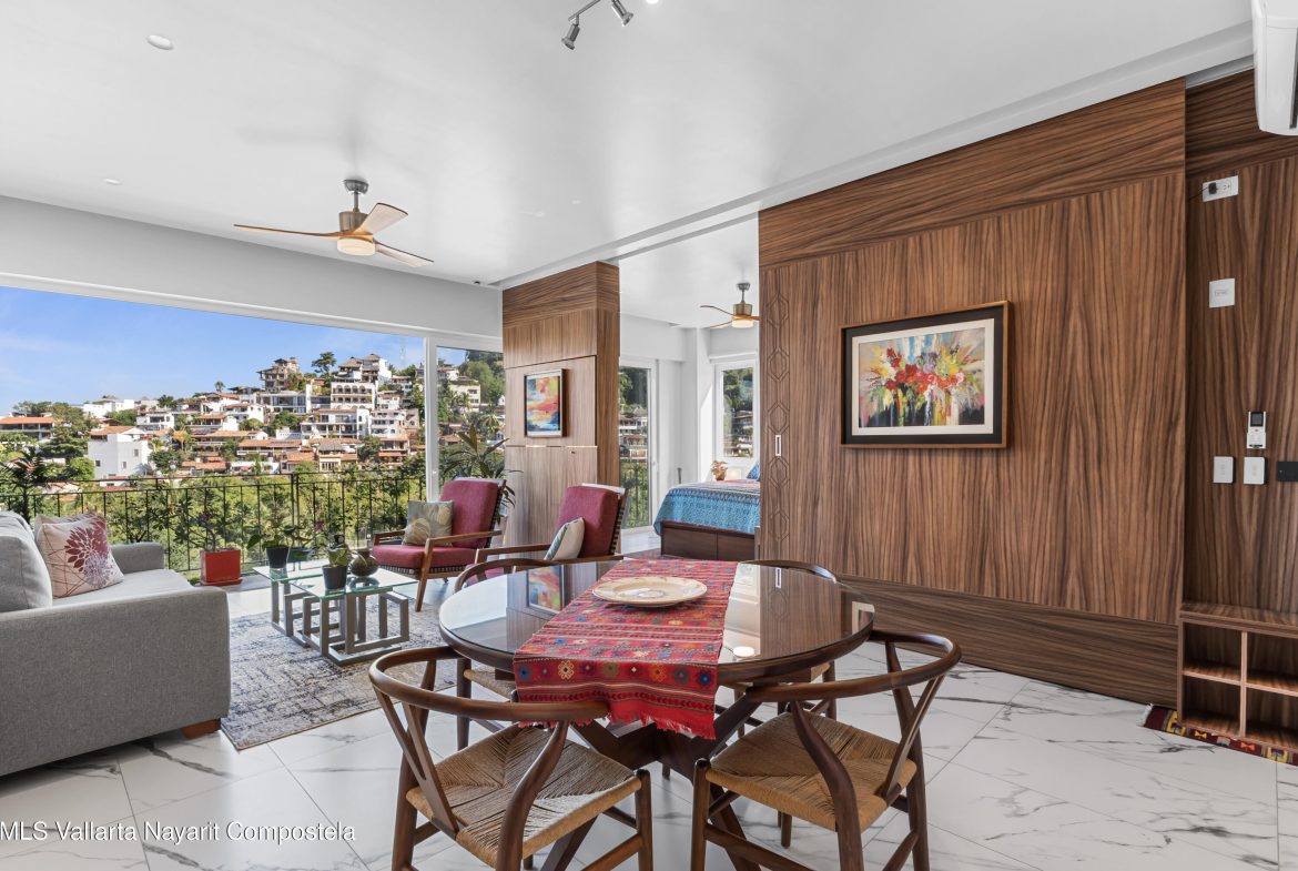 Avida 513 delivers an unparalleled, four-way panorama encompassing the Pacific Ocean, city lights, lush jungle, and Sierra Madre mountains from the heart of the Romantic Zone. This super studio residence boasts sleek modern finishes beautifully contrasted by classic, handcrafted parota furniture. An integrated murphy bed offers maximum flexibility, seamlessly transforming the space for living or entertaining.This unit is ideal for investors or part-time owners seeking strong income. Included is a deeded underground parking spot and a private storage locker–an irreplaceable amenity package in this area.