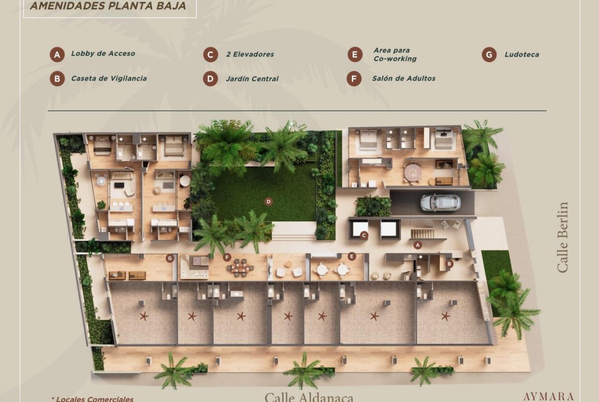 Aymara Versalles, ubicado en el centro de la Colonia Versalles, Sobre calle Aldanaca yBerlin, es un proyecto unico y exclusivo que consta de 43 espectaculares departamentos y7 locales comerciales con una propuesta y diseno inigualable. Los departamentos tienen un area desde 64.55 m2 hasta los 143.88 m2. Se configura el edificio de 12 unidades de unarecamara y 1.5 Banos (Tipo A). Hay 16 unidades de 2 recamaras 2 banos completos (Tipo B). 5 unidades de 2 recamaras 2.5 Banos completos (Tipo B+), y 10 unidades de 3 recamaras 3 banos completos (Tipo C).Los acabados premium, las amplias terrazas, las increibles areas comunes, las encantadoras vistas y todo aquello que conforma el proyecto lo hace ser la mejor Inversion