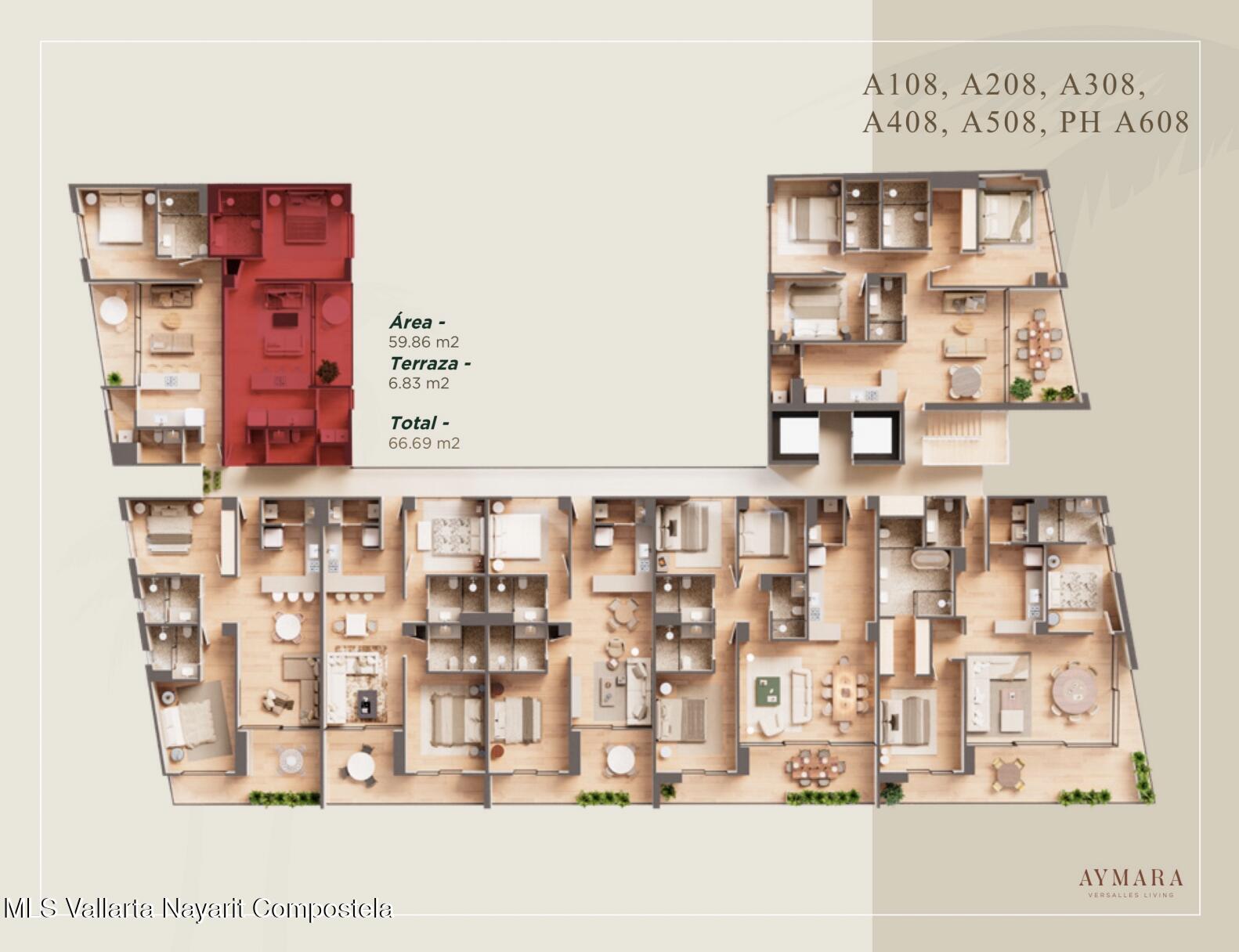 Aymara Versalles, ubicado en el centro de la Colonia Versalles, Sobre calle Aldanaca yBerlin, es un proyecto unico y exclusivo que consta de 43 espectaculares departamentos y7 locales comerciales con una propuesta y diseno inigualable. Los departamentos tienen un area desde 64.55 m2 hasta los 143.88 m2. Se configura el edificio de 12 unidades de unarecamara y 1.5 Banos (Tipo A). Hay 16 unidades de 2 recamaras 2 banos completos (Tipo B). 5 unidades de 2 recamaras 2.5 Banos completos (Tipo B+), y 10 unidades de 3 recamaras 3 banos completos (Tipo C).Los acabados premium, las amplias terrazas, las increibles areas comunes, las encantadoras vistas y todo aquello que conforma el proyecto lo hace ser la mejor Inversion