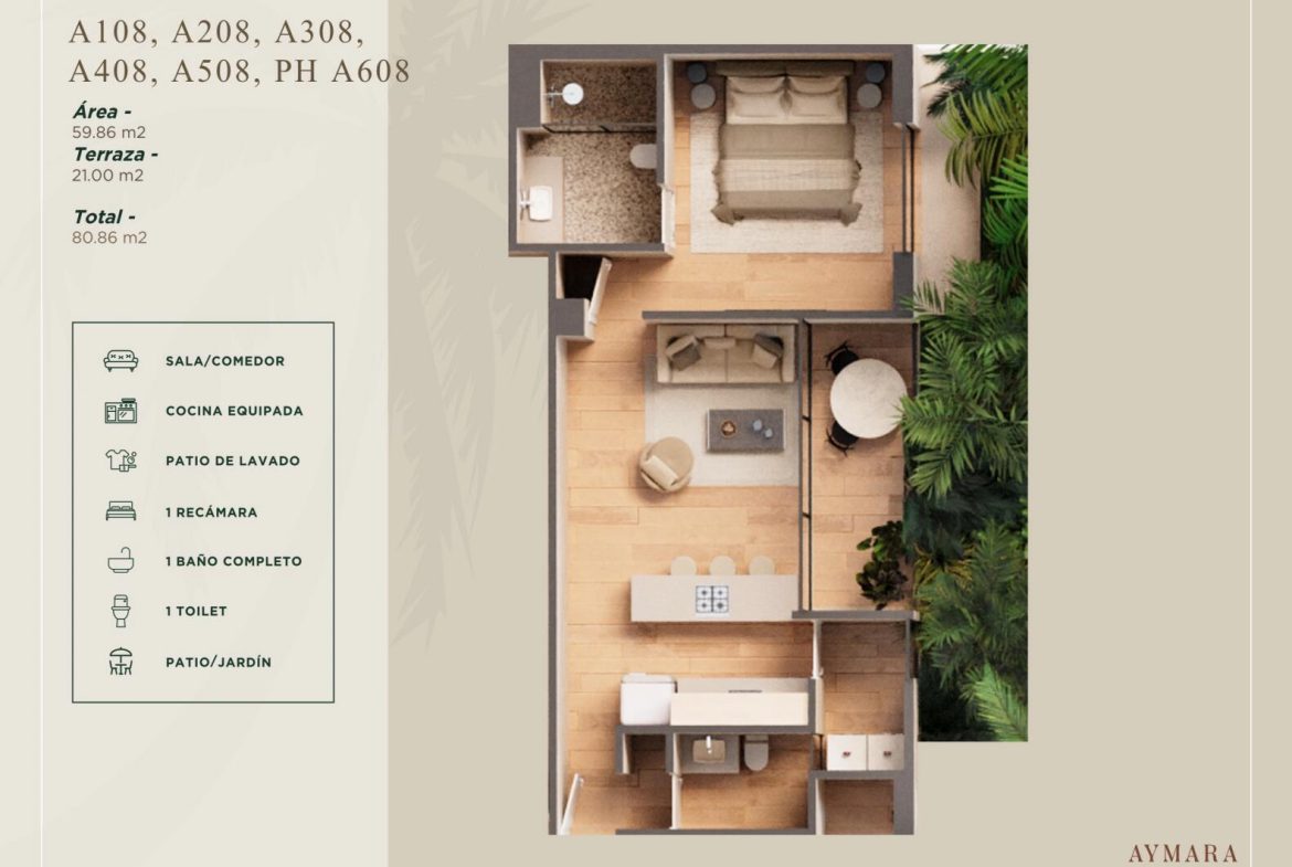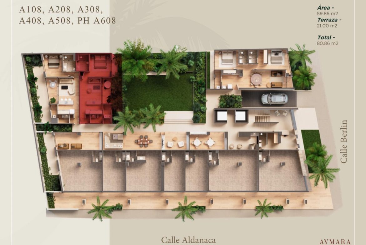 Aymara Versalles, ubicado en el centro de la Colonia Versalles, Sobre calle Aldanaca yBerlin, es un proyecto unico y exclusivo que consta de 43 espectaculares departamentos y7 locales comerciales con una propuesta y diseno inigualable. Los departamentos tienen un area desde 64.55 m2 hasta los 143.88 m2. Se configura el edificio de 12 unidades de unarecamara y 1.5 Banos (Tipo A). Hay 16 unidades de 2 recamaras 2 banos completos (Tipo B). 5 unidades de 2 recamaras 2.5 Banos completos (Tipo B+), y 10 unidades de 3 recamaras 3 banos completos (Tipo C).Los acabados premium, las amplias terrazas, las increibles areas comunes, las encantadoras vistas y todo aquello que conforma el proyecto lo hace ser la mejor Inversion