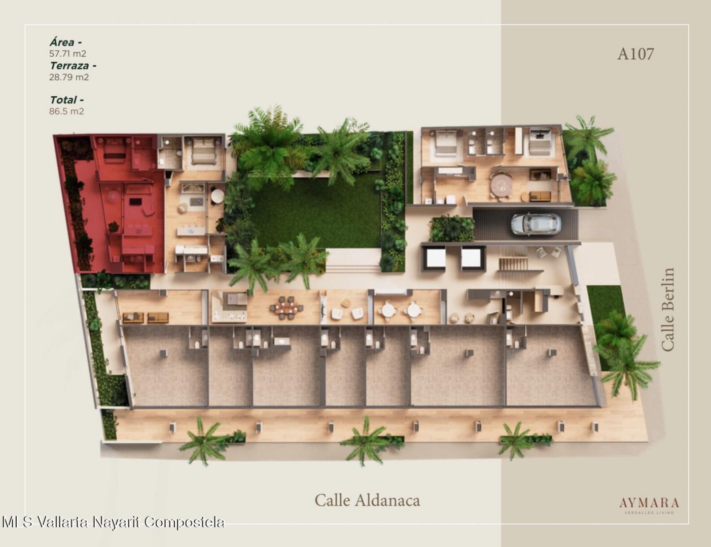 Aymara Versalles, ubicado en el centro de la Colonia Versalles, Sobre calle Aldanaca yBerlin, es un proyecto unico y exclusivo que consta de 43 espectaculares departamentos y7 locales comerciales con una propuesta y diseno inigualable. Los departamentos tienen un area desde 64.55 m2 hasta los 143.88 m2. Se configura el edificio de 12 unidades de unarecamara y 1.5 Banos (Tipo A). Hay 16 unidades de 2 recamaras 2 banos completos (Tipo B). 5 unidades de 2 recamaras 2.5 Banos completos (Tipo B+), y 10 unidades de 3 recamaras 3 banos completos (Tipo C).Los acabados premium, las amplias terrazas, las increibles areas comunes, las encantadoras vistas y todo aquello que conforma el proyecto lo hace ser la mejor Inversion