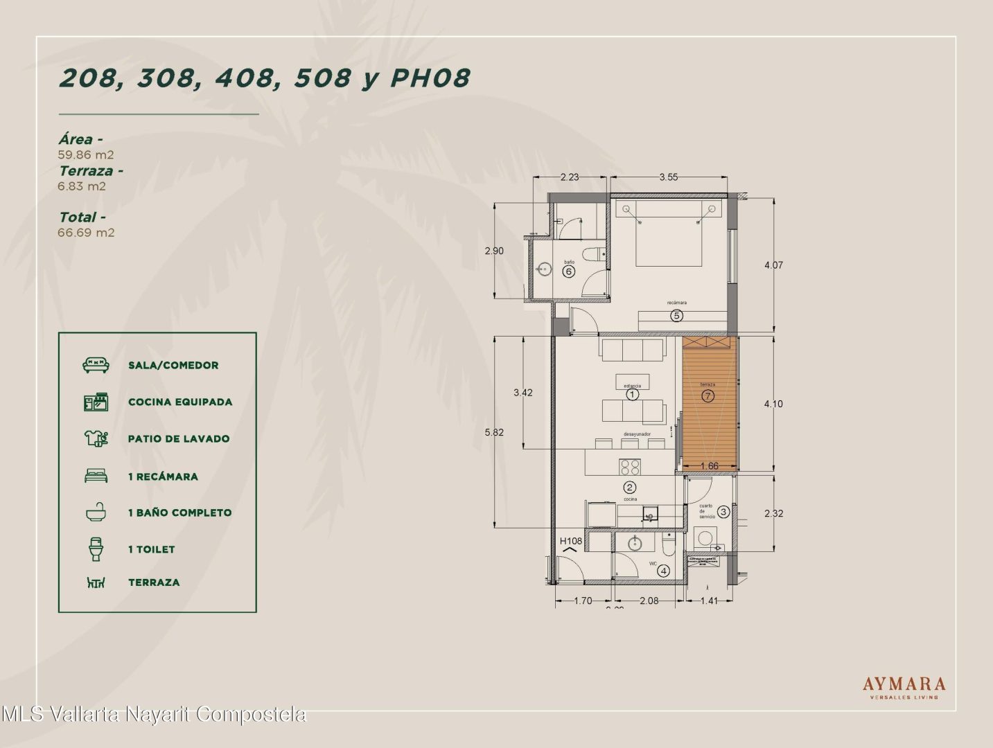 Aymara Versalles se encuentra en el corazon de la Colonia Versalles, en las calles Aldanaca y Berlin, una de las zonas de mas rapido crecimiento de Puerto Vallarta. El complejo cuenta con 43 unidades residenciales y una selecta variedad de practicos locales comerciales, dentro de un concepto moderno que combina un diseno cuidado, funcionalidad y una ubicacion muy conveniente. Las residencias tienen entre 64,55 m2 y 143,88 m2, con distribuciones de 1, 2 y 3 dormitorios disenadas tanto para una vida comoda como para un solido potencial de inversion. El proyecto ofrece acabados de alta calidad, amplias terrazas y acogedoras zonas comunes que complementan el dinamico estilo de