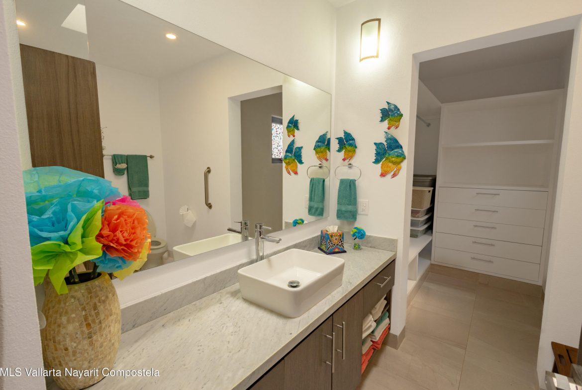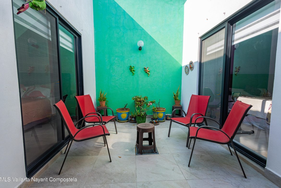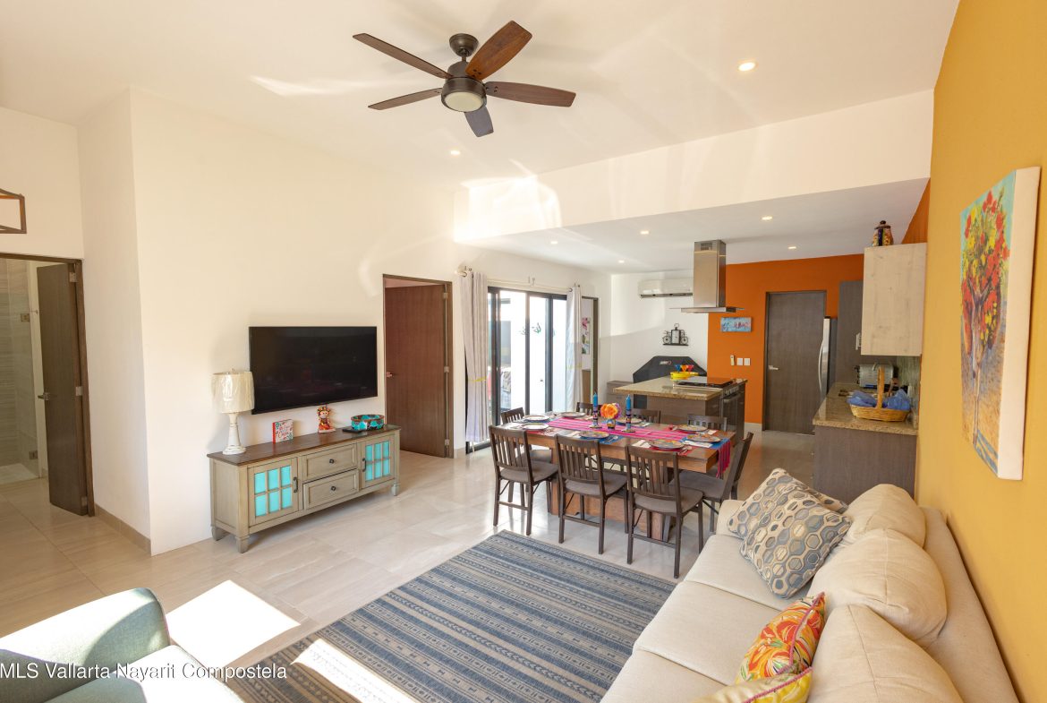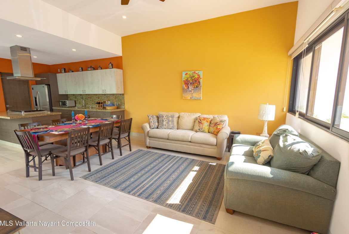 Acogedora casa de una planta en Jarretaderas: 2 recamaras, 2 banos, cocina integral, patio, cuarto de servicio y 2 estacionamientos. Se vende totalmente amueblada y equipada con 12 paneles solares, A/C, ventiladores y lavanderia. Coto con seguridad, alberca y asadores.
