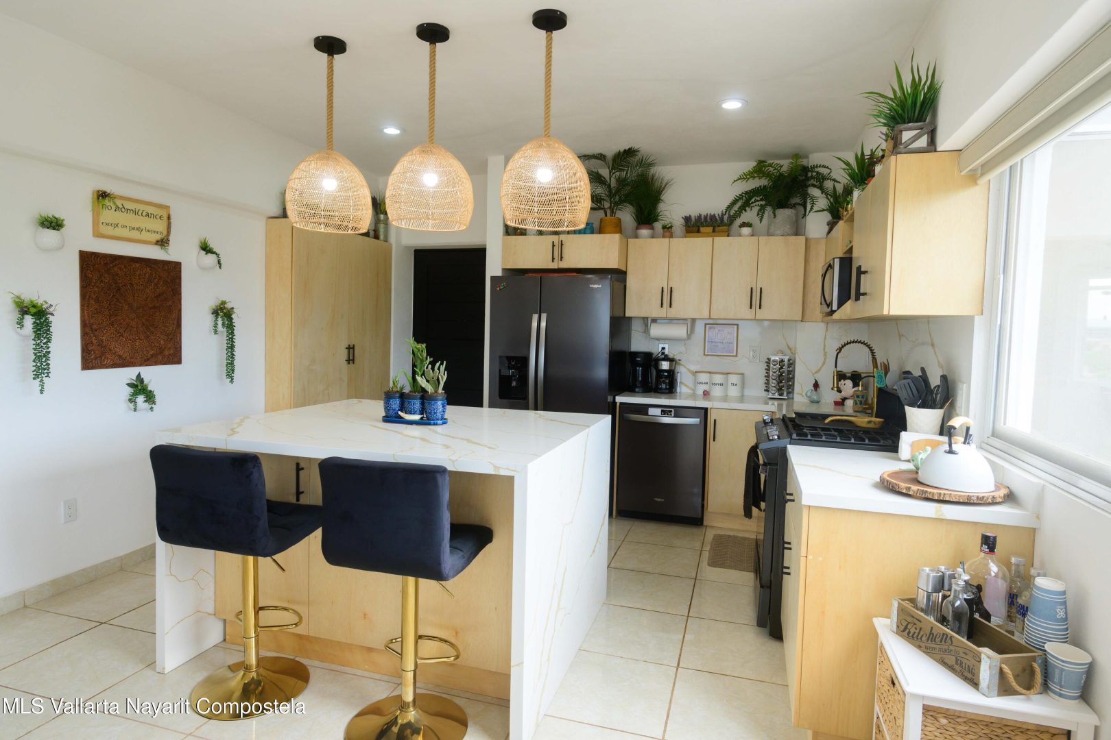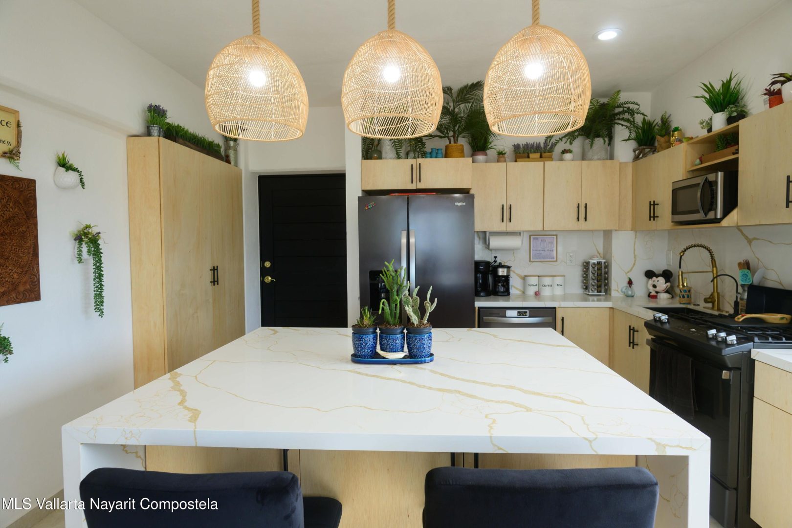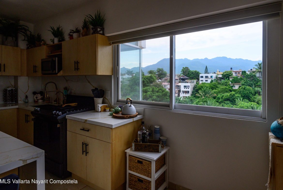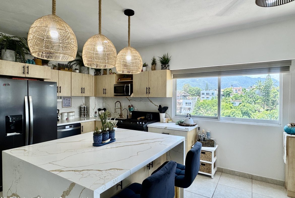 This beautifully remodeled 3-bed, 2-bathroom condo offers stunning panoramic views of the Sierra Madre mountains, and an ocean view on the horizon of the bay. It features a lock-off bedroom, making it an excellent option for both full-time living and rental income. This turn-key unit was fully renovated less than a year ago and comes furnished with new appliances & A/C units. Its smart corner layout allows for natural light and cross ventilation throughout the day. With only 24 units, 4 units per floor, the condo offers a peaceful and private atmosphere. Amenities include a rooftop pool, elevator, 1 deeded parking space, and is pet-friendly. Located in a traditional Mexican neighborhood, it’s perfect to live the local experience, just 10-15 minutes from the beach & Romantic Zone/Malecon.