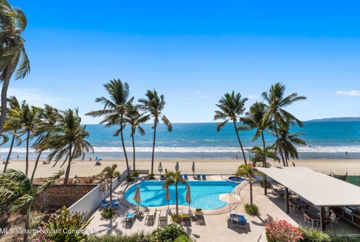 In English below.Bienvenido a una oferta exclusiva en el corazon de la codiciada Zona Dorada de Bucerias. Ubicado en un intimo complejo boutique de solo 16 unidades, esta propiedad frente a la playa ofrece la combinacion perfecta de privacidad, seguridad y una vibrante vida costera. Al salir de tu puerta, te encontraras rodeado de galerias de arte, restaurantes de clase mundial y tiendas boutique.Esta residencia en el tercer nivel es verdaderamente unica, meticulosamente personalizada durante la construccion por una estilista profesional. A diferencia de las unidades estandar, este hogar presume acabados de disenador y detalles arquitectonicos exclusivos que