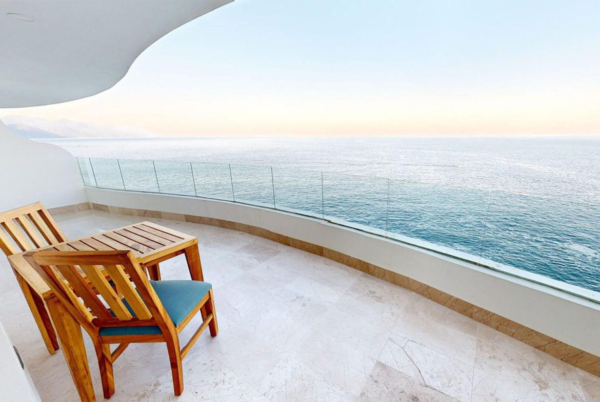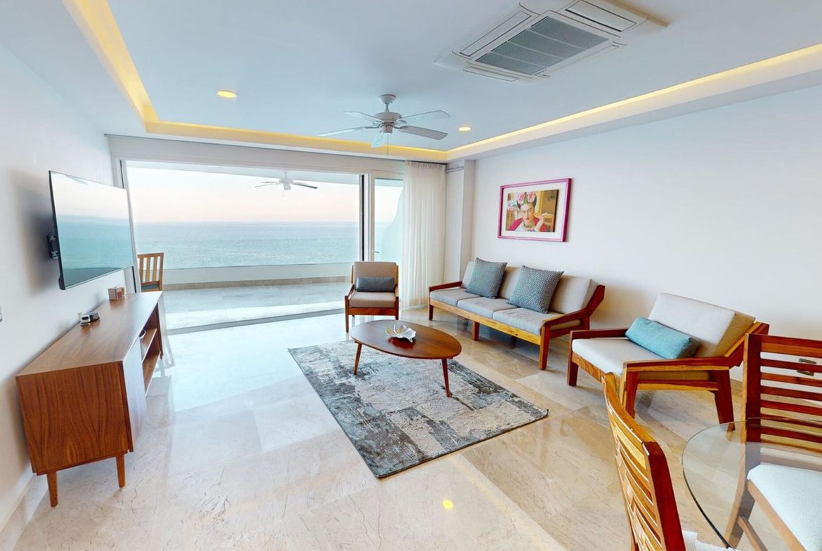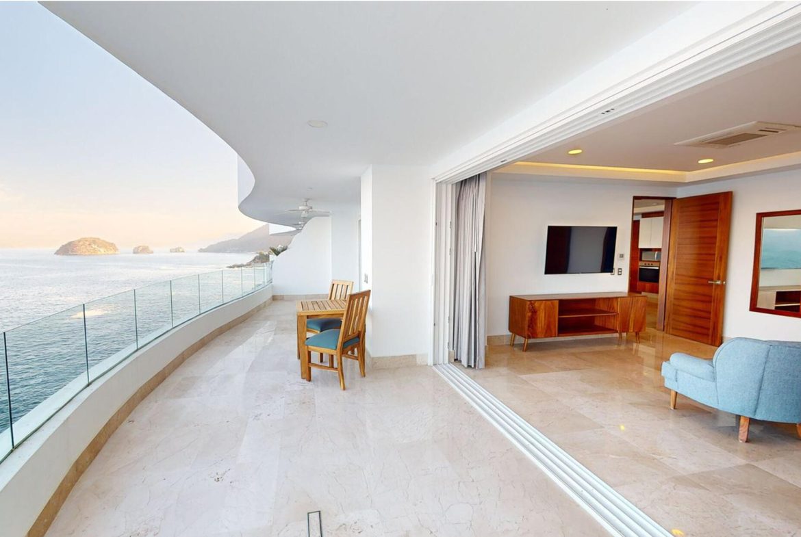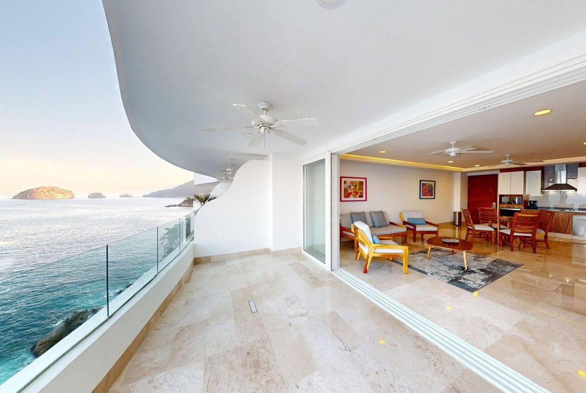 ENGLISH BELOW: Presentamos un lujoso y espacioso condominio de 1 recamara y 2 banos completos, diseno de lujo y decorado a la venta en la costa sur de Puerto Vallarta, Mexico, listo para ocupacion inmediata. La arquitectura del edificio es un simbolo de calidad en todo momento. Cada momento en este condominio Blue Horizon es una oportunidad para sumergirse en la elegancia, la serenidad y la belleza natural. Tiene la sensacion de estar en un yate de lujo, navegando por el oceano con abundantes vistas al mar desde todas partes. Esta unidad del septimo piso meticulosamente disenada y decorada ofrece una experiencia incomparable de vida frente al mar. La terraza se siente como una ola mientras ves pasar los barcos, contemplas el Parque Marino Los Arcos y literalmente observas a las ballenas
