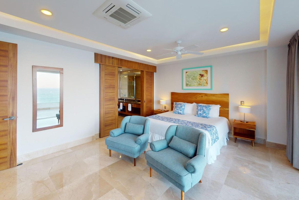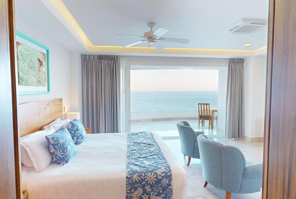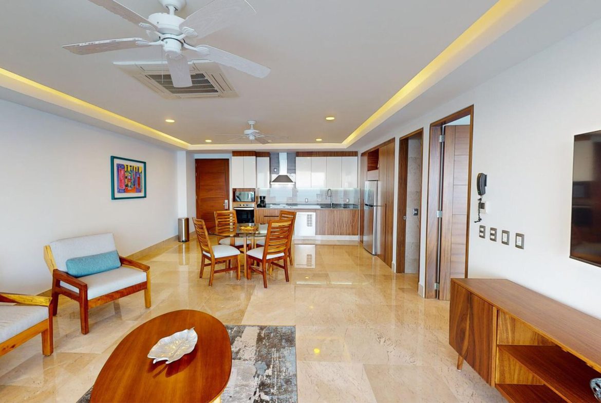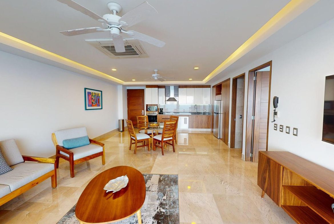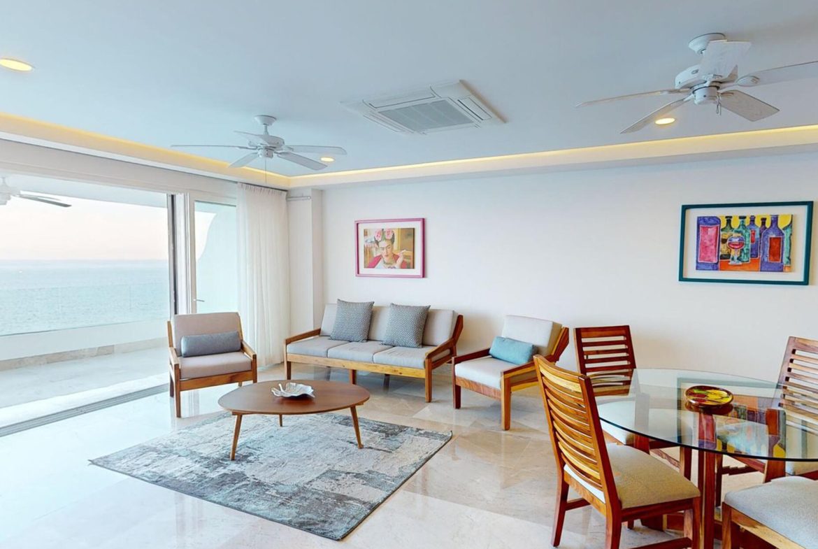 ENGLISH BELOW: Presentamos un lujoso y espacioso condominio de 1 recamara y 2 banos completos, diseno de lujo y decorado a la venta en la costa sur de Puerto Vallarta, Mexico, listo para ocupacion inmediata. La arquitectura del edificio es un simbolo de calidad en todo momento. Cada momento en este condominio Blue Horizon es una oportunidad para sumergirse en la elegancia, la serenidad y la belleza natural. Tiene la sensacion de estar en un yate de lujo, navegando por el oceano con abundantes vistas al mar desde todas partes. Esta unidad del septimo piso meticulosamente disenada y decorada ofrece una experiencia incomparable de vida frente al mar. La terraza se siente como una ola mientras ves pasar los barcos, contemplas el Parque Marino Los Arcos y literalmente observas a las ballenas