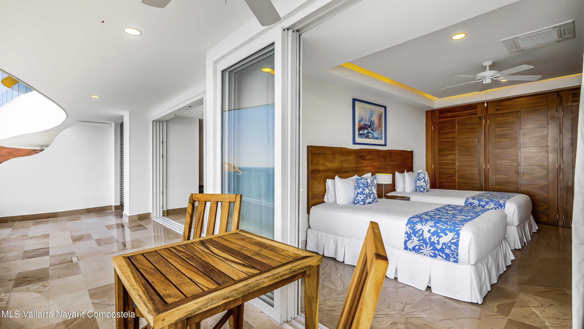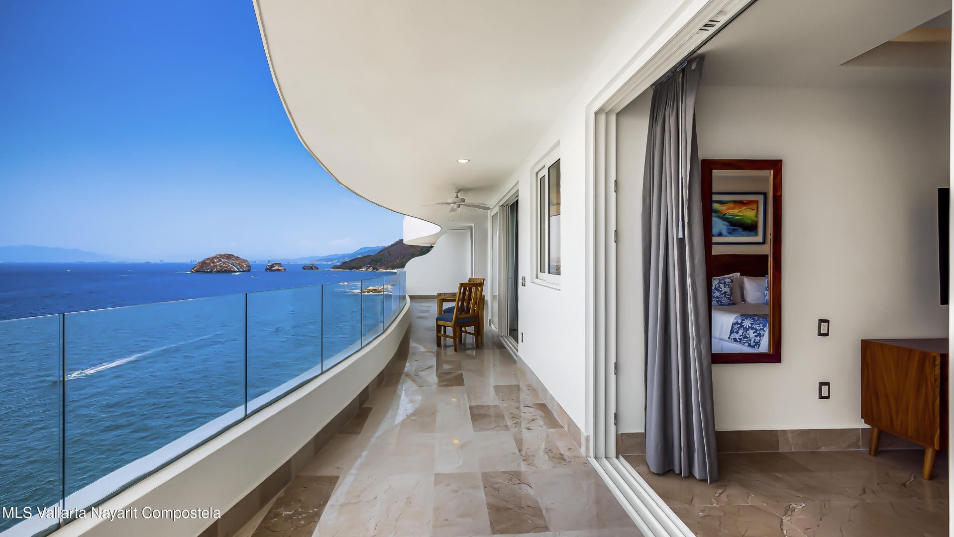 [ENGLISH BELOW] Blue Horizon 903Ubicado en el piso 9, Blue Horizon 903 ofrece espectaculares vistas panoramicas al mar, a la ciudad de Puerto Vallarta, a las montanas y a Los Arcos.Esta hermosa residencia cuenta con 2 recamaras, cada una con su bano completo, ademas de un tercer bano completo, brindando comodidad y funcionalidad tanto para propietarios como para invitados.El condominio tiene una distribucion luminosa y ventilada, con vistas al mar que crean un ambiente tranquilo y elevado.La cuota de mantenimiento incluye servicio de limpieza y transporte tipo shuttle a Puerto Vallarta, lo que agrega gran conveniencia a la vida diaria.