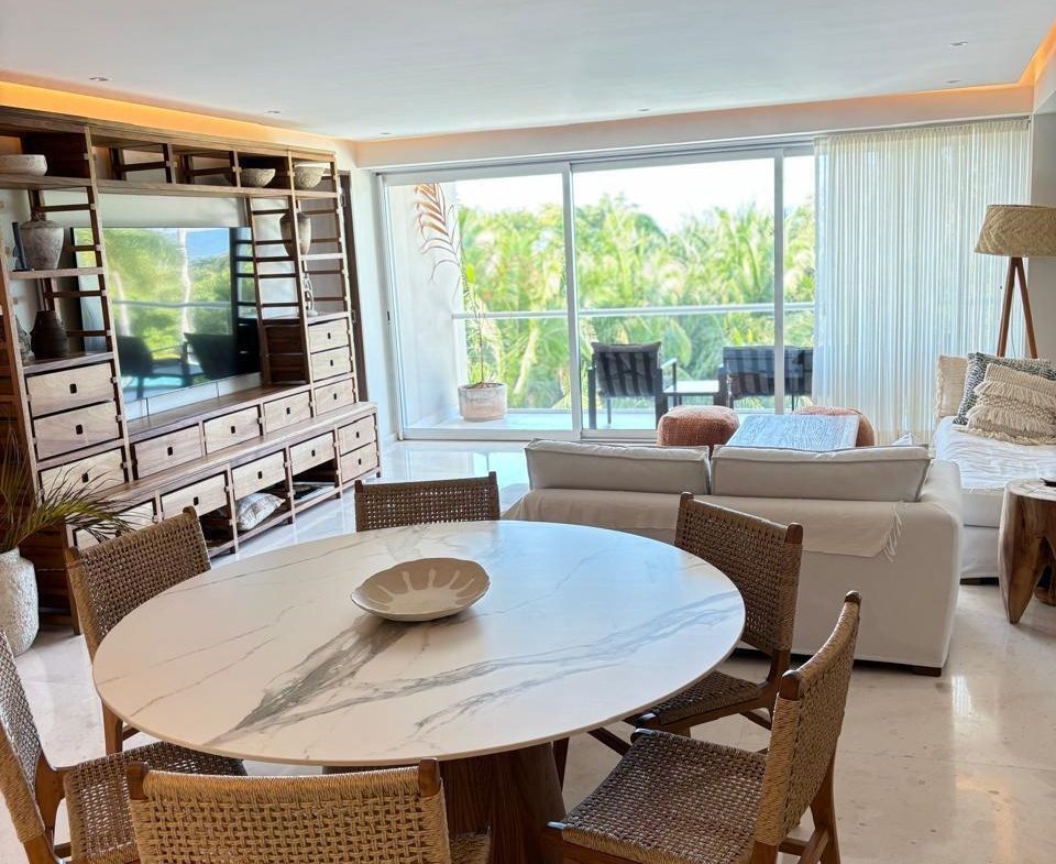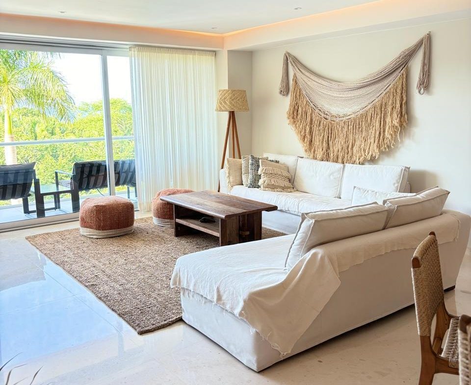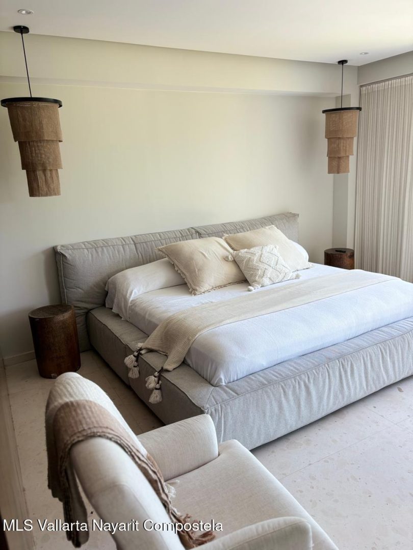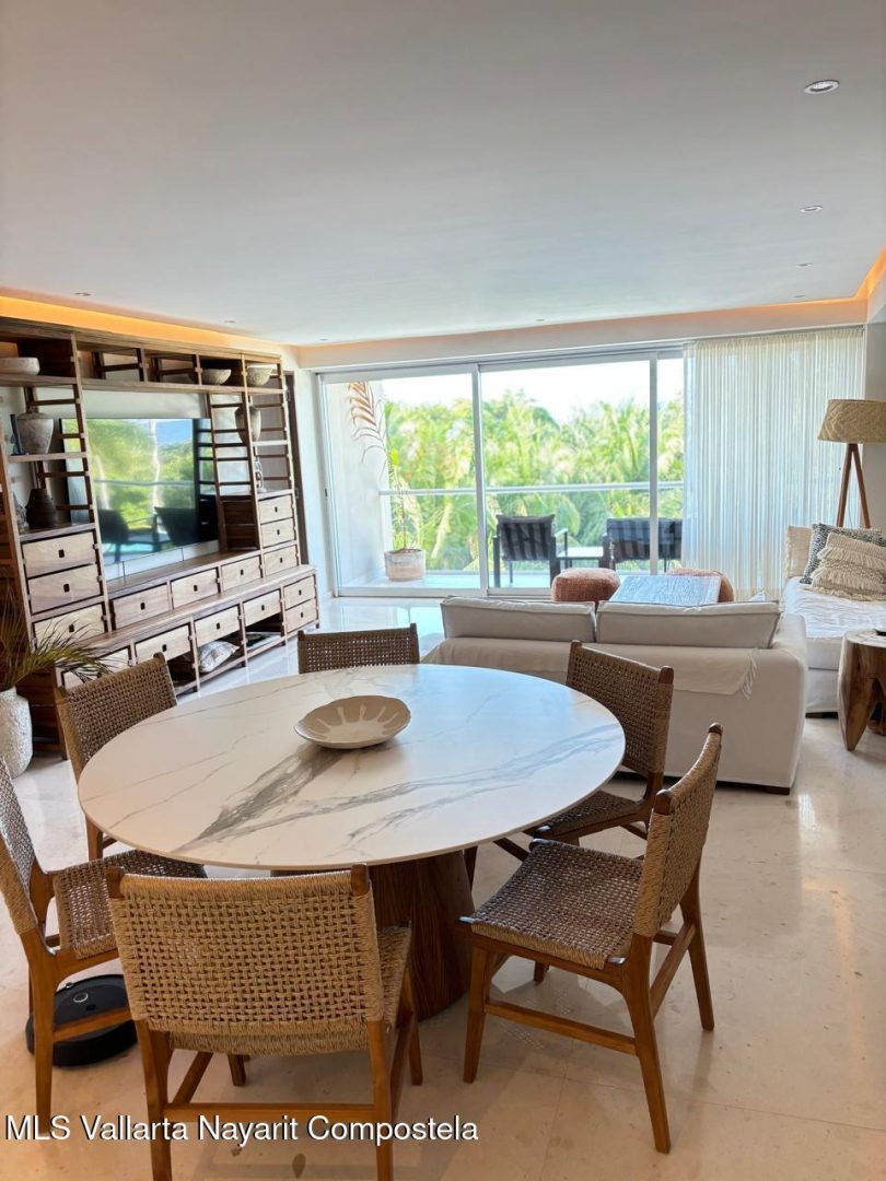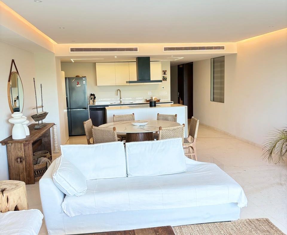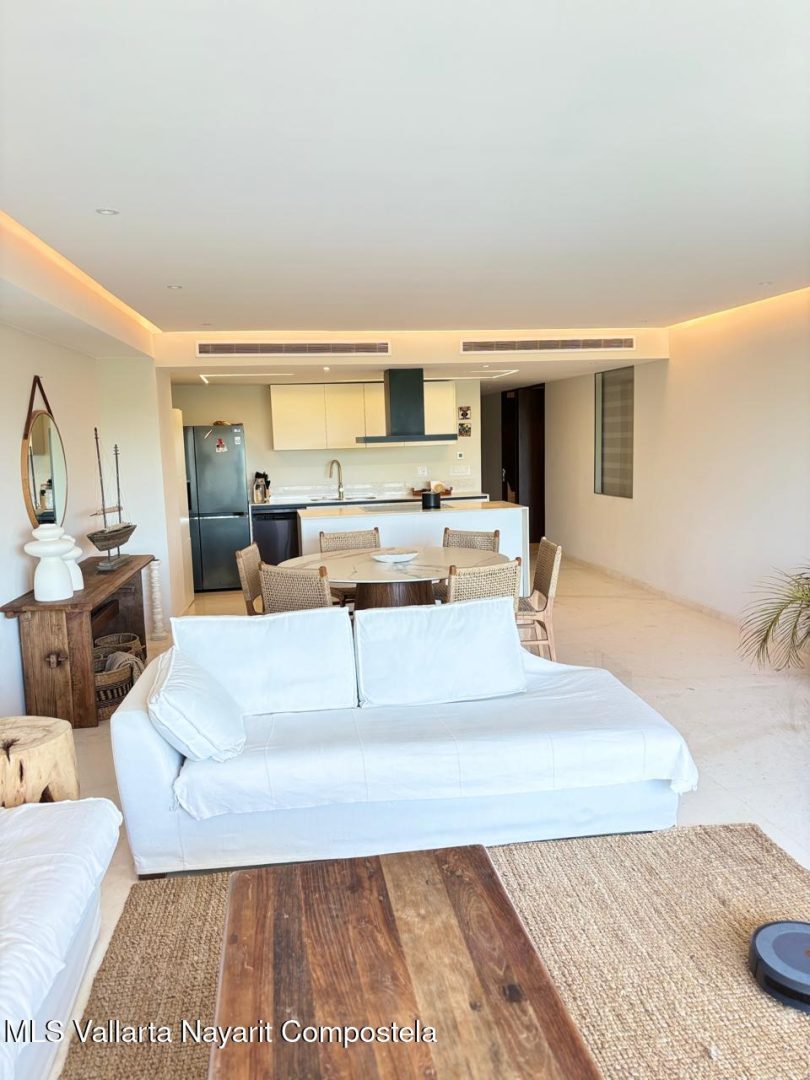 A 4 bedroom and 3 full bathrooms in Bolongo Punta de Mita. The place is Beach front and Bolongo has many amenities for example 7 pools, kids club, spa, 3 restaurants, gym, work lounge and a lobby. The condo has 164m2 and comes with furniture included. The place includes 2 parking lots.