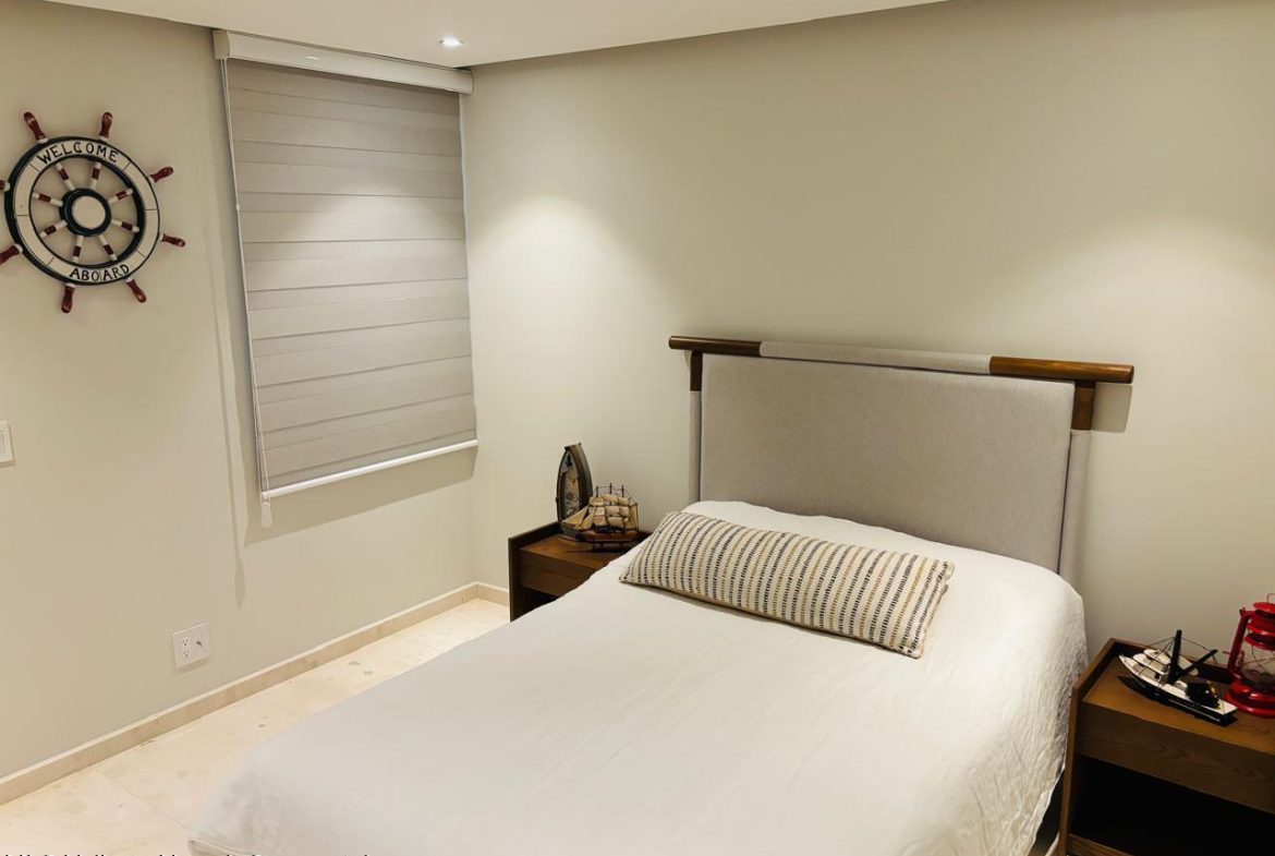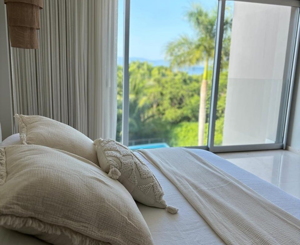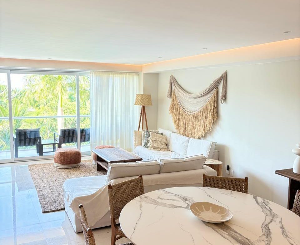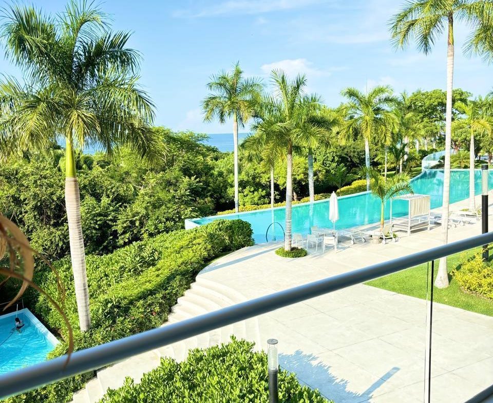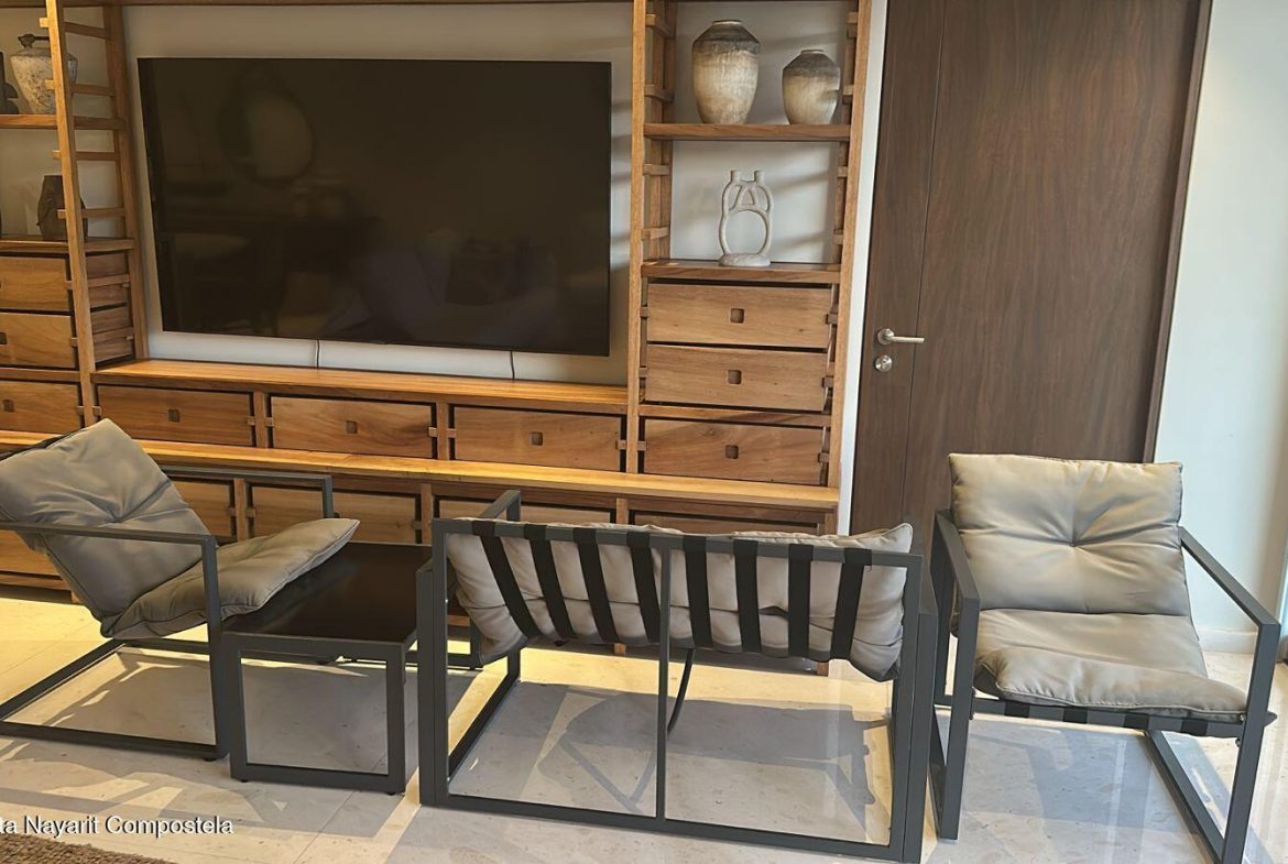 A 4 bedroom and 3 full bathrooms in Bolongo Punta de Mita. The place is Beach front and Bolongo has many amenities for example 7 pools, kids club, spa, 3 restaurants, gym, work lounge and a lobby. The condo has 164m2 and comes with furniture included. The place includes 2 parking lots.