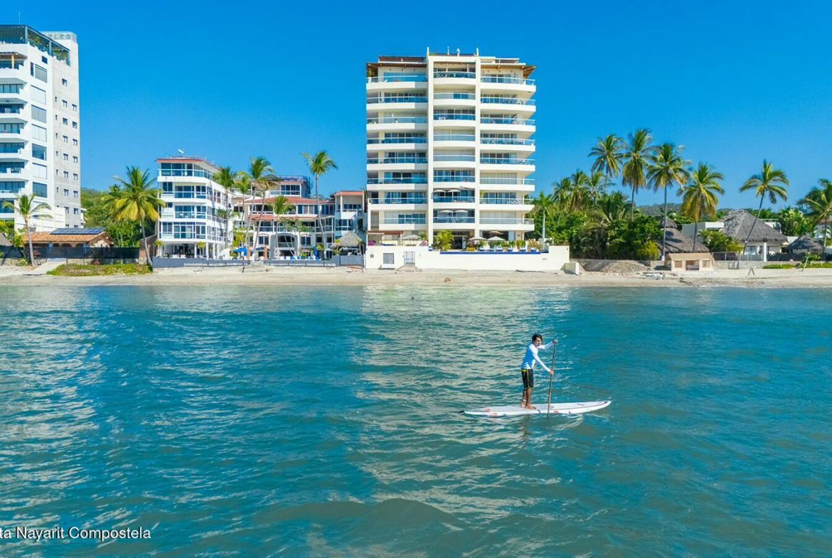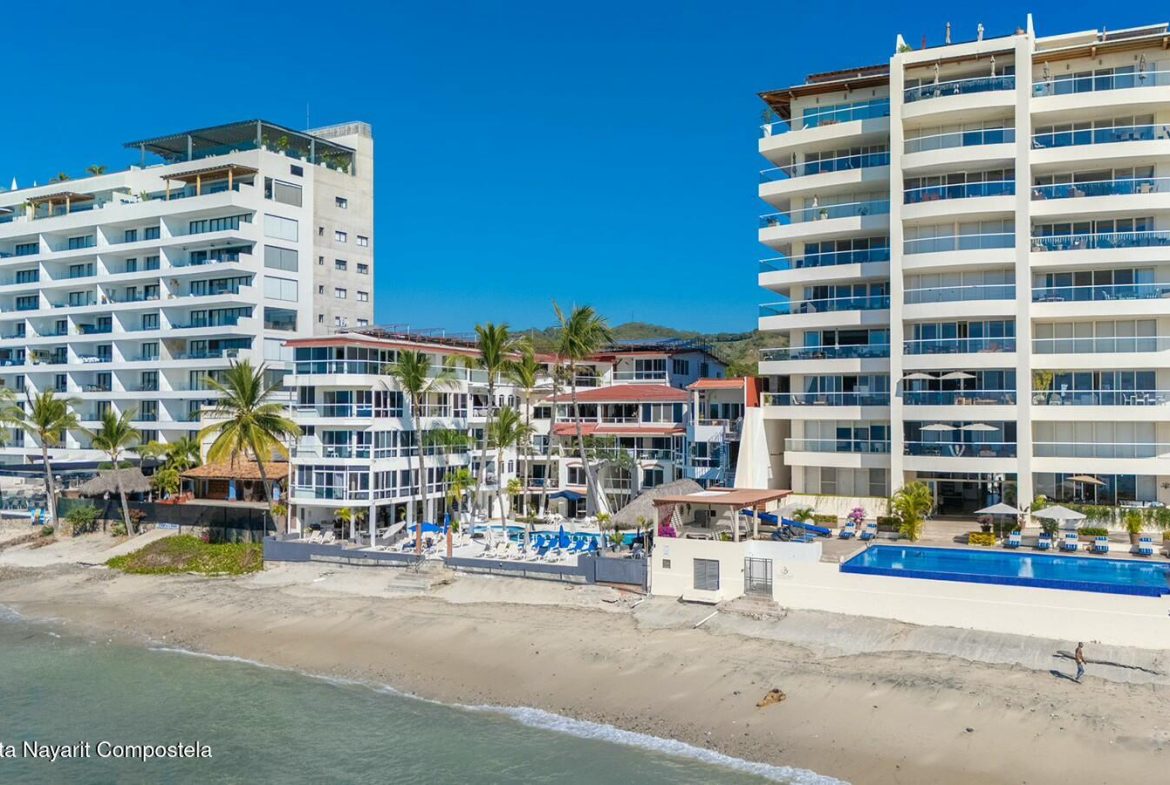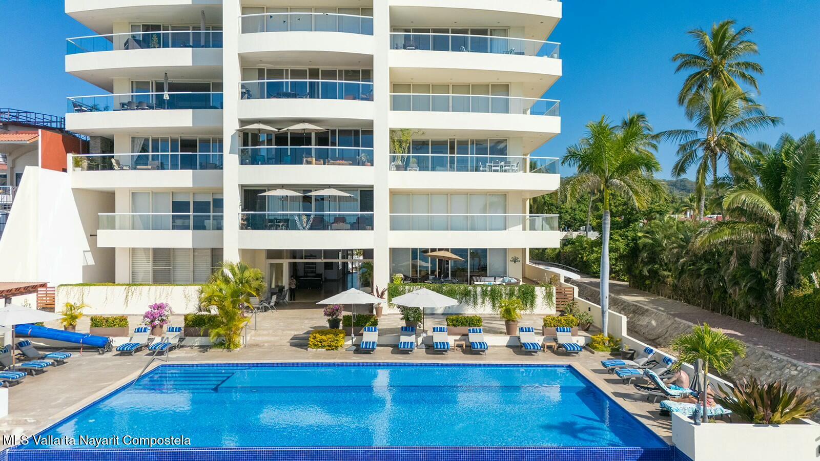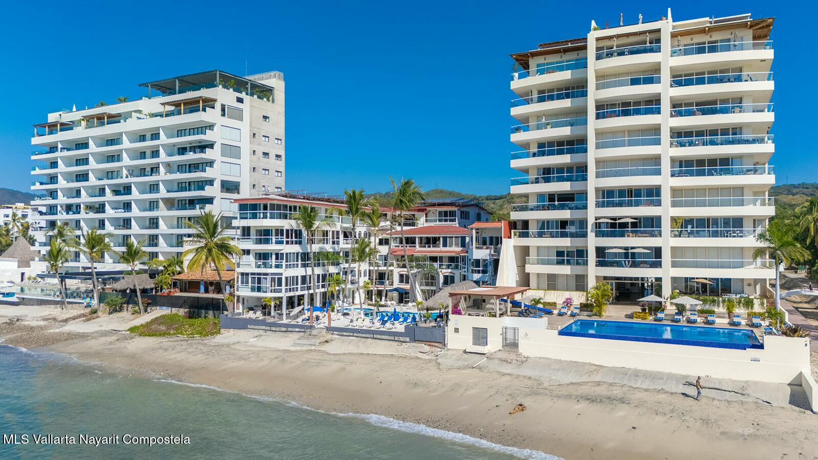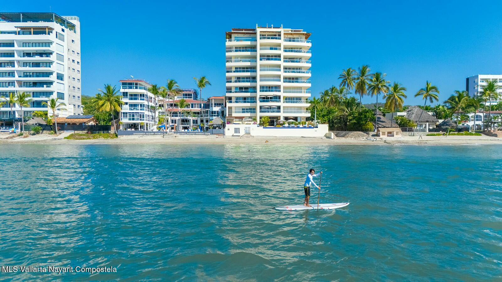 BUCERIAS GRAND PB-APrecious indoor-outdoor living is offered in this sprawling condo with three bedrooms, a studio and four bathrooms just steps from the sandy Bucerias beach in the quiet oceanside residential area north of centro know as Playas de Huanacaxtle. This condo lives like a house, with over 3,600 square feet and has direct access to the beautiful heated pool, lounge and barbeque area. It’s strategically elevated to give it privacy while enjoying endless ocean views from its 41 linear feet of L-shaped windows that wrap around its expansive living, dining and kitchen. It’s terrace frontage spans almost 30 feet. The changing skyline of Vallarta and La Cruz include dramatic sunsets that bathe these living spaces.