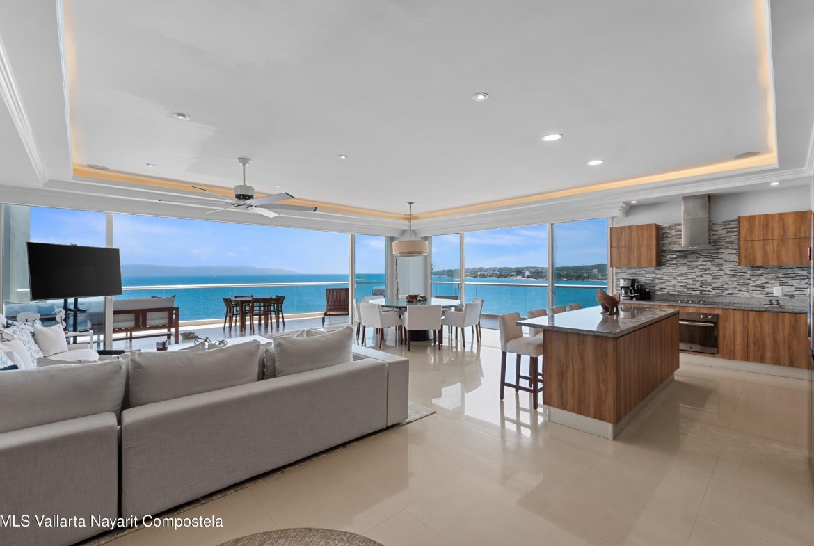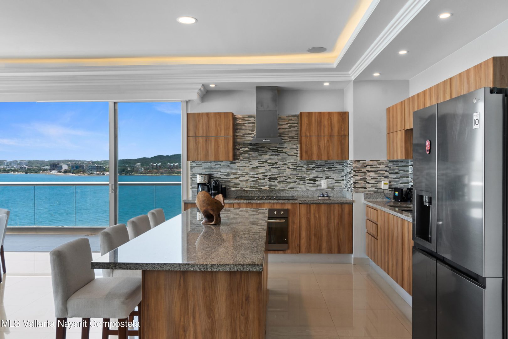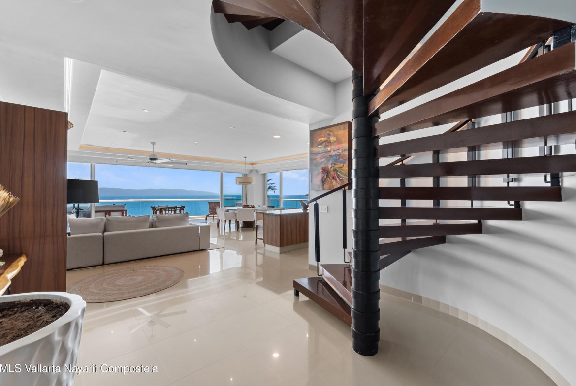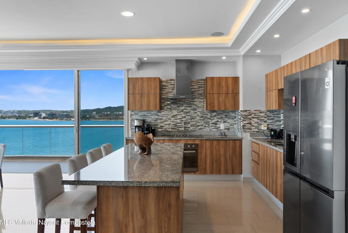 Este hermoso Penthouse de dos niveles en Bucerias ofrece una experiencia de vida frente al mar verdaderamente excepcional. Con tres amplias recamaras, el diseno de este hogar combina elegancia, funcionalidad y un estilo contemporaneo que se adapta perfectamente a quienes buscan comodidad sin renunciar al lujo.Cada rincon del departamento ha sido cuidadosamente disenado para aprovechar al maximo la luz natural y las espectaculares vistas al mar. Desde cualquier espacio se puede ver, sentir y oler la brisa marina, creando una atmosfera relajante y acogedora. La decoracion moderna armoniza con el entorno costero, generando un ambiente sofisticado pero calido.