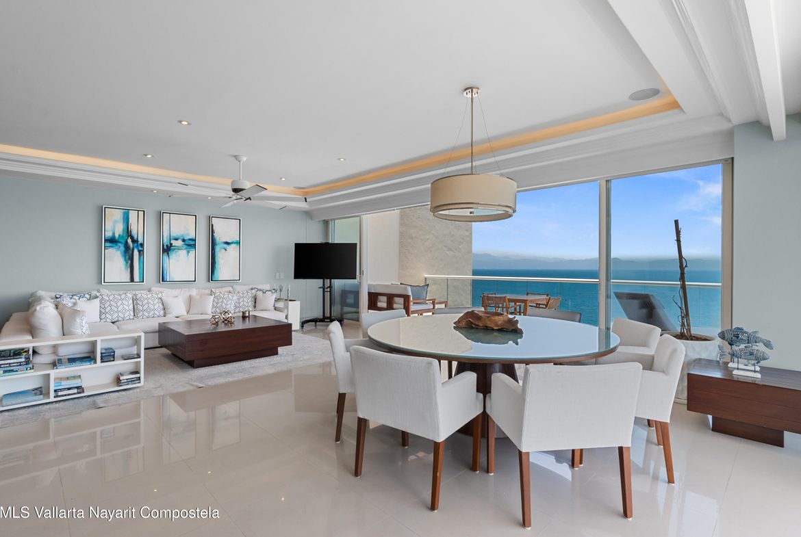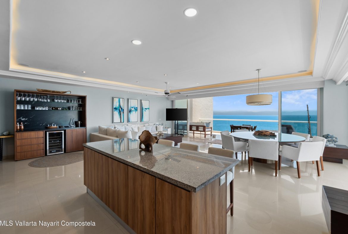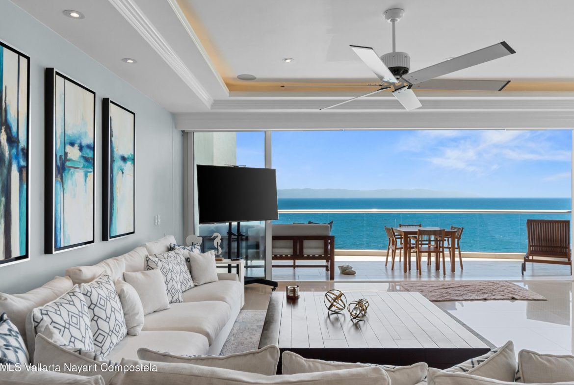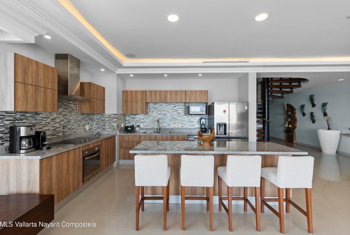 Este hermoso Penthouse de dos niveles en Bucerias ofrece una experiencia de vida frente al mar verdaderamente excepcional. Con tres amplias recamaras, el diseno de este hogar combina elegancia, funcionalidad y un estilo contemporaneo que se adapta perfectamente a quienes buscan comodidad sin renunciar al lujo.Cada rincon del departamento ha sido cuidadosamente disenado para aprovechar al maximo la luz natural y las espectaculares vistas al mar. Desde cualquier espacio se puede ver, sentir y oler la brisa marina, creando una atmosfera relajante y acogedora. La decoracion moderna armoniza con el entorno costero, generando un ambiente sofisticado pero calido.