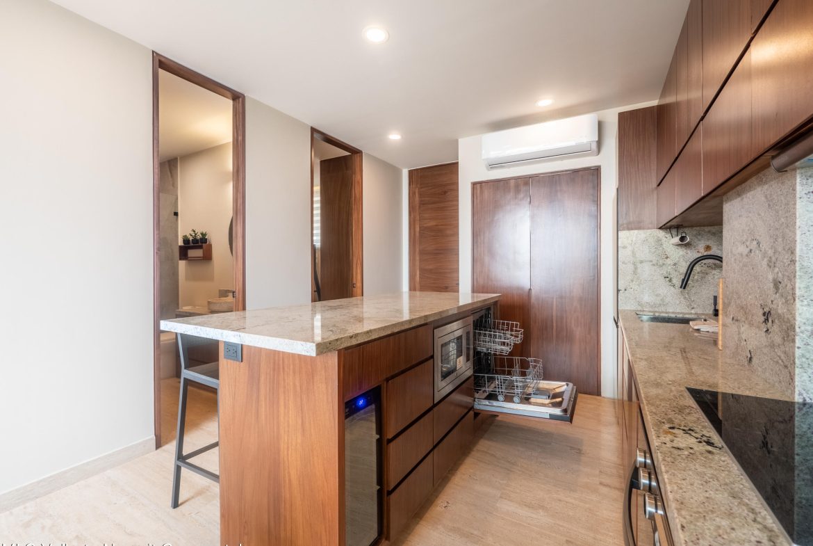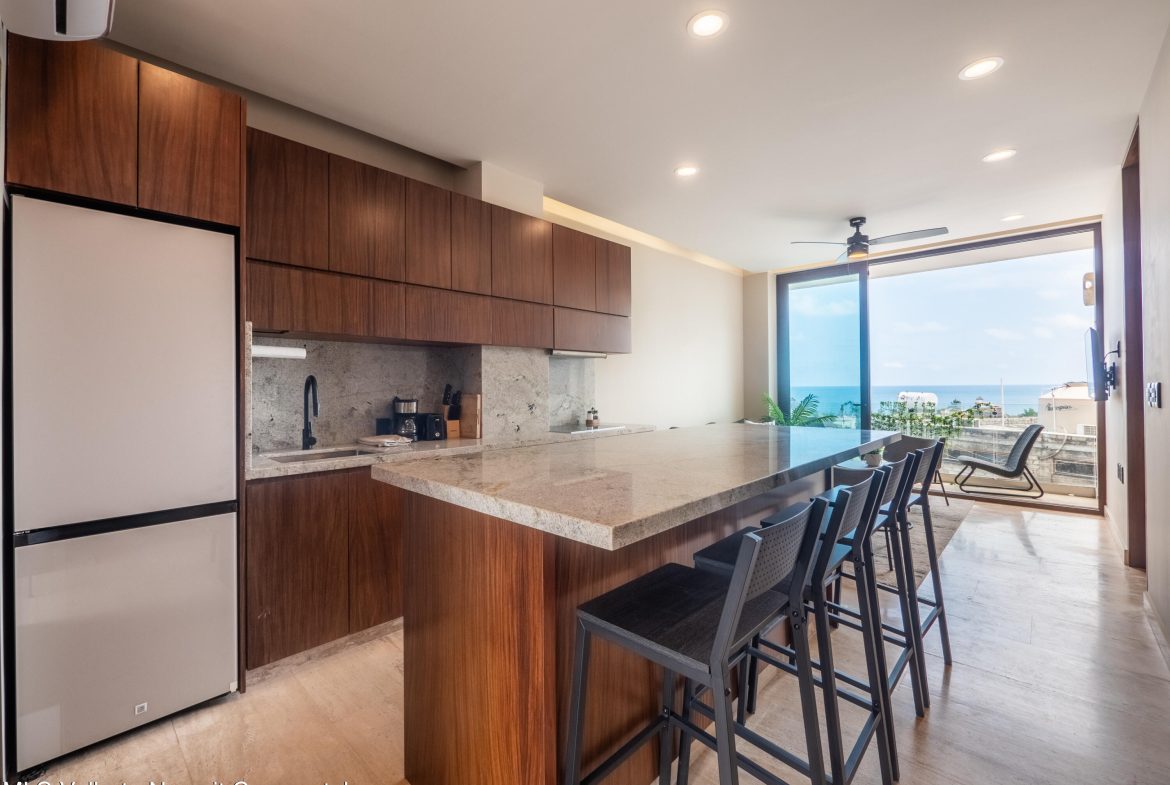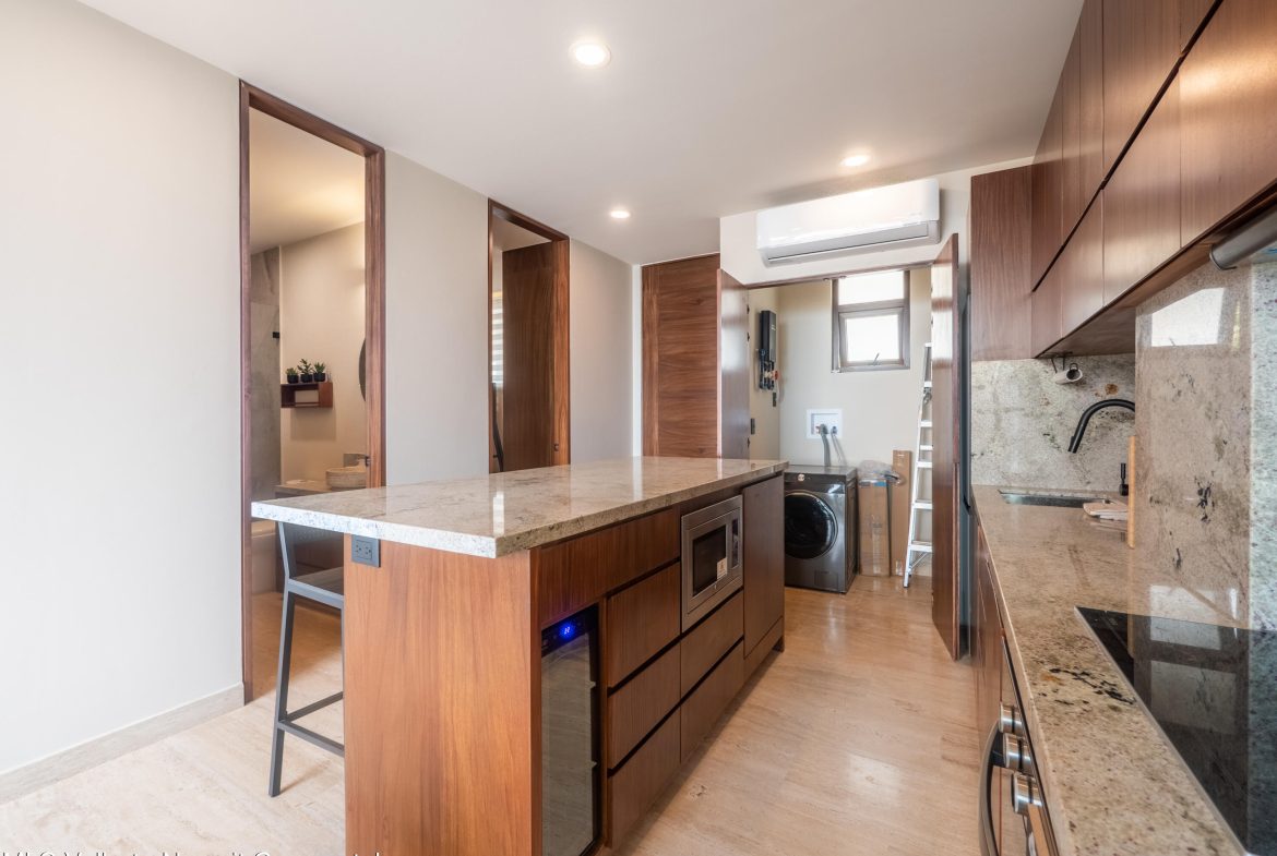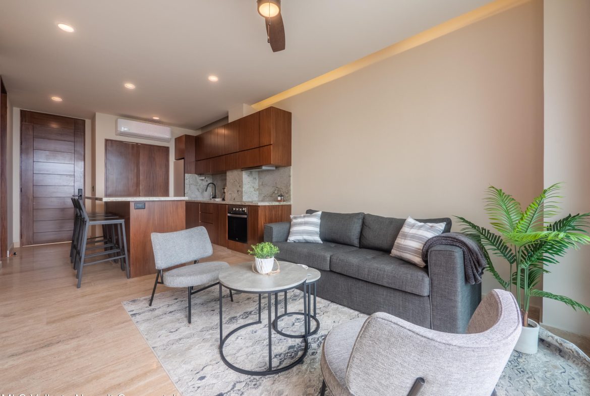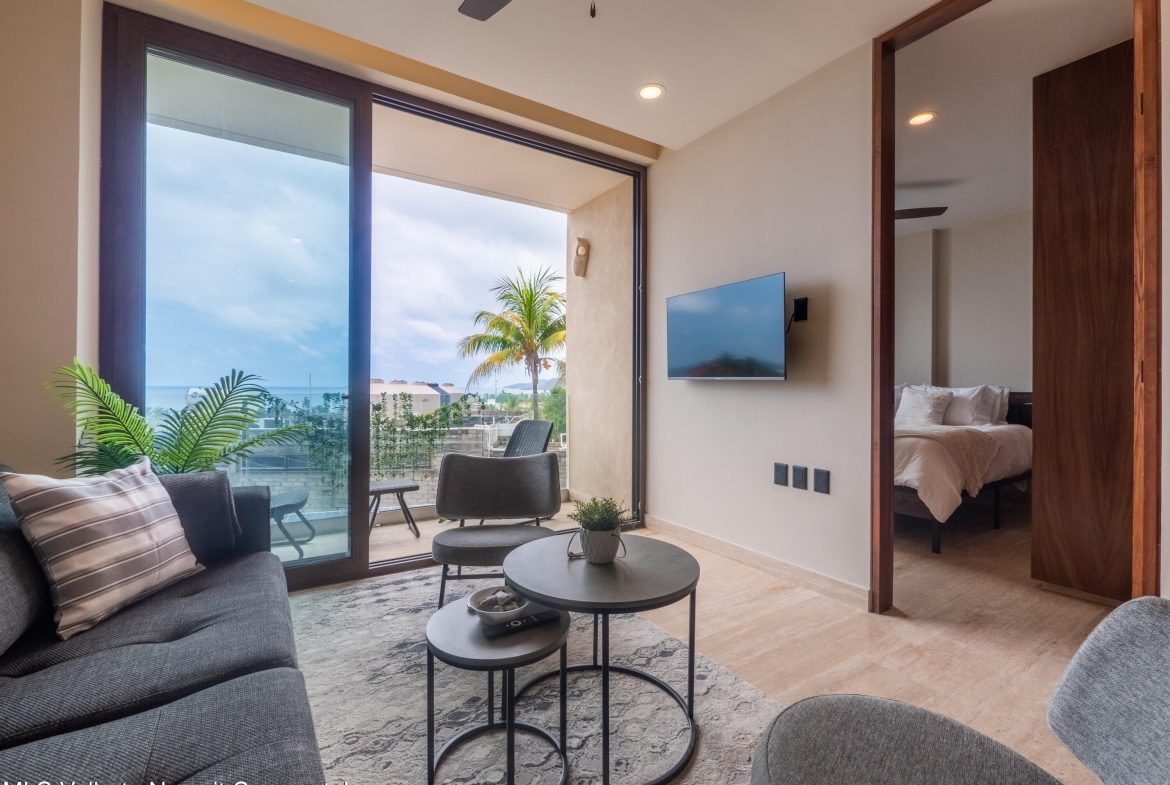 Caivama unit 211 is a completed, furnished unit ready to use with great rental income potential. Caivama is THE luxury stay in Sayulita with amenities like no other. Only 1.5 blocks to the beach! Rooftop amenities with ocean & mountain views – YES, each item is a rooftop amenity! ● Saltwater heated infinity pool ● Bar and lounge ● Hammock lounge ● Hot tub ● Gym and yoga center Other building amenities: ● Family pool and BBQ ● Valet & Private parking lot ● Elevators ● Lobby concierge ● Surfboard storage and entry level shower ● In-building water plant Unit #211 is a 2 BR, 2 bath (63.84 sq m) with ocean and mountain views located just steps from all that Sayulita has to offer.