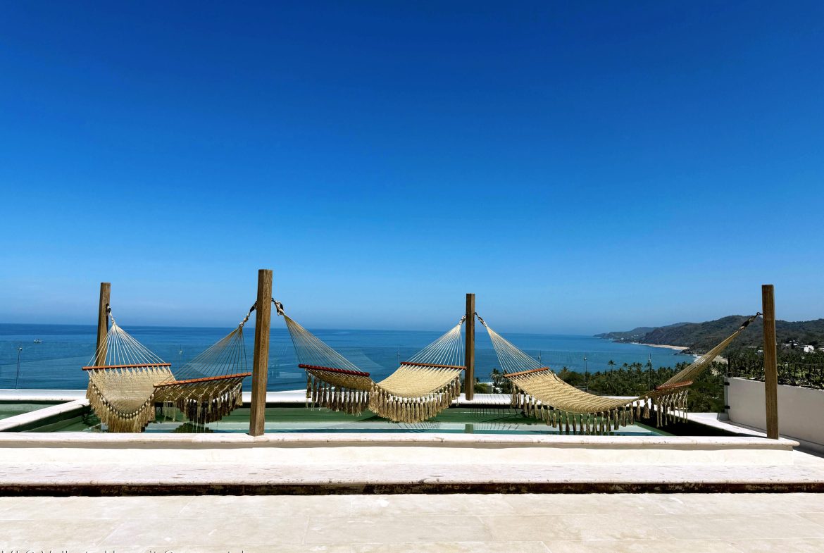 Unit 431 in Tower 4 is a sophisticated 2-bedroom, 2-bathroom. It boasts an Italian-style kitchen with granite countertops and Parota wood cabinetry, an open living area, a king-size master suite and a queen-size second bedroom, modern baths with European-style fixtures, and contemporary finishes like marble flooring, mosaic accents and European PVC double-pane windows. Climate comfort is ensured by inverter minisplit AC and instant water heating. The unit features a private plunge pool on one terrace and the other terrace offers serene ocean and jungle view. The building’s upscale amenities–such as rooftop infinity pool and bar, hammock lounges, fitness and yoga deck, family pool, surfboard storage, co-working space, pet garden, and valet parking–complement the unit.