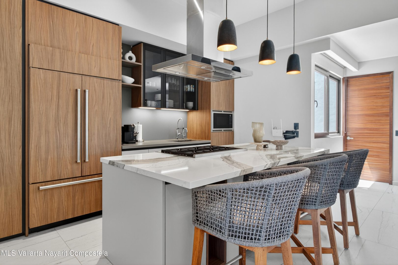 Welcome to your private retreat in La Cruz de Huanacaxtle. This spacious 3-bedroom, 3-bath condo combines modern design with coastal charm, just steps from the beach and next to the marina in an exclusive boutique building of only 22 residences.The heart of the home is a chef’s dream: a gourmet kitchen equipped with premium Wolf and Sub-Zero appliances, complemented by elegant finishes and a layout designed for entertaining. Professionally curated interiors create a warm yet sophisticated atmosphere throughout.Enjoy the convenience of underground parking, secure bodega storage for all your gear, and the peace of mind of a full-building water softener and purification system.Located just 35 minutes from Puerto Vallarta International Airport, this condo offers easy access to