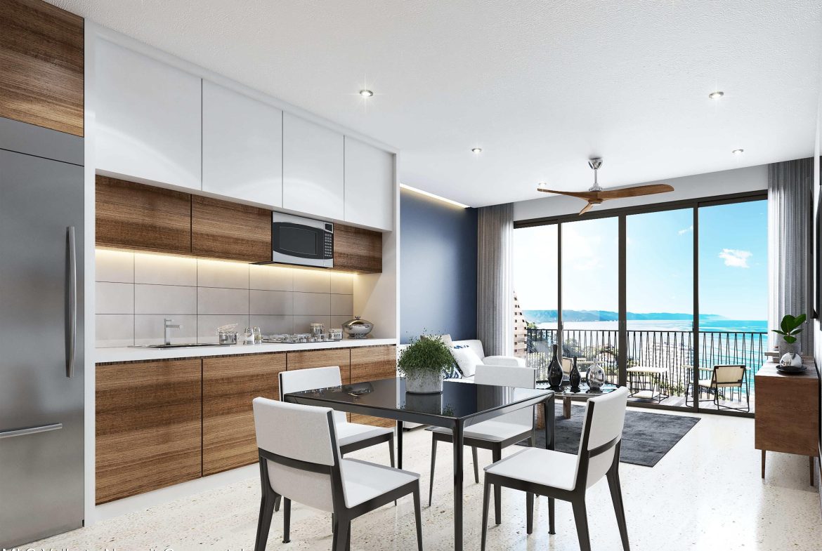 Carmelina offers luxury 1- and 2-bedroom oceanview condos for sale in Puerto Vallarta. Residences include marble floors, quartz kitchens with built-in appliances, spa-style bathrooms with soaking tubs, oak carpentry, and private terraces with panoramic ocean views. Ideal for investment, vacation, or full-time living. Parking is available for $25,000 USDCarmelina ofrece departamentos de lujo de 1 y 2 recamaras con vista al mar en venta en Puerto Vallarta. Con pisos de marmol, cocinas con cubierta de cuarzo y electrodomesticos, banos con tina, carpinteria en encino y terrazas privadas con vista al mar. Inversion, descanso o residencia. – Precio estacionamiento $25,000 USD