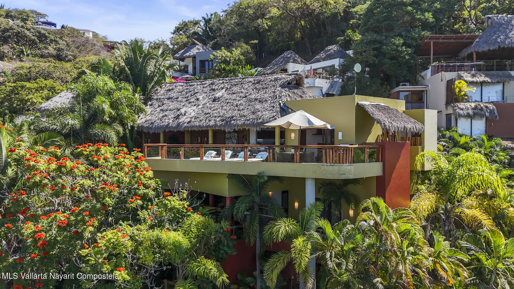 Located in the heart of Sayulita’s tranquil North End, Casa Abuela offers a rare blend of resort-style living and the comfort and privacy of a beautifully designed home. With over 5,000 square feet of living space, this exceptional property showcases a striking fusion of rich Mexican architectural character and modern-day elegance.The home features five spacious bedrooms, each with its own private balcony, air conditioning, personal safe, and en-suite master bath, plus an additional half bath, all crowned by an impressive palapa-style roof. The expansive living room and gourmet kitchen create an ideal setting for both intimate gatherings and large-scale entertaining. The property is equipped with state-of-the-art purified potable water throughout, ensuring comfort and peace of