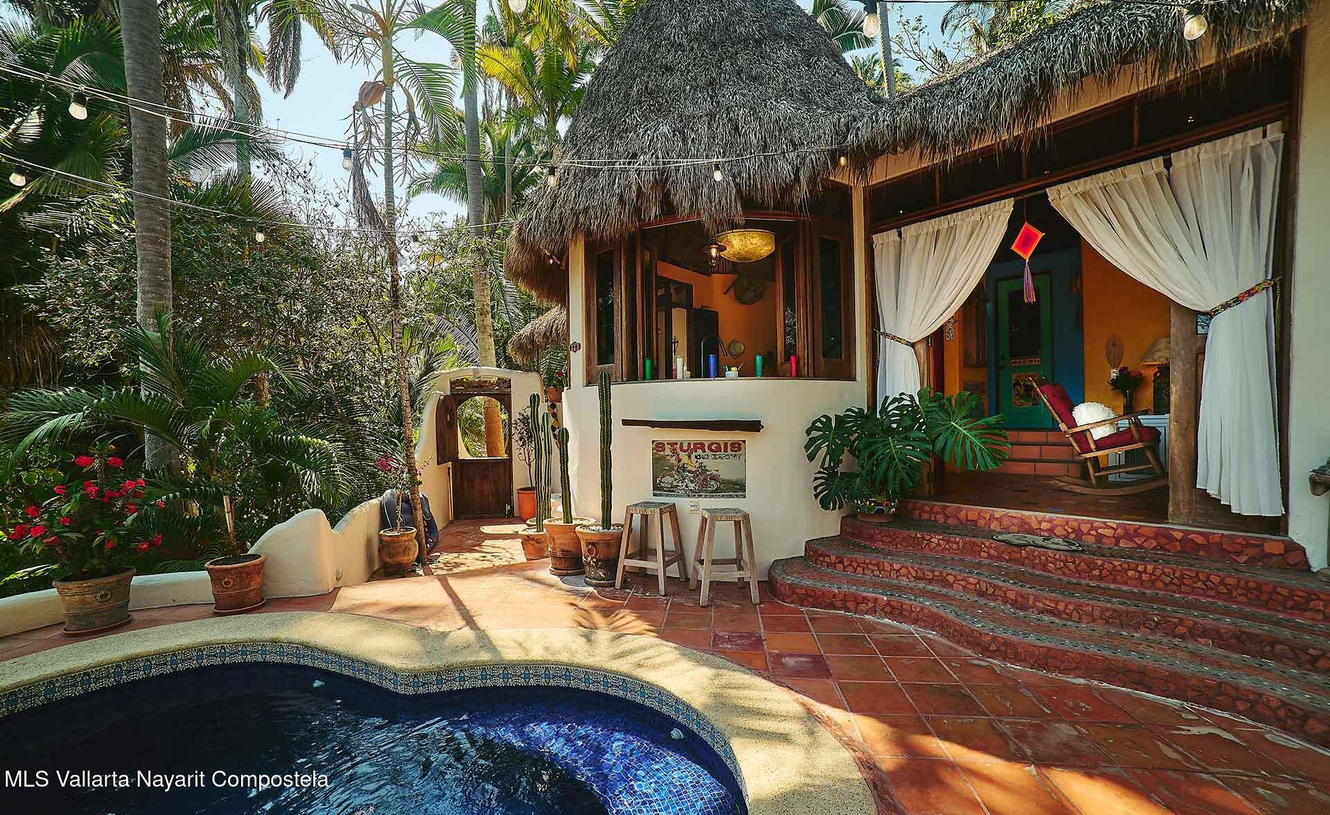 Casa Alegria is tucked into a secluded residential neighborhood, where the tranquility of an unspoiled tropical jungle melds with breathtaking ocean views of the Riviera Nayarit Coast. This peaceful, private, open-air home hosts two en suite bedrooms with a beautiful tree-house style loft, fully equipped kitchen, dining room, living room, pool terrace and powder room. The home is roughly 120 square meters sitting on a 943 square meter lot that is easily accessible with additional ocean views. The ocean view, poolside terrace is the perfect place to relax and enjoy the incredible San Pancho sunsets over the Pacific Ocean, while resting in the natural beauty of the Sierra Madre jungle with rare tropical birds and lush tropical gardens.